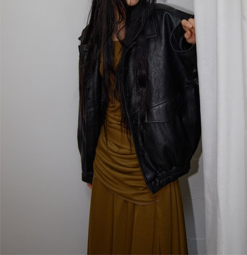 排釦皮革夾克
