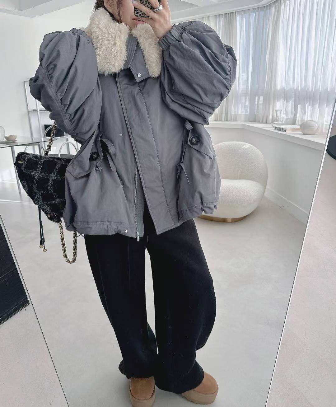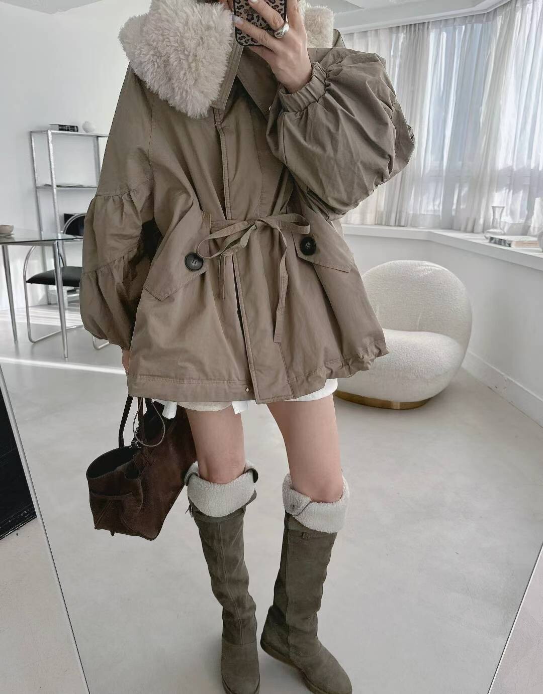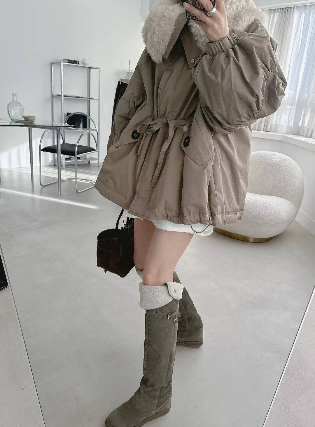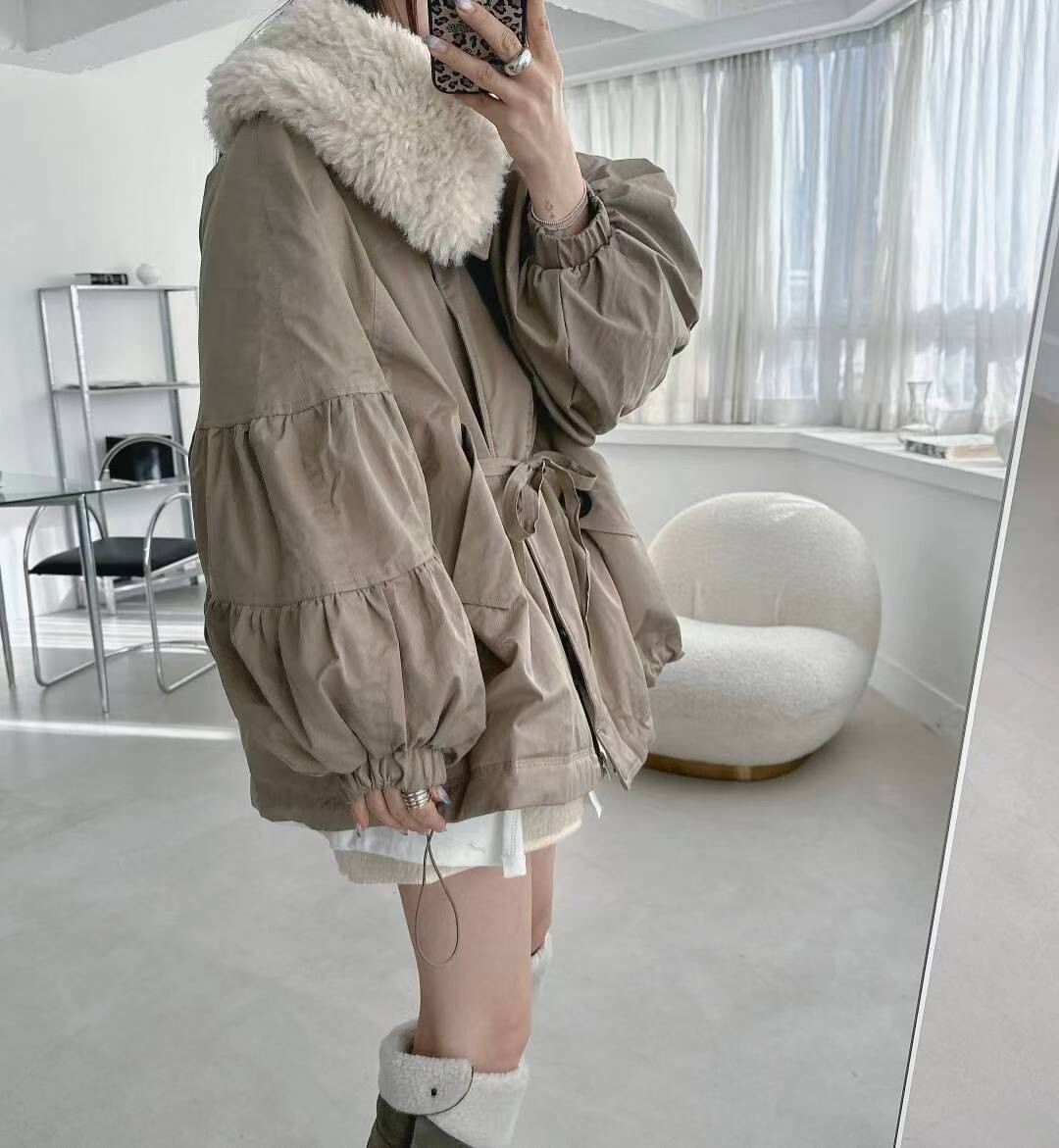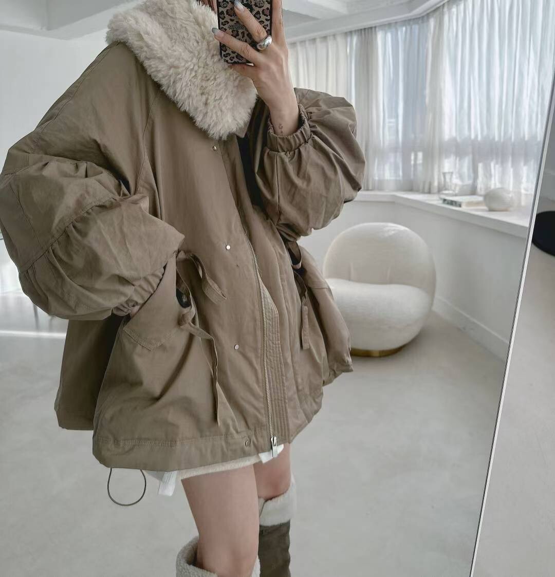 羊毛呢領鵝絨外套