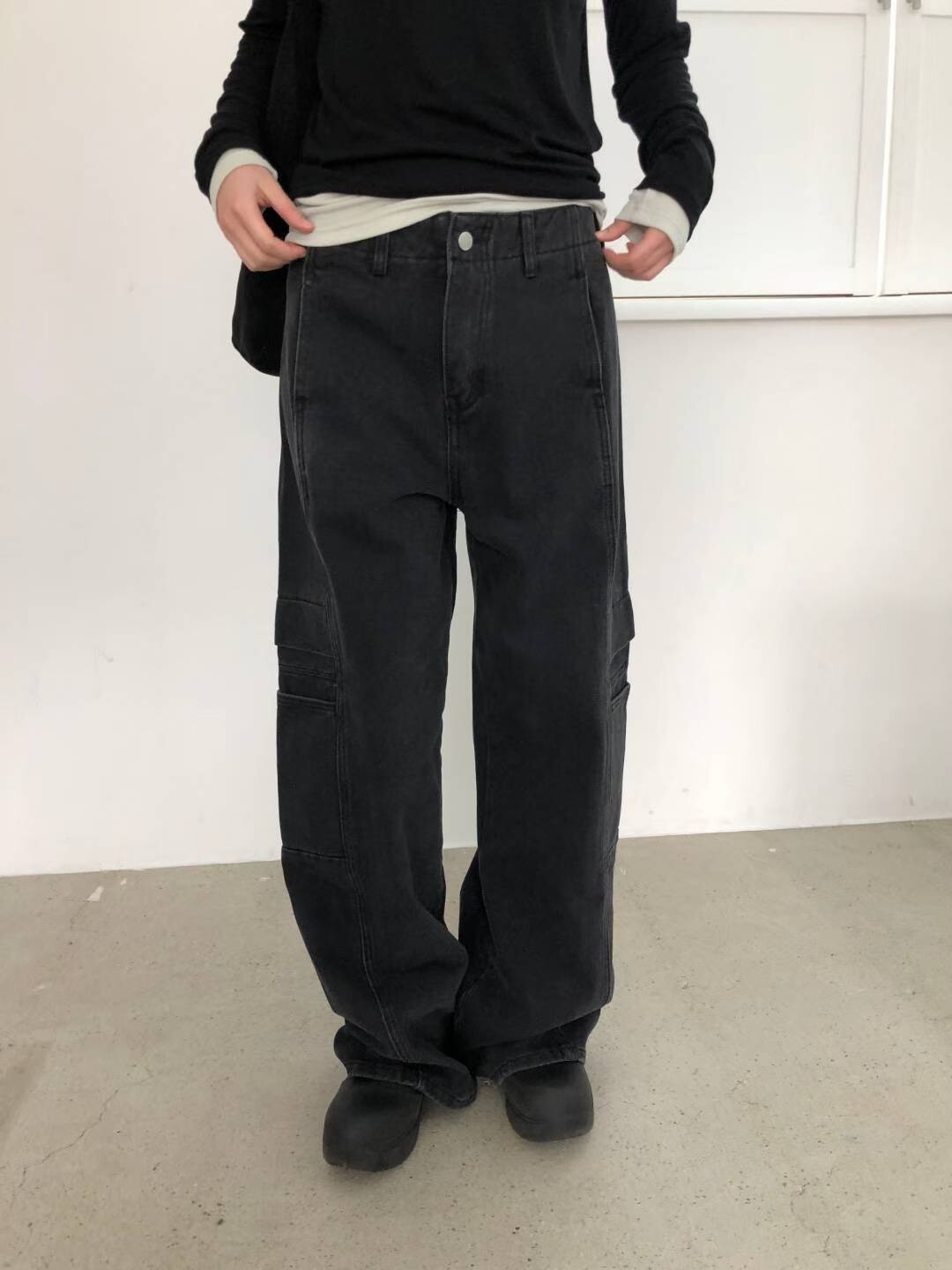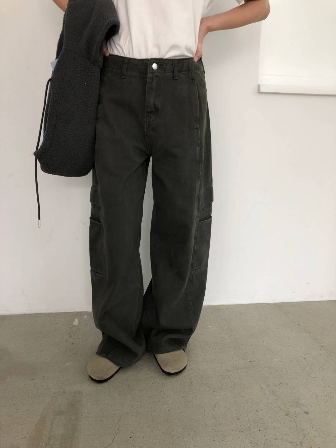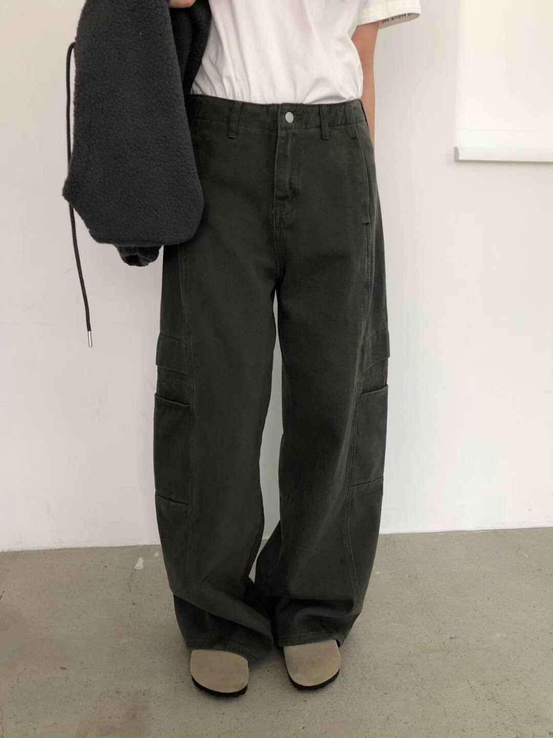 側口袋中腰繭型褲