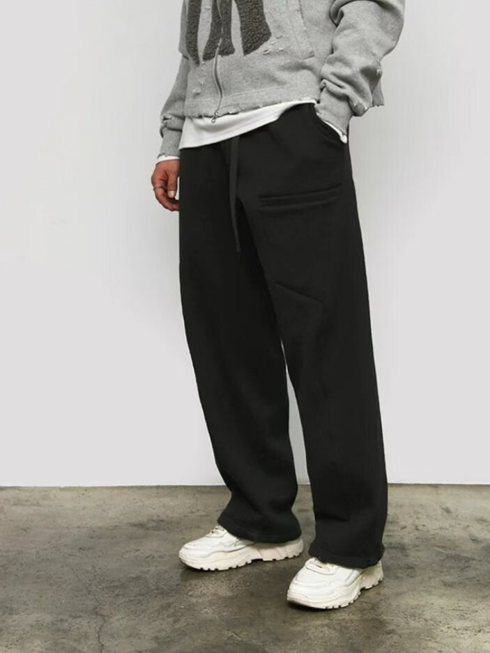 造型單口袋棉毛褲