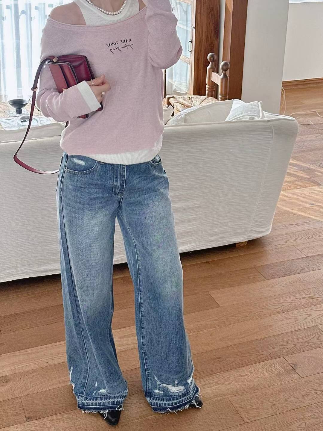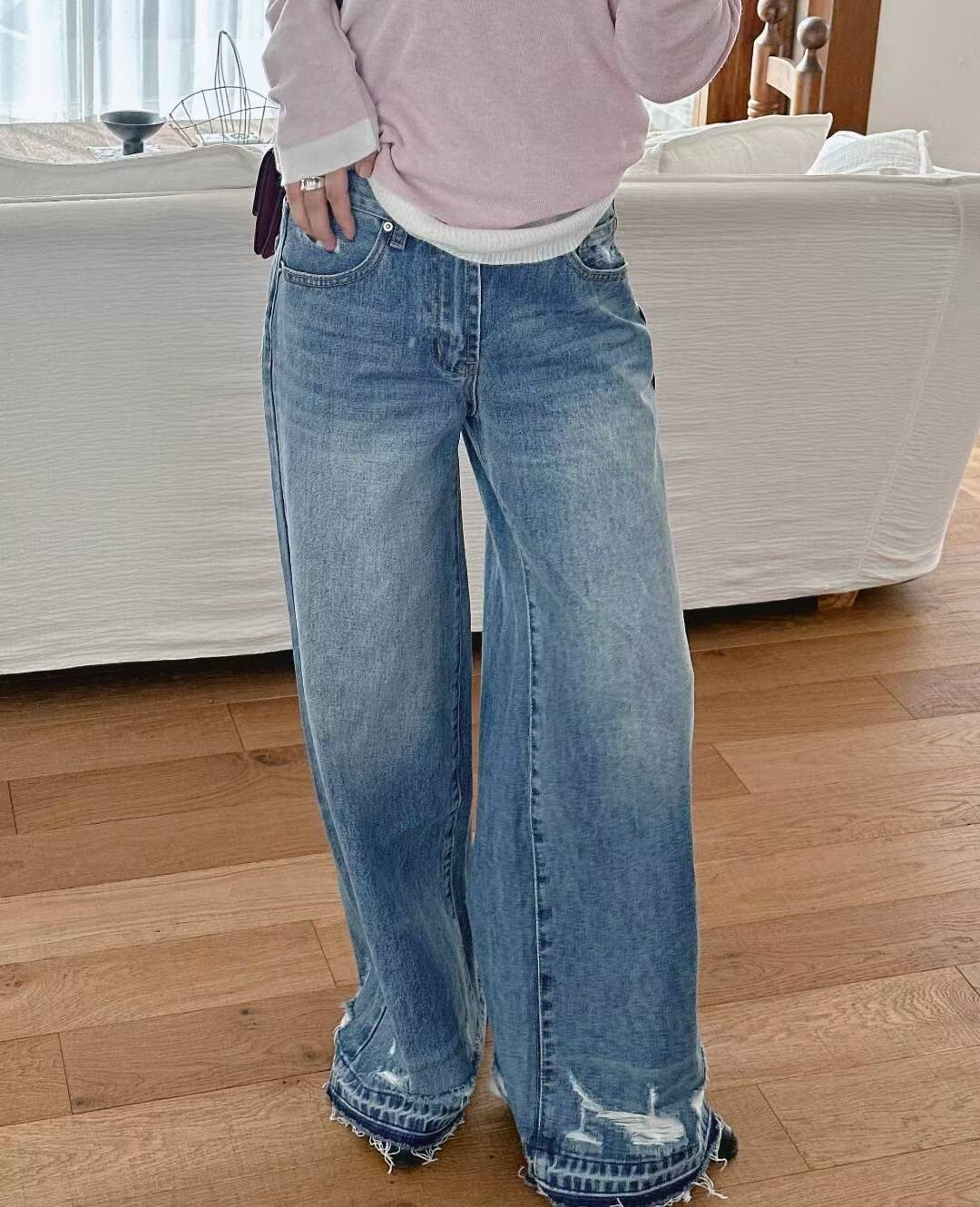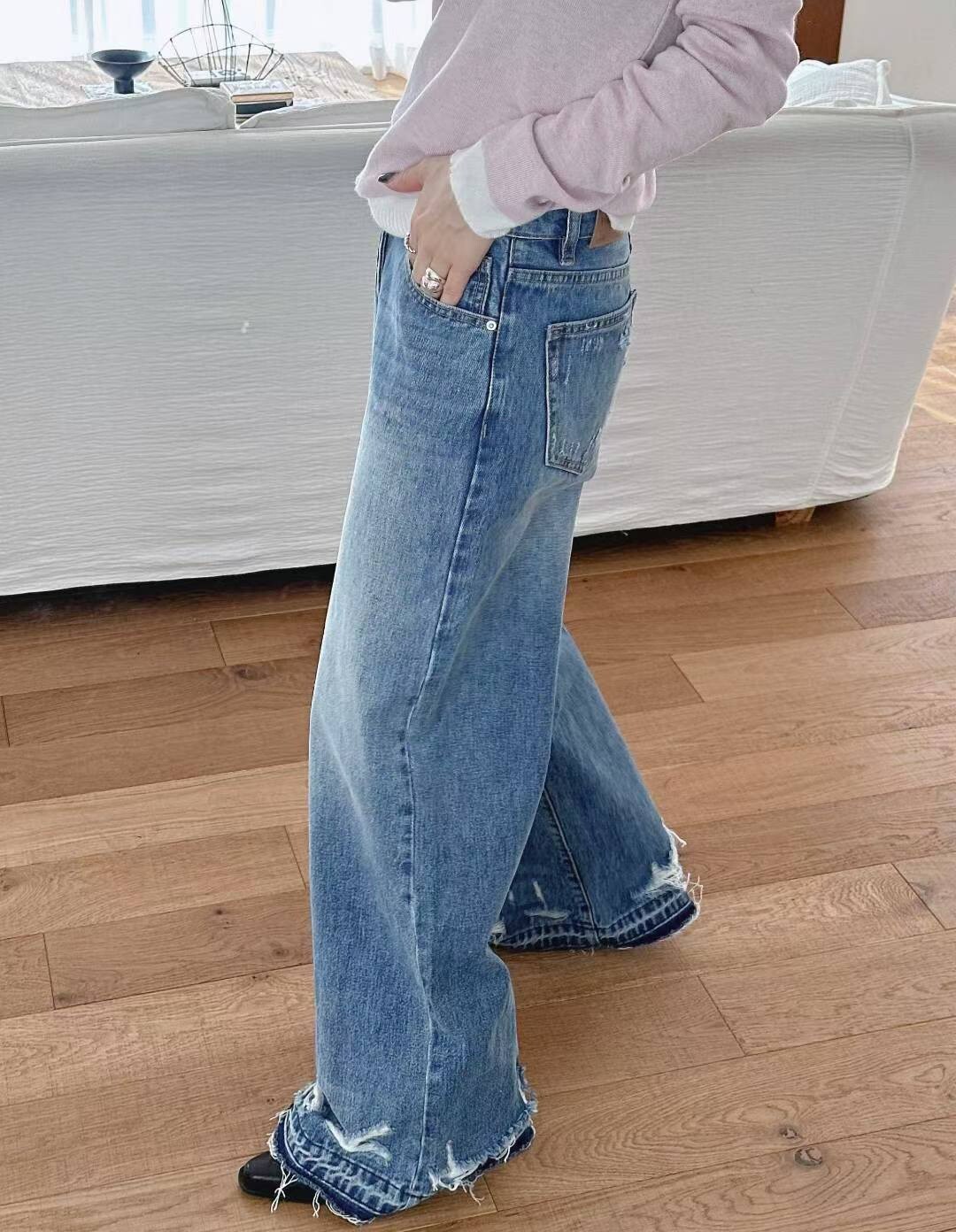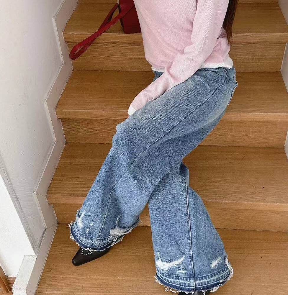 造型洗破褲腳牛仔褲
