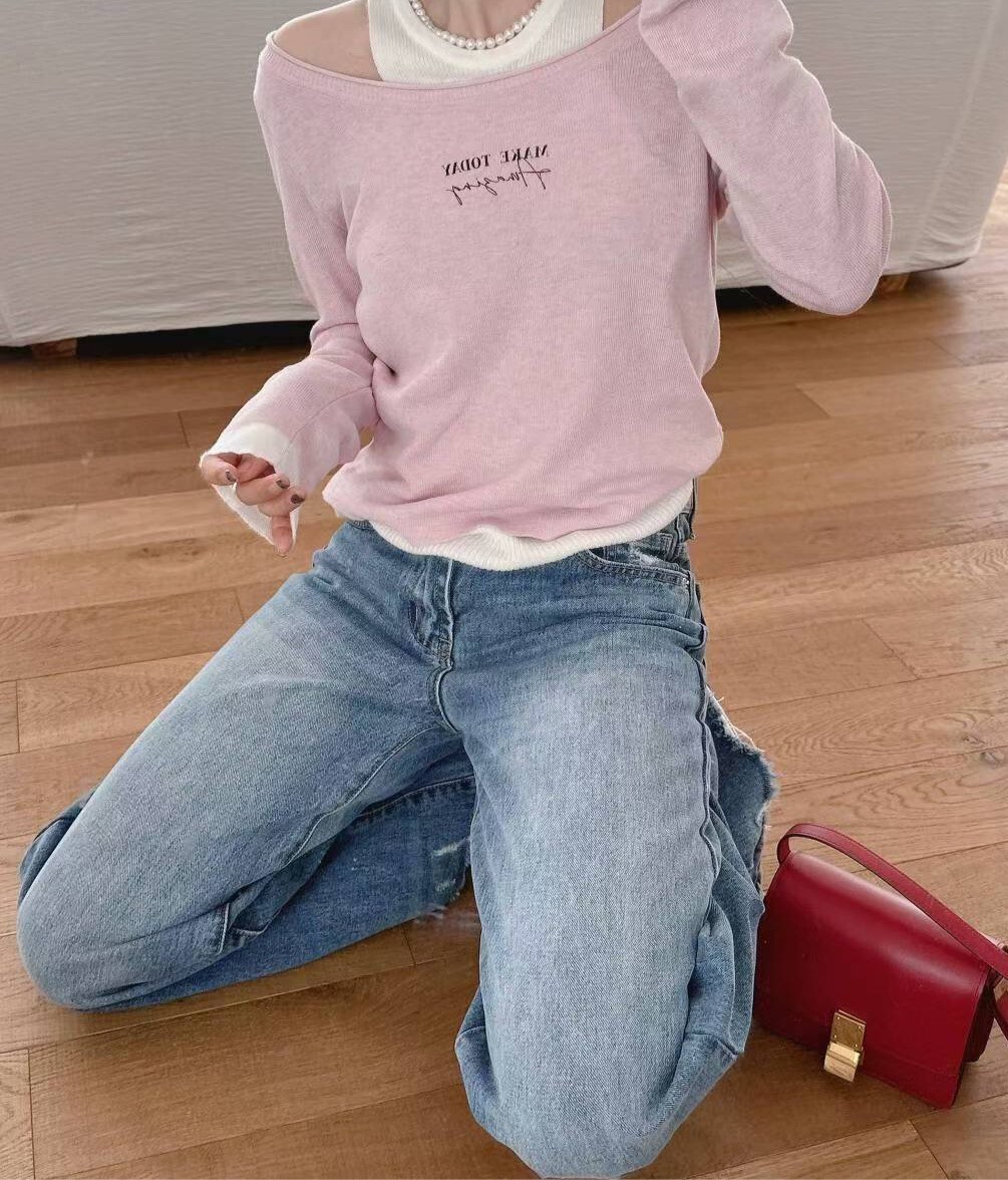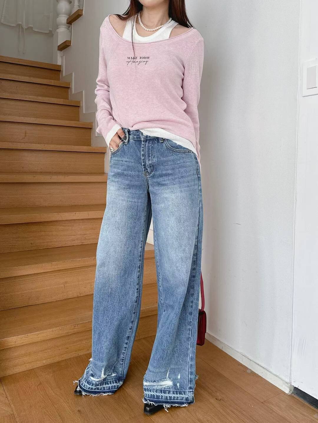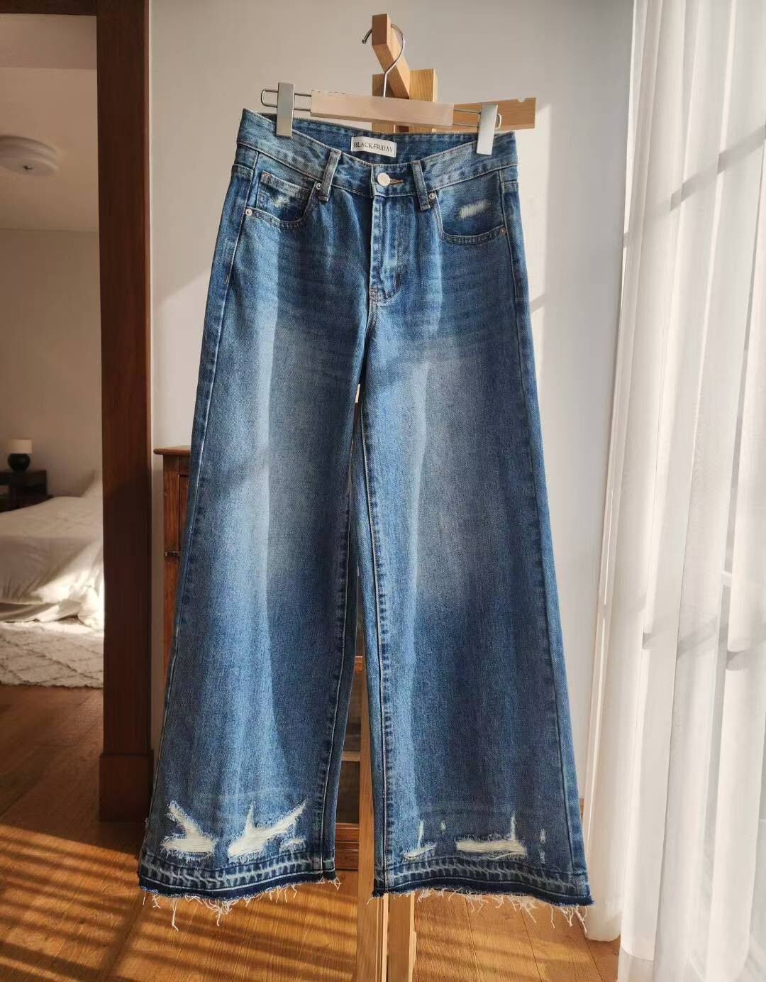 造型洗破褲腳牛仔褲