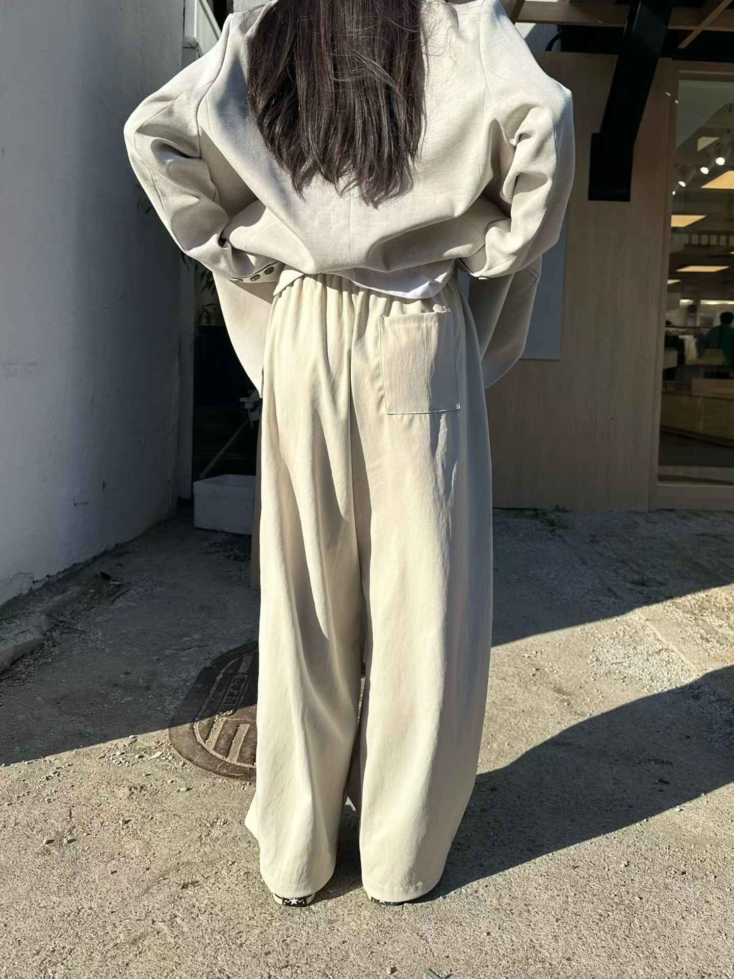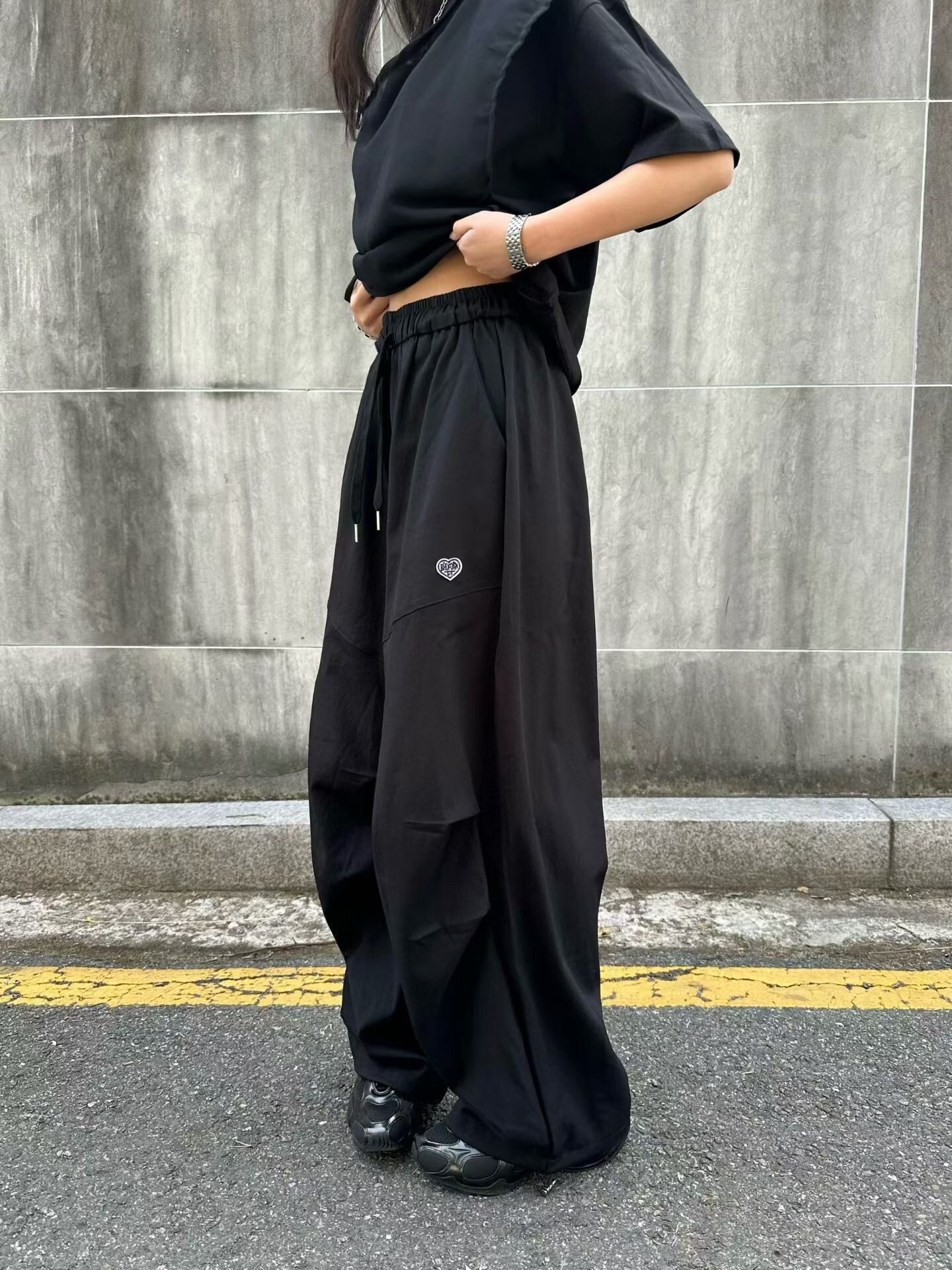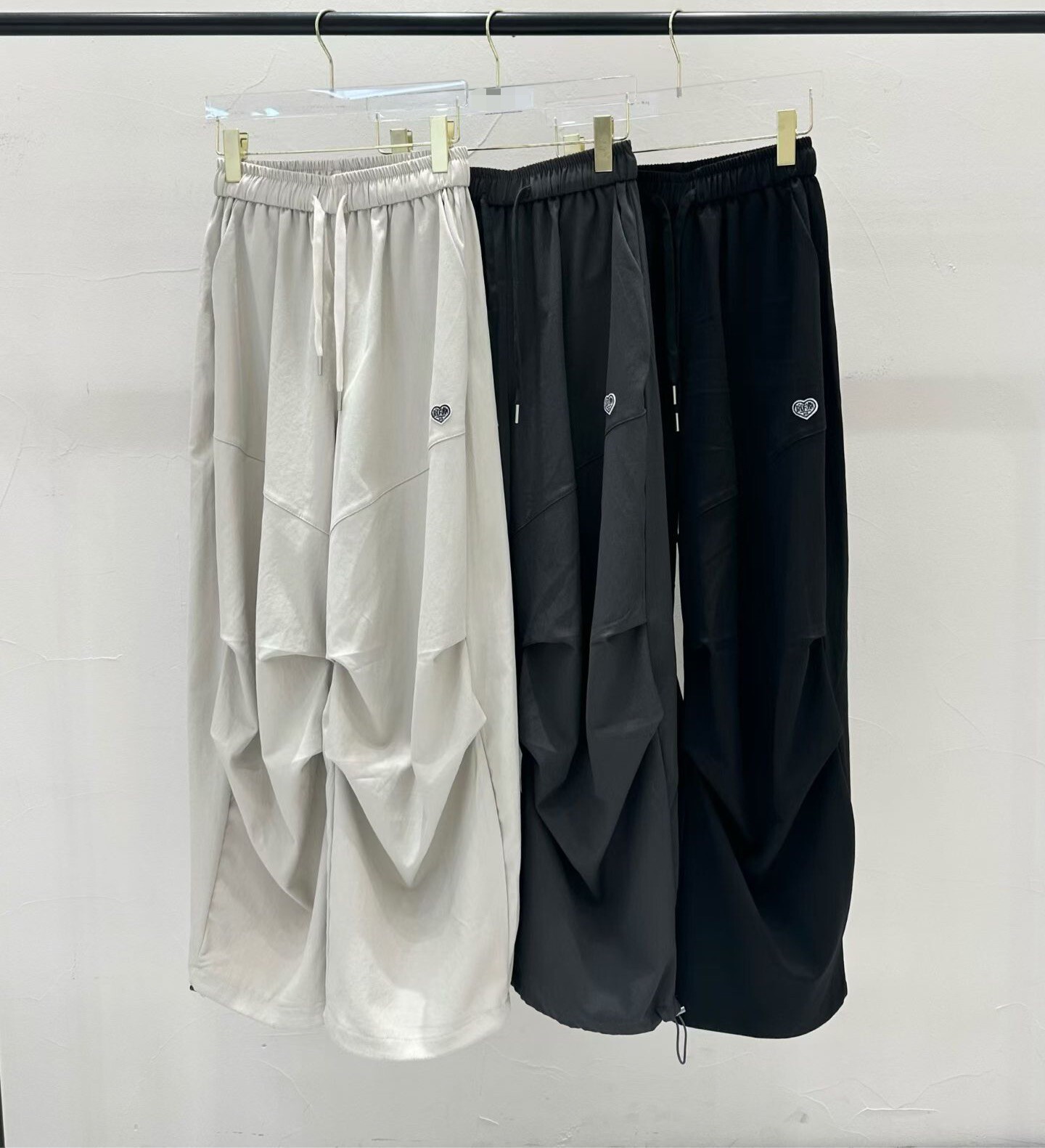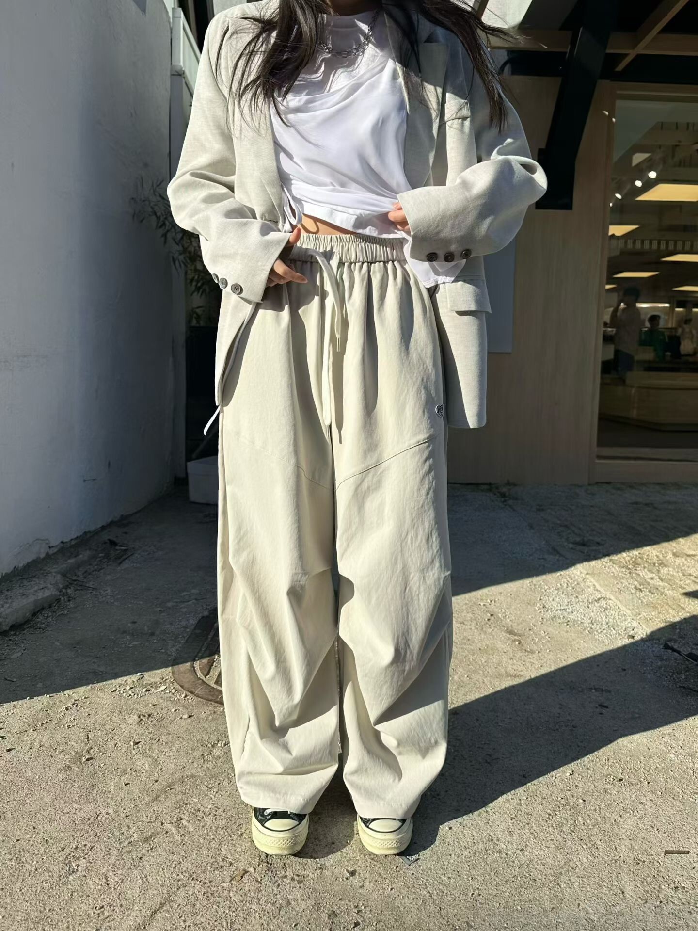 褲腳附有抽繩,可根據身高自由調節長度與風格。