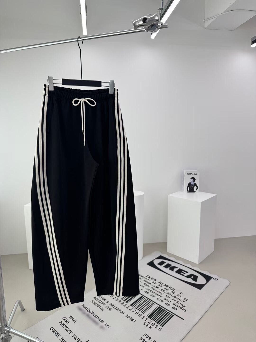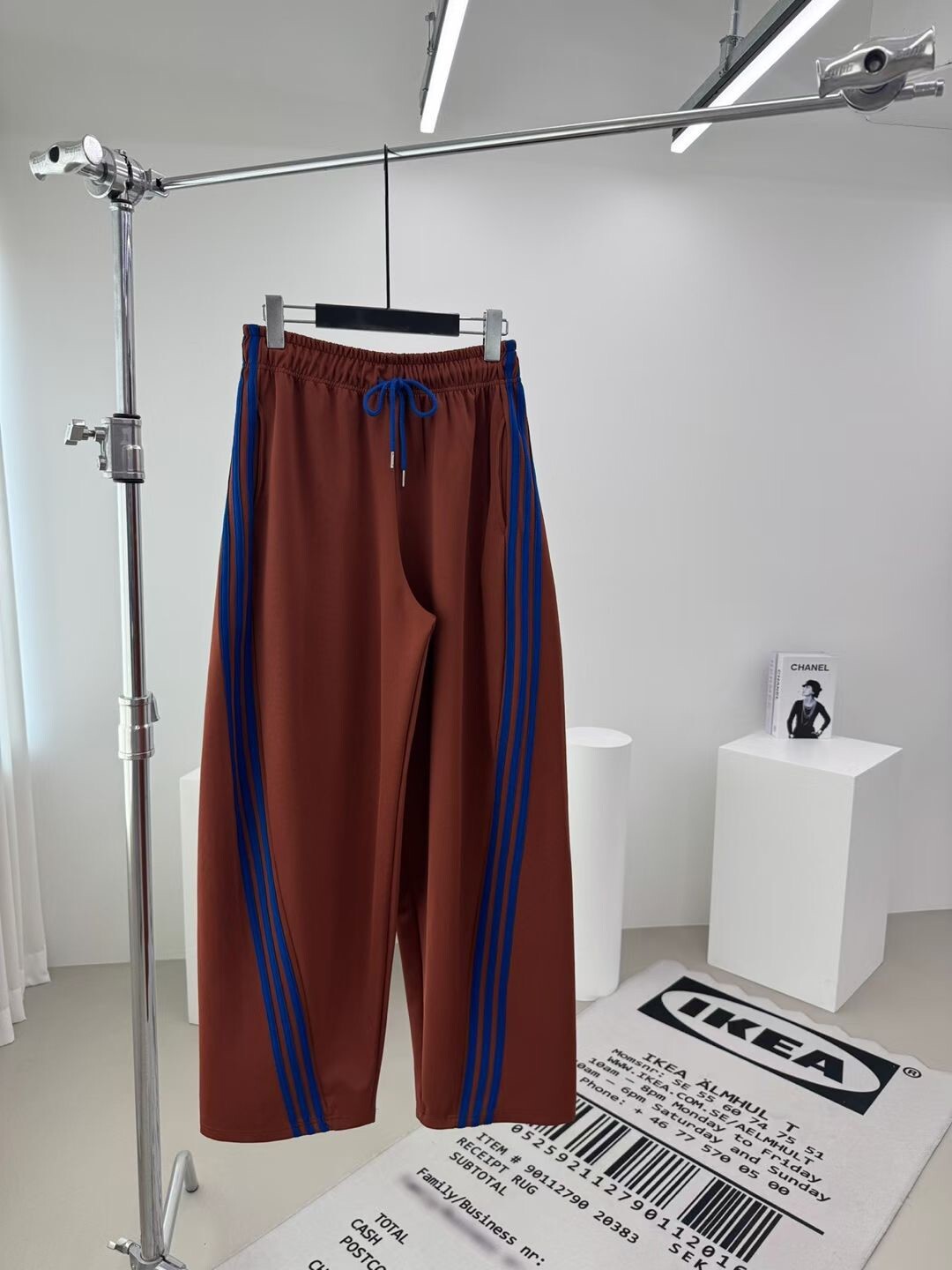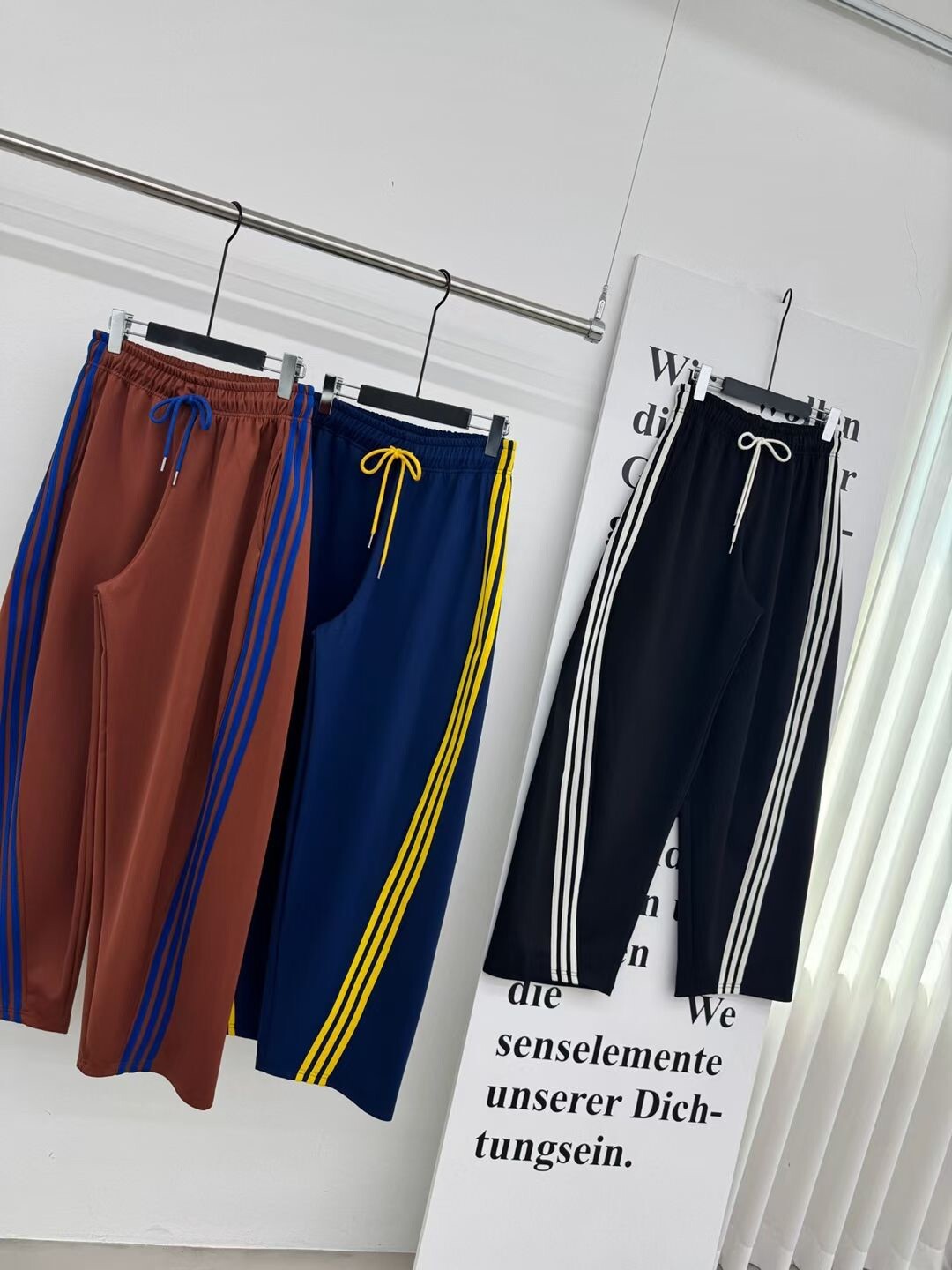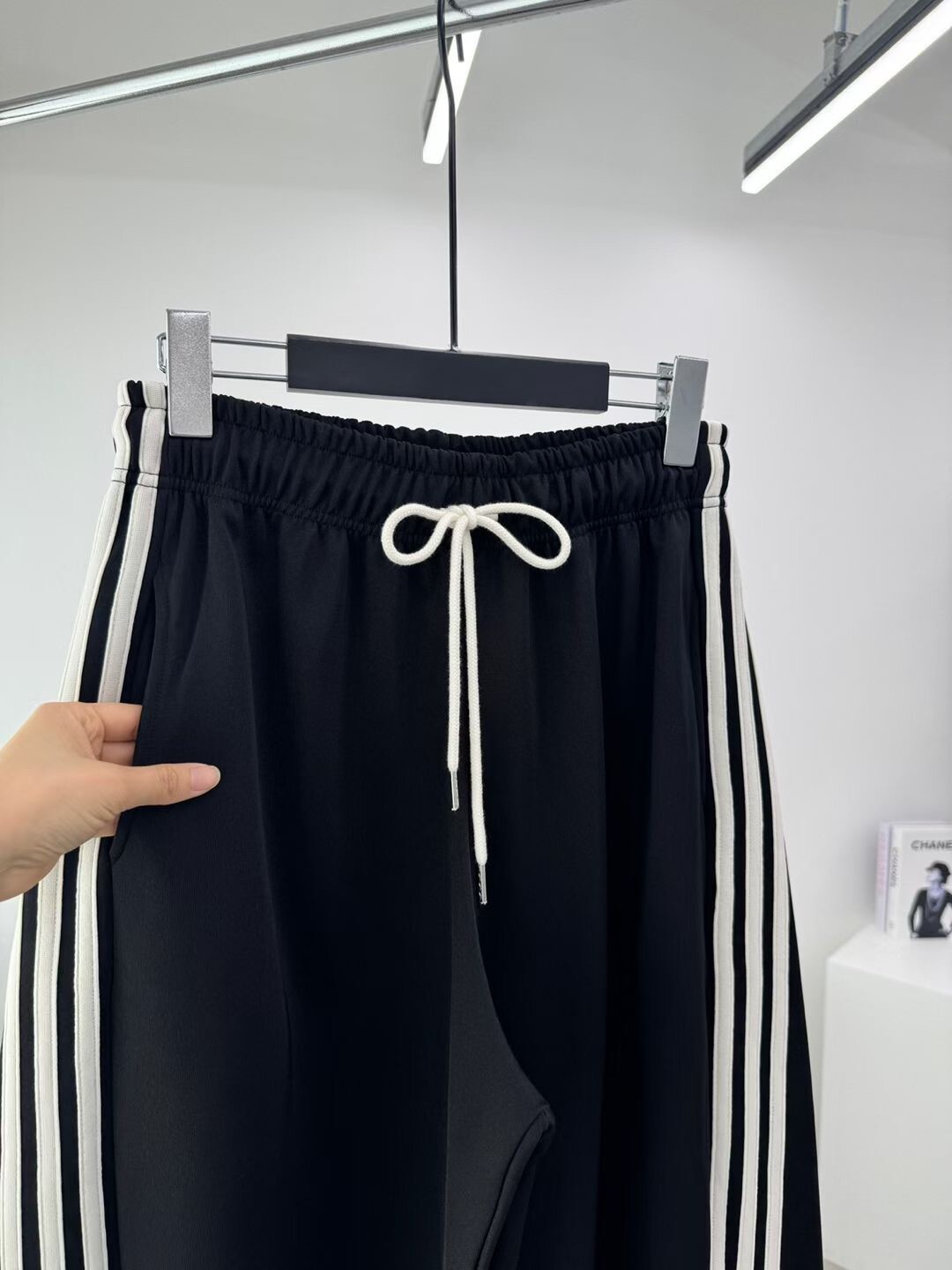 側斜三槓抽繩棉褲