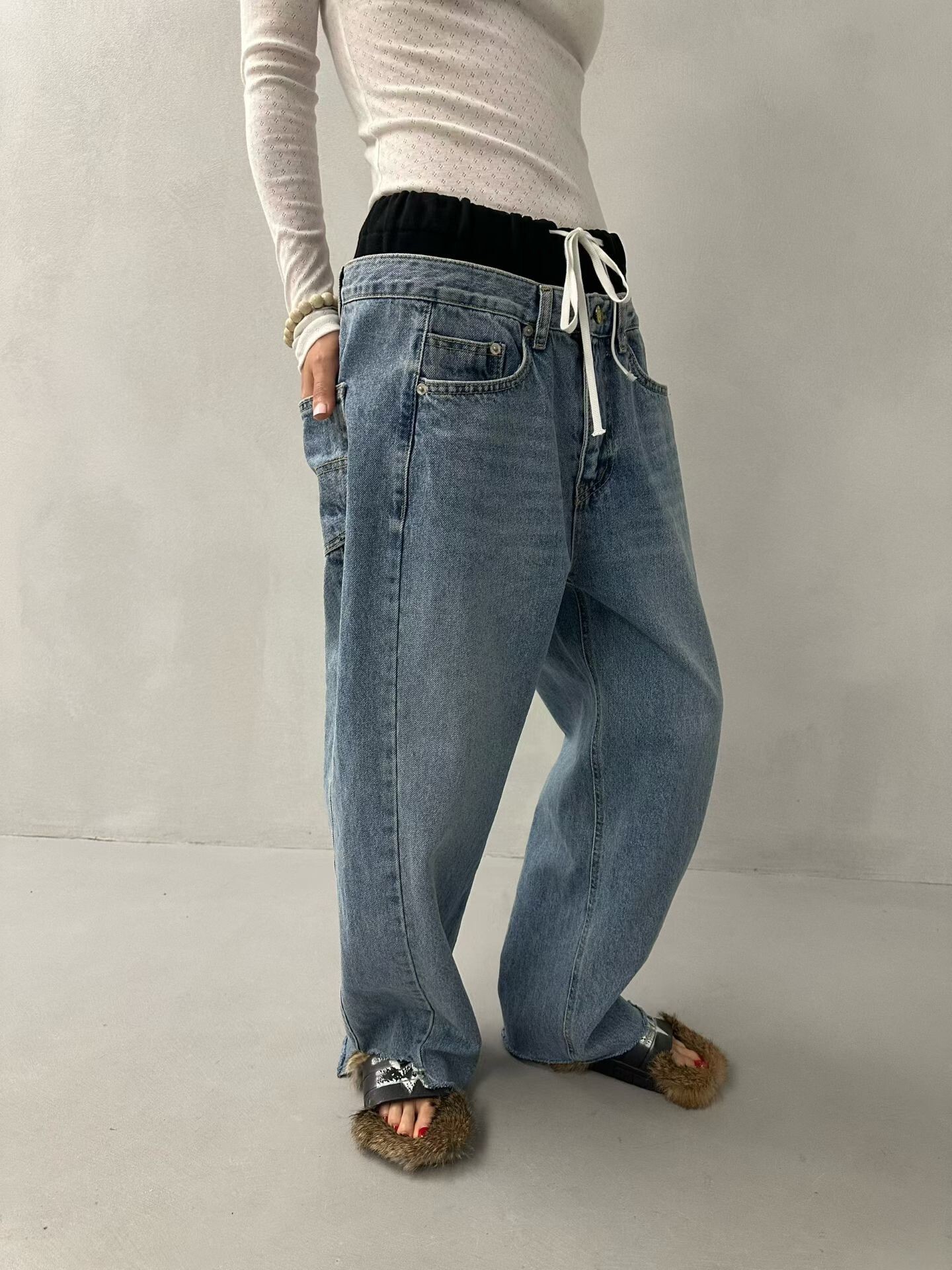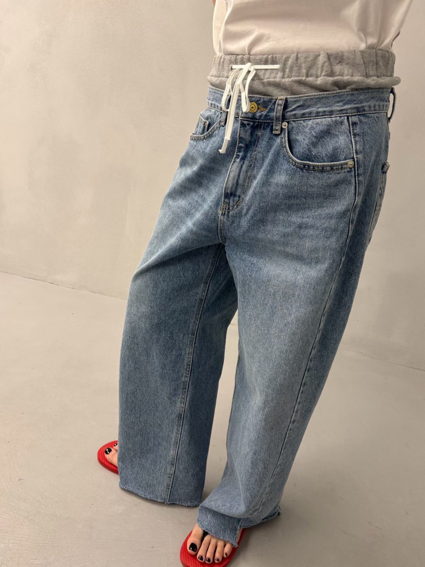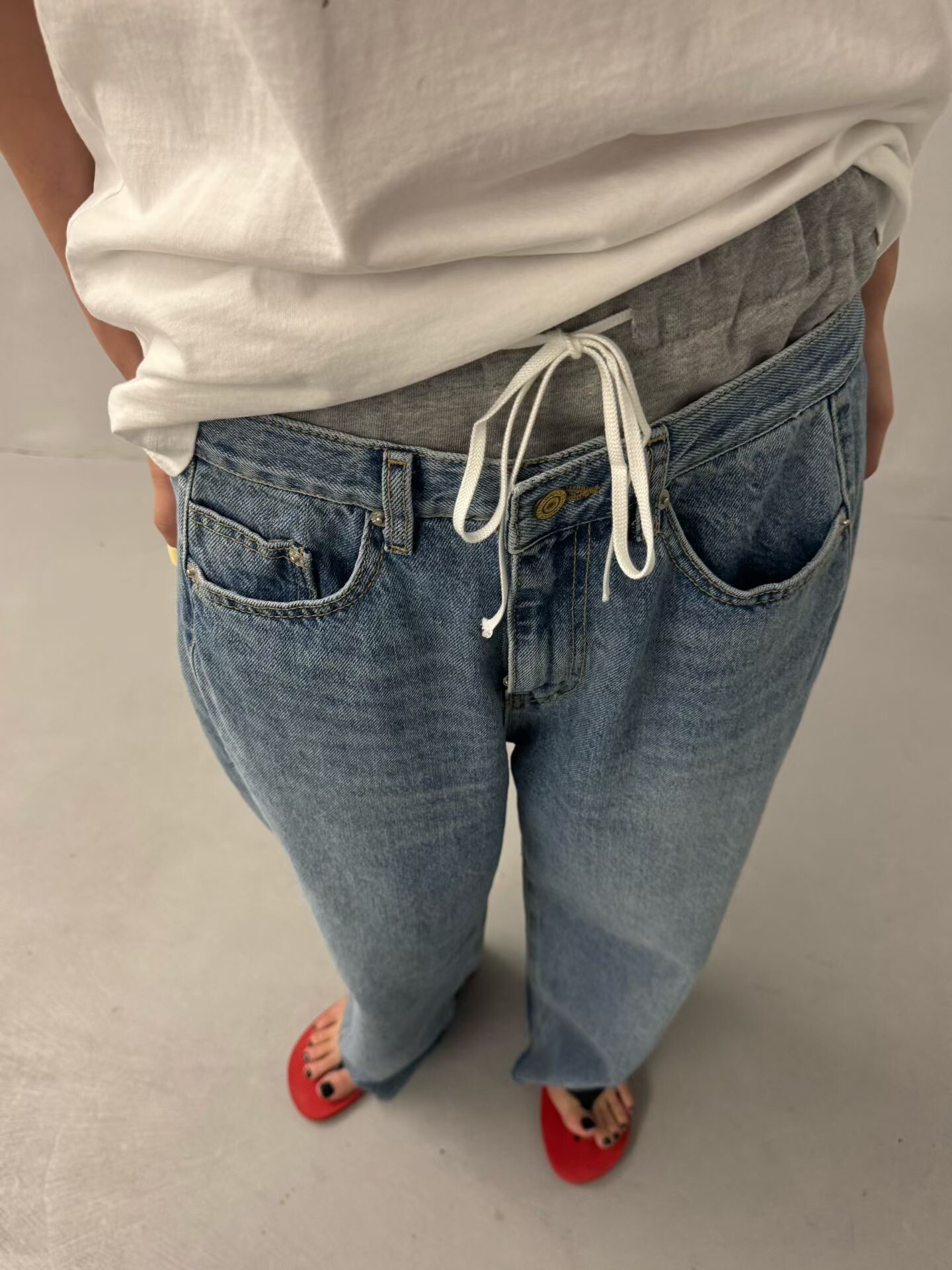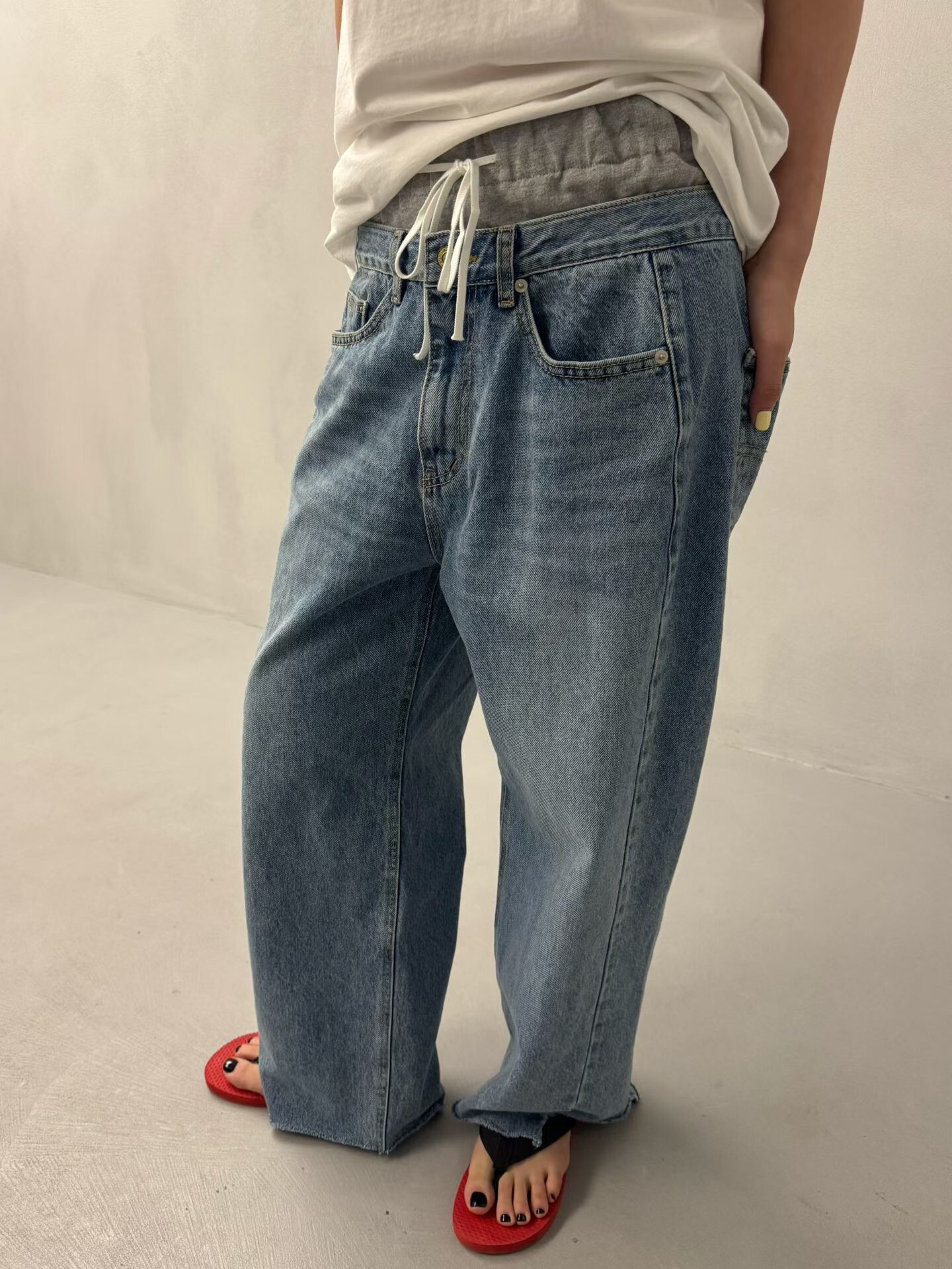 雙褲頭低腰牛仔垮褲