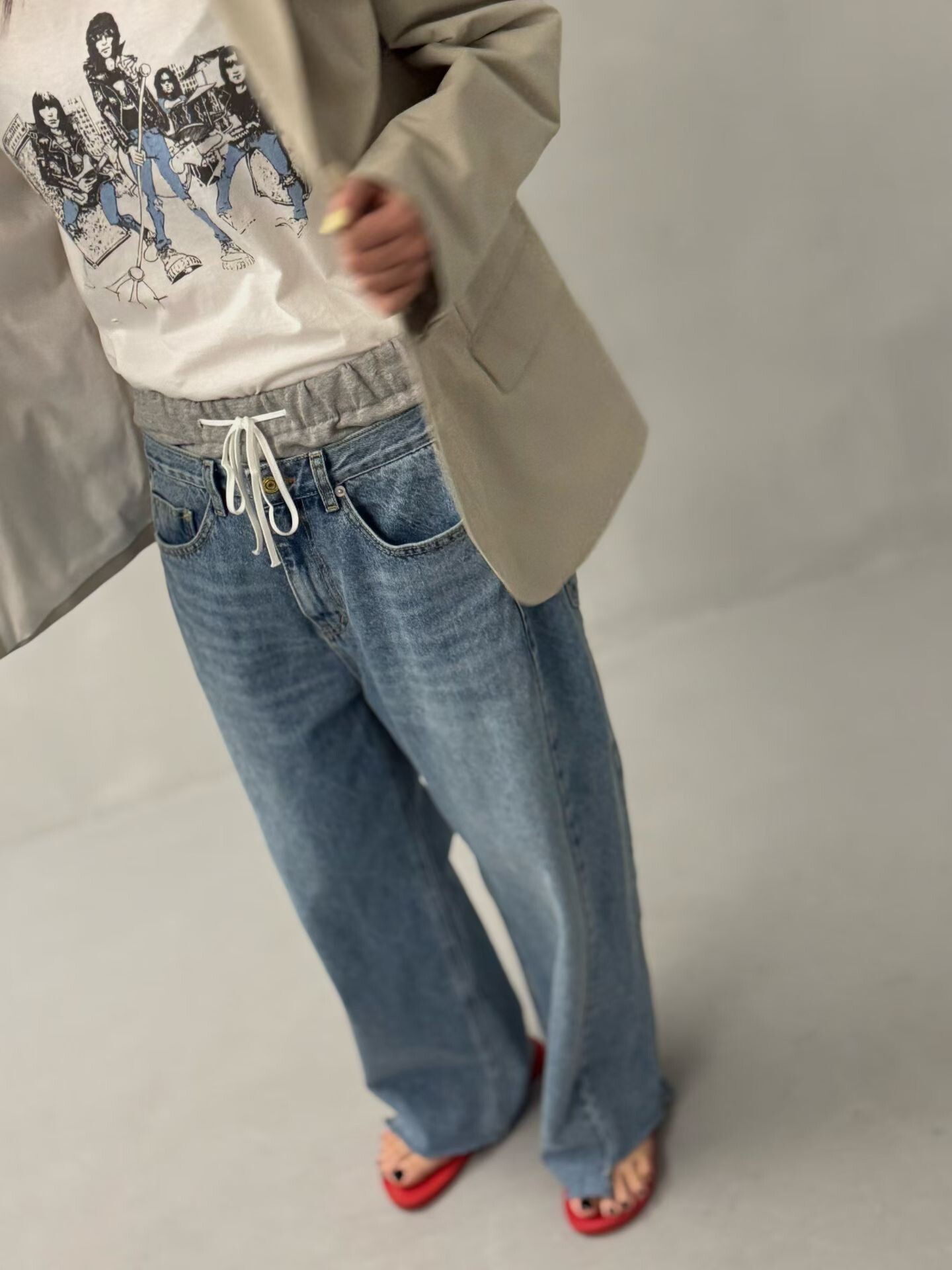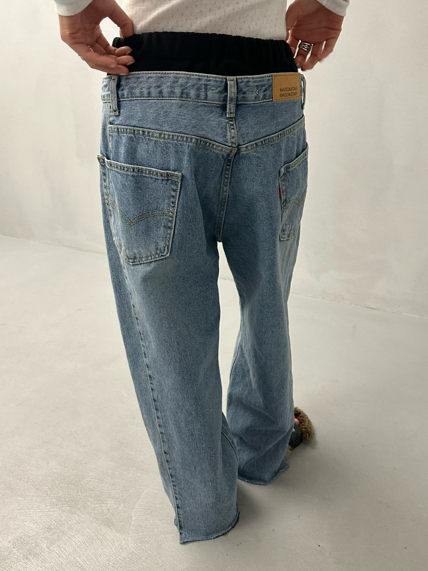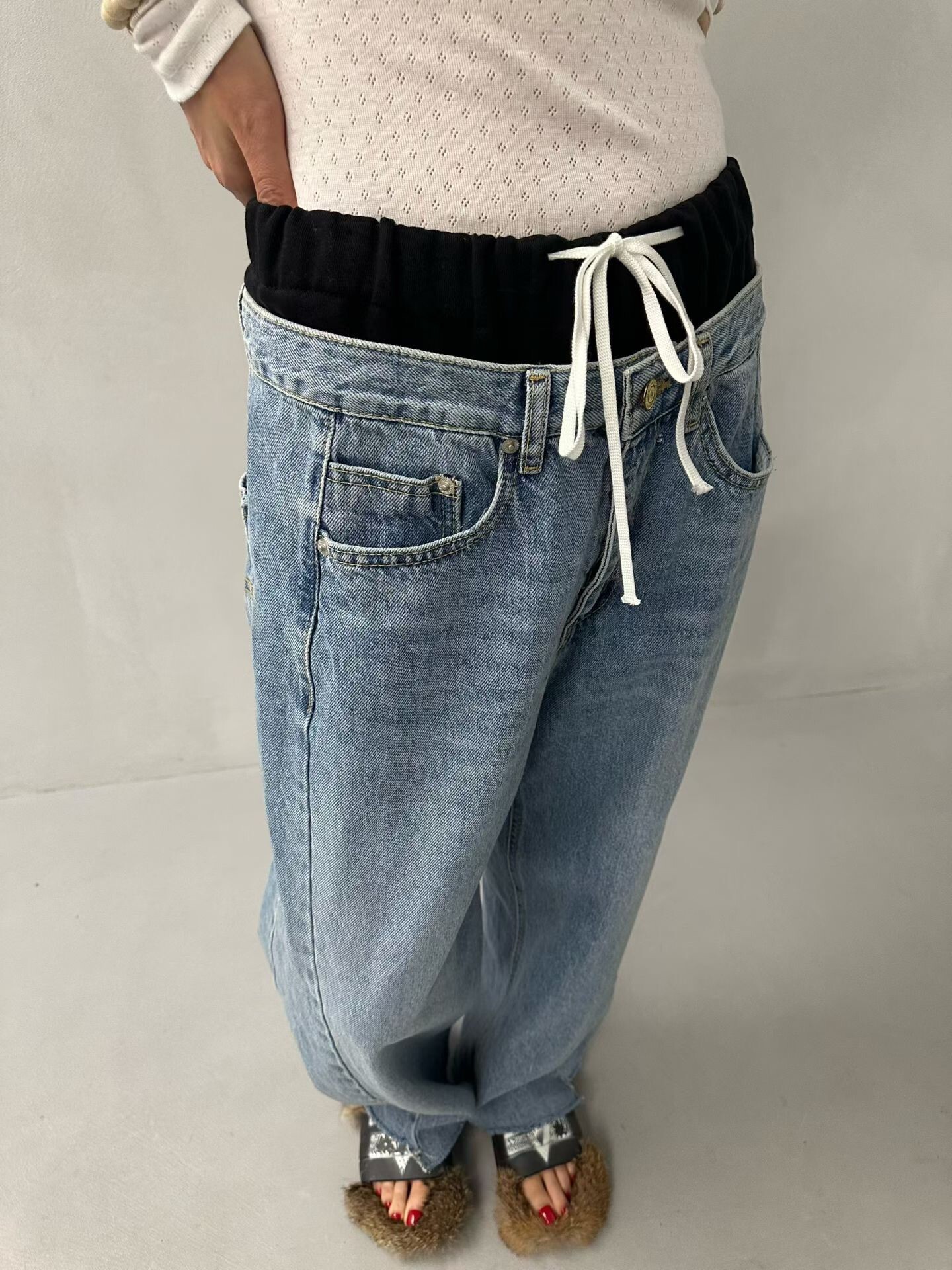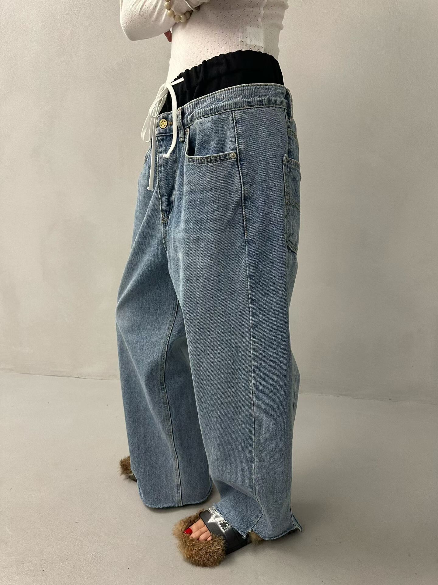 雙褲頭低腰牛仔垮褲