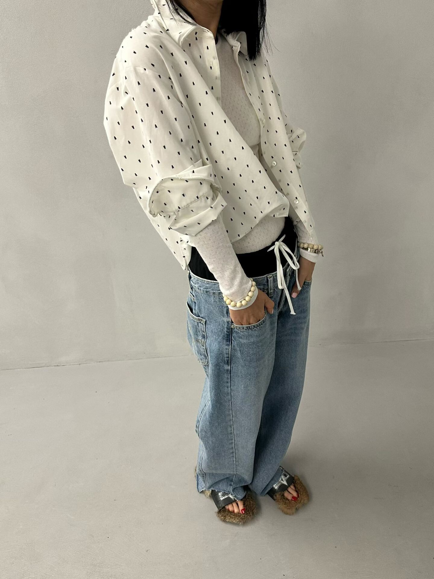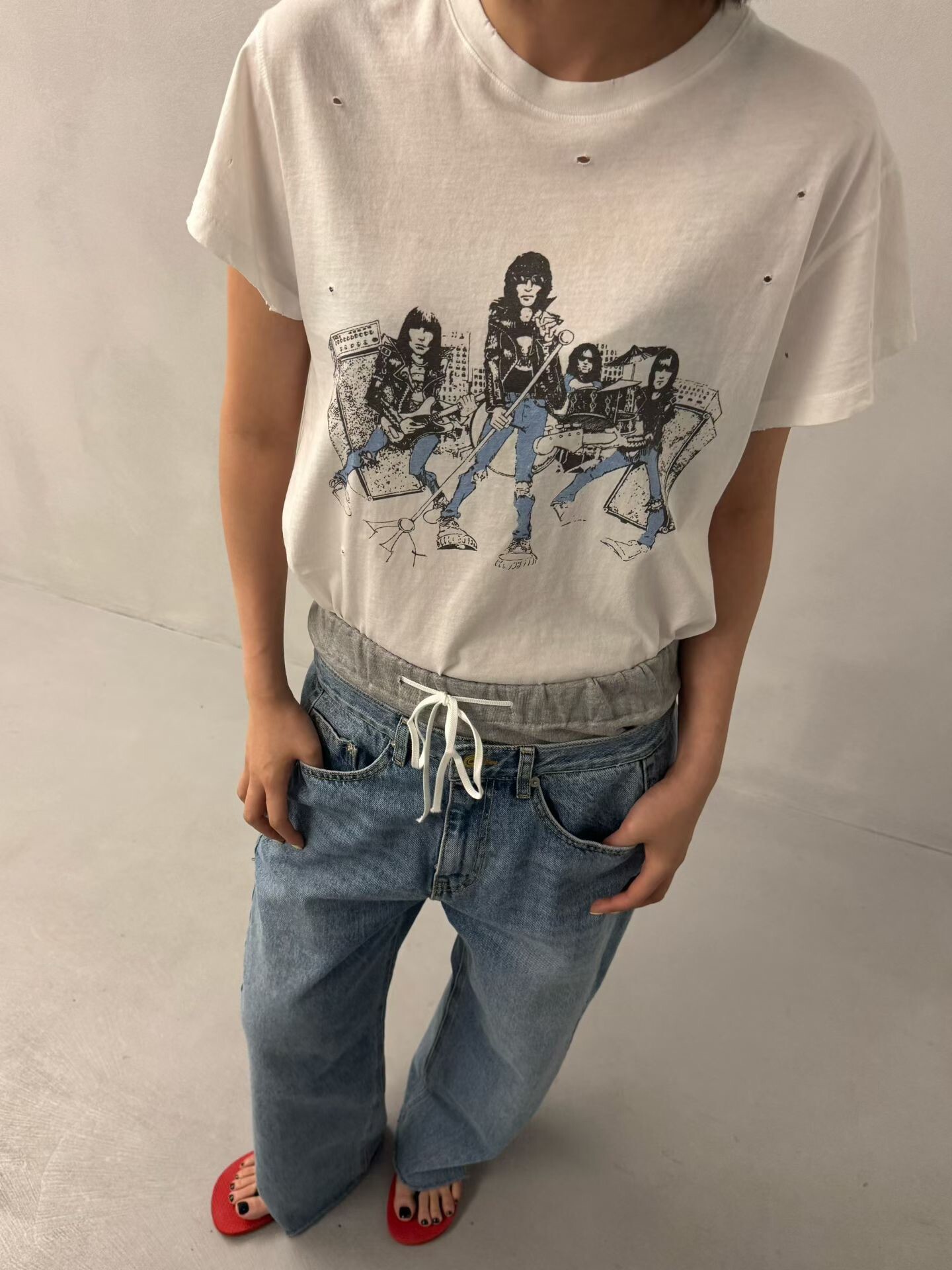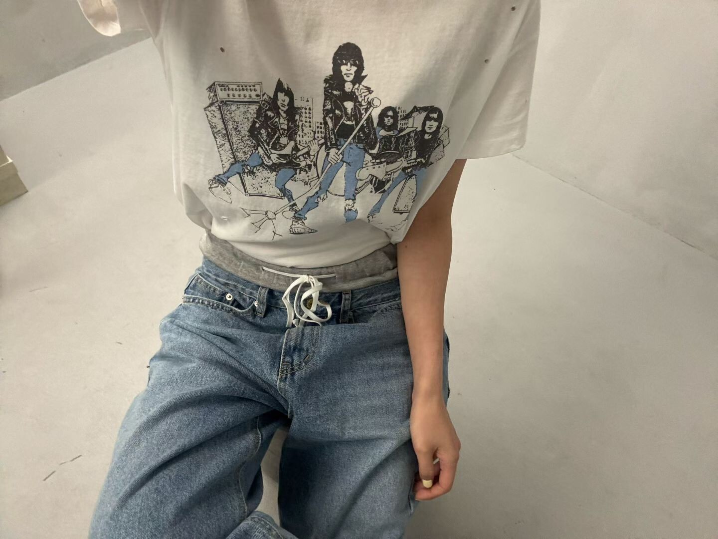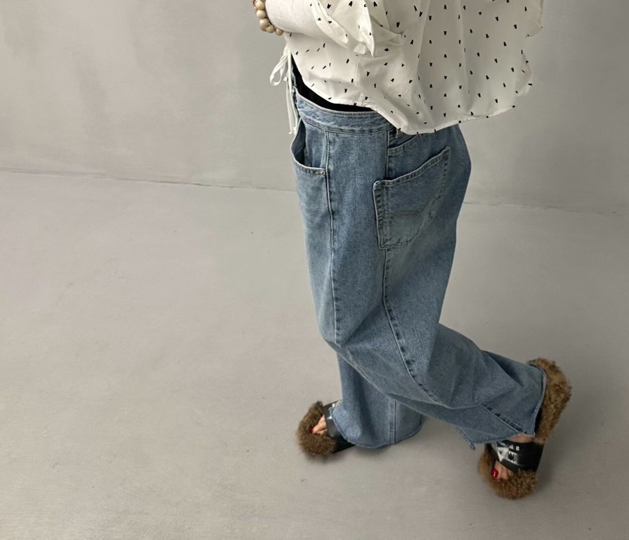 雙褲頭低腰牛仔垮褲