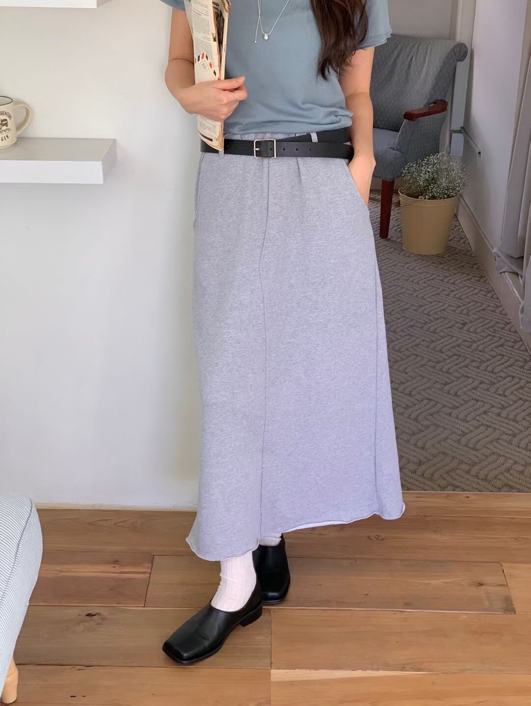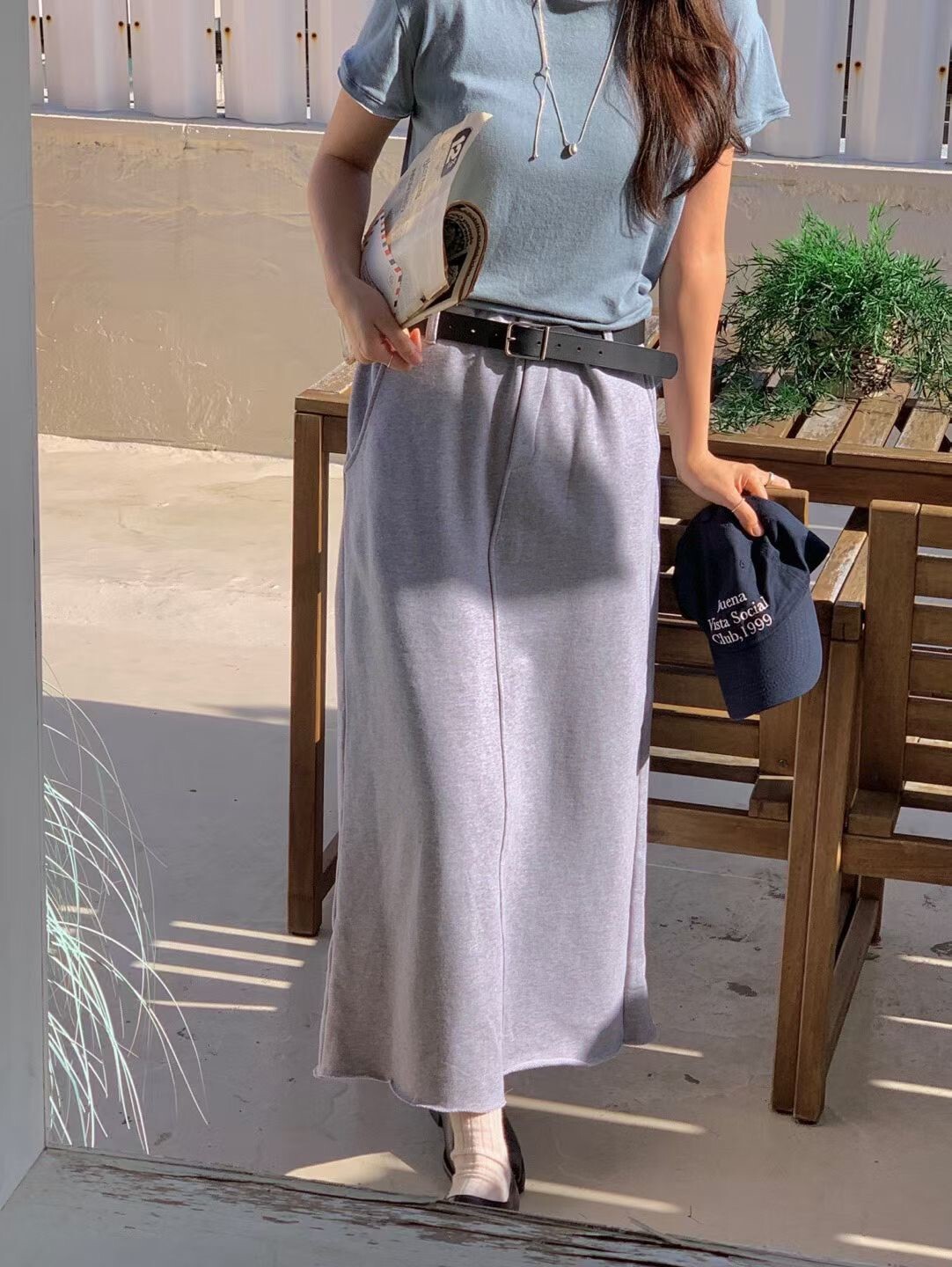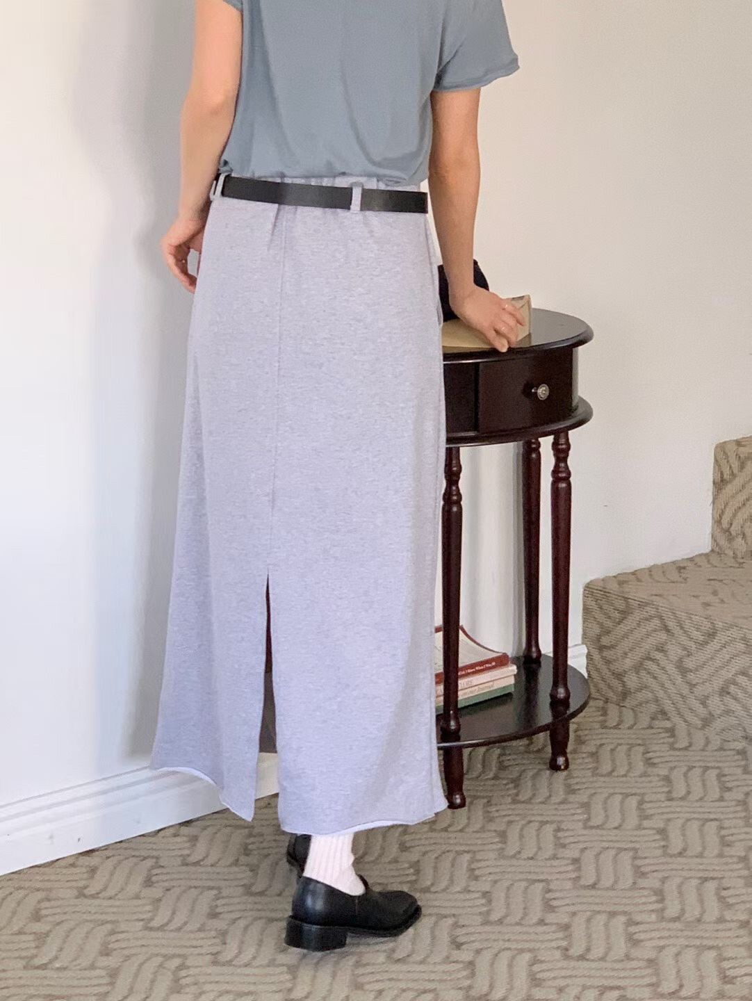 素色後開岔棉裙