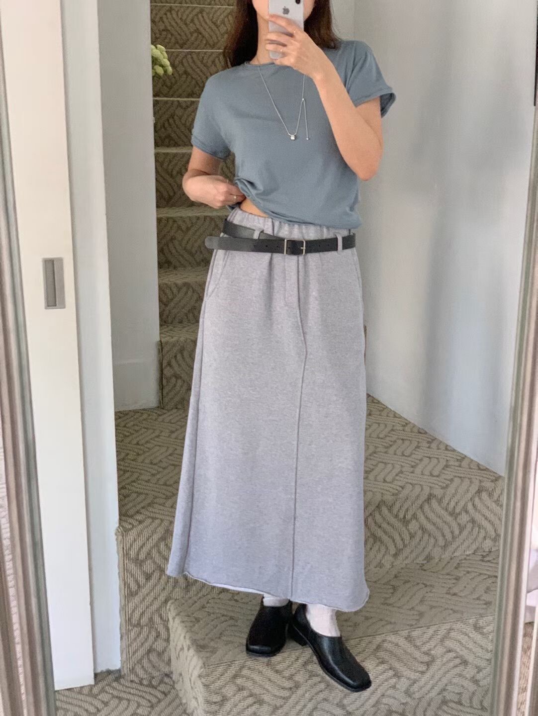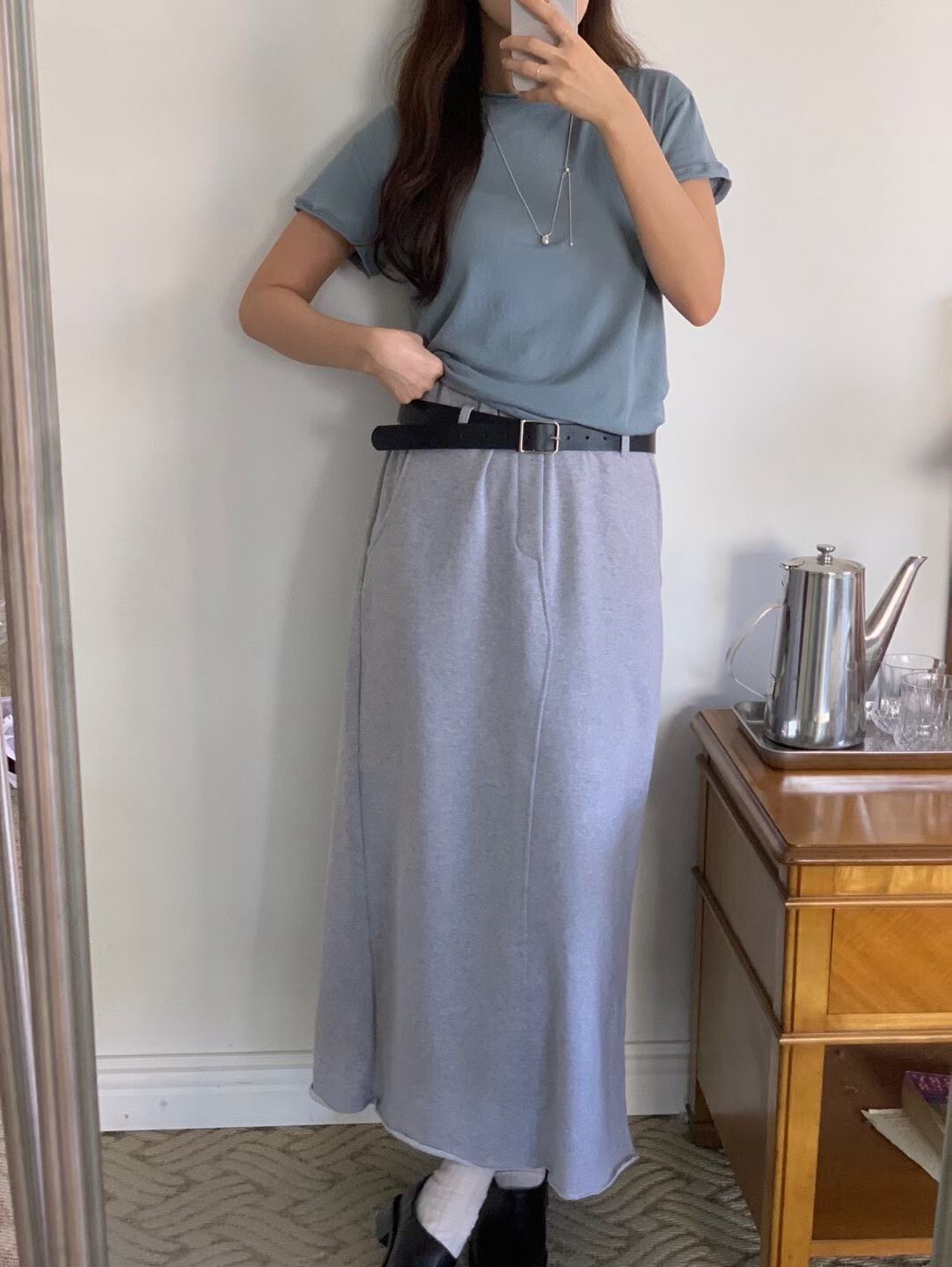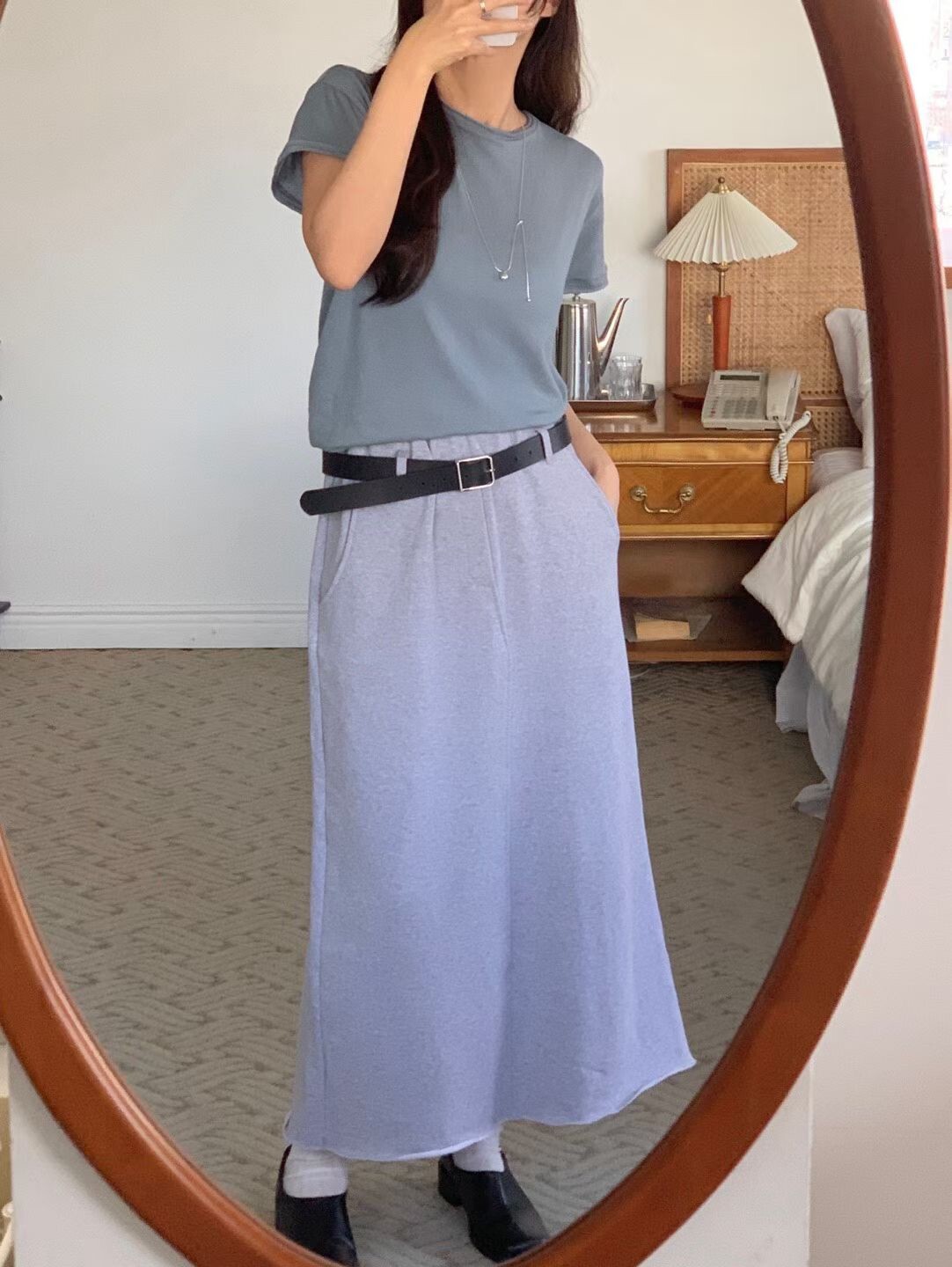 素色後開岔棉裙