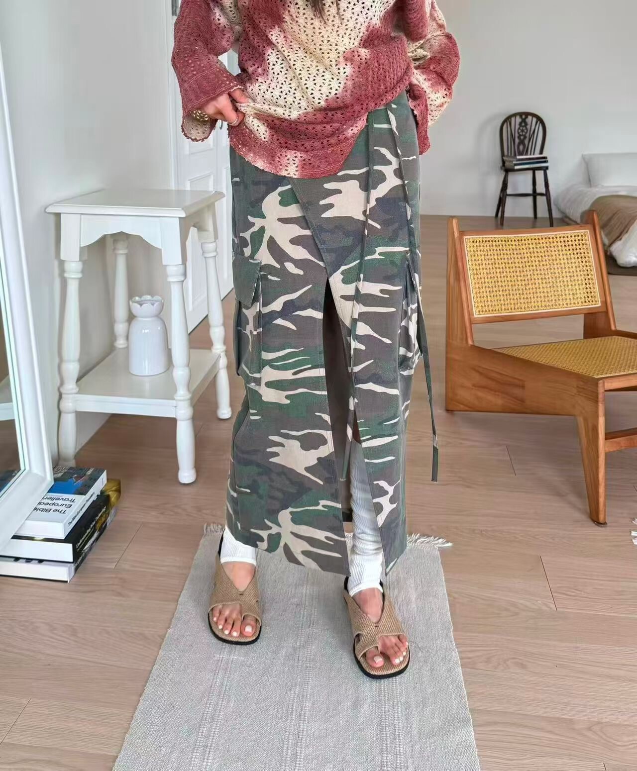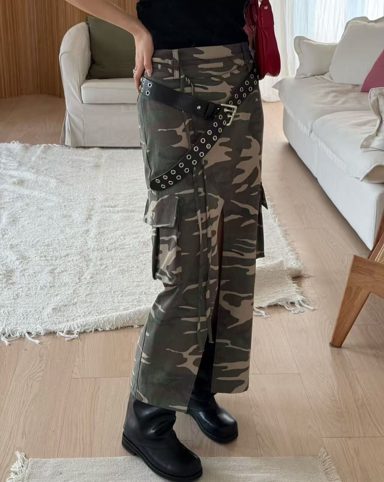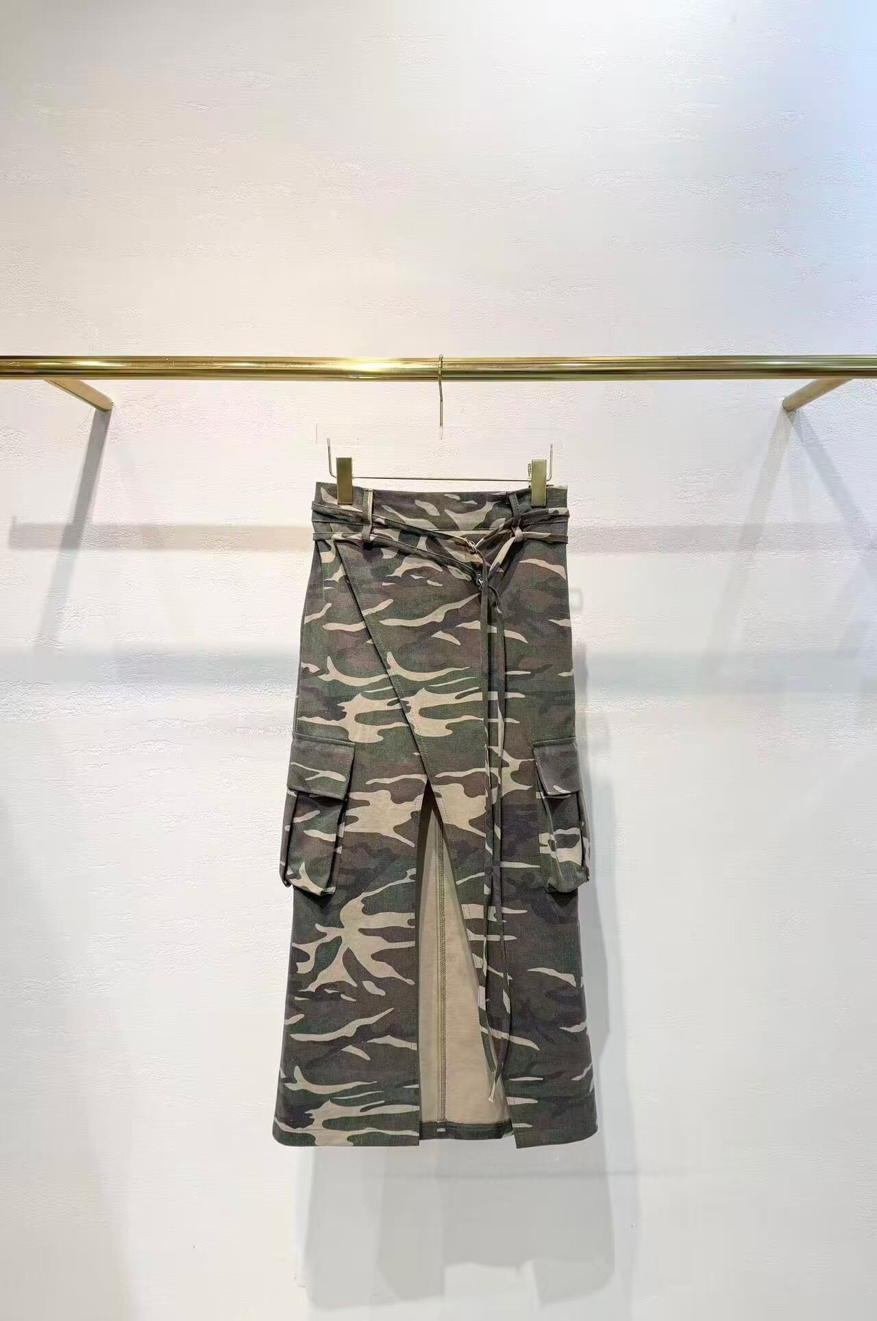 前開岔工裝口袋迷彩裙