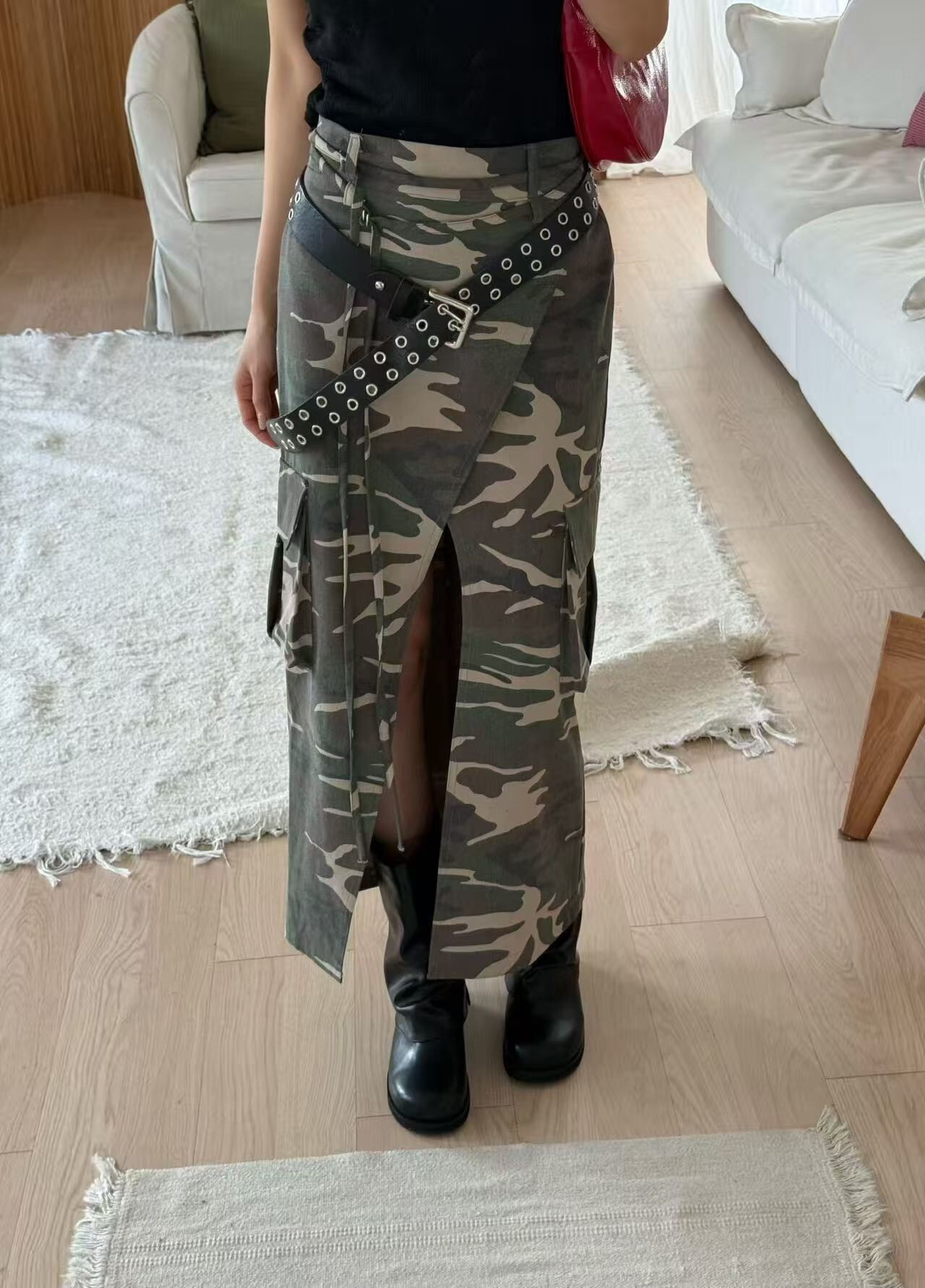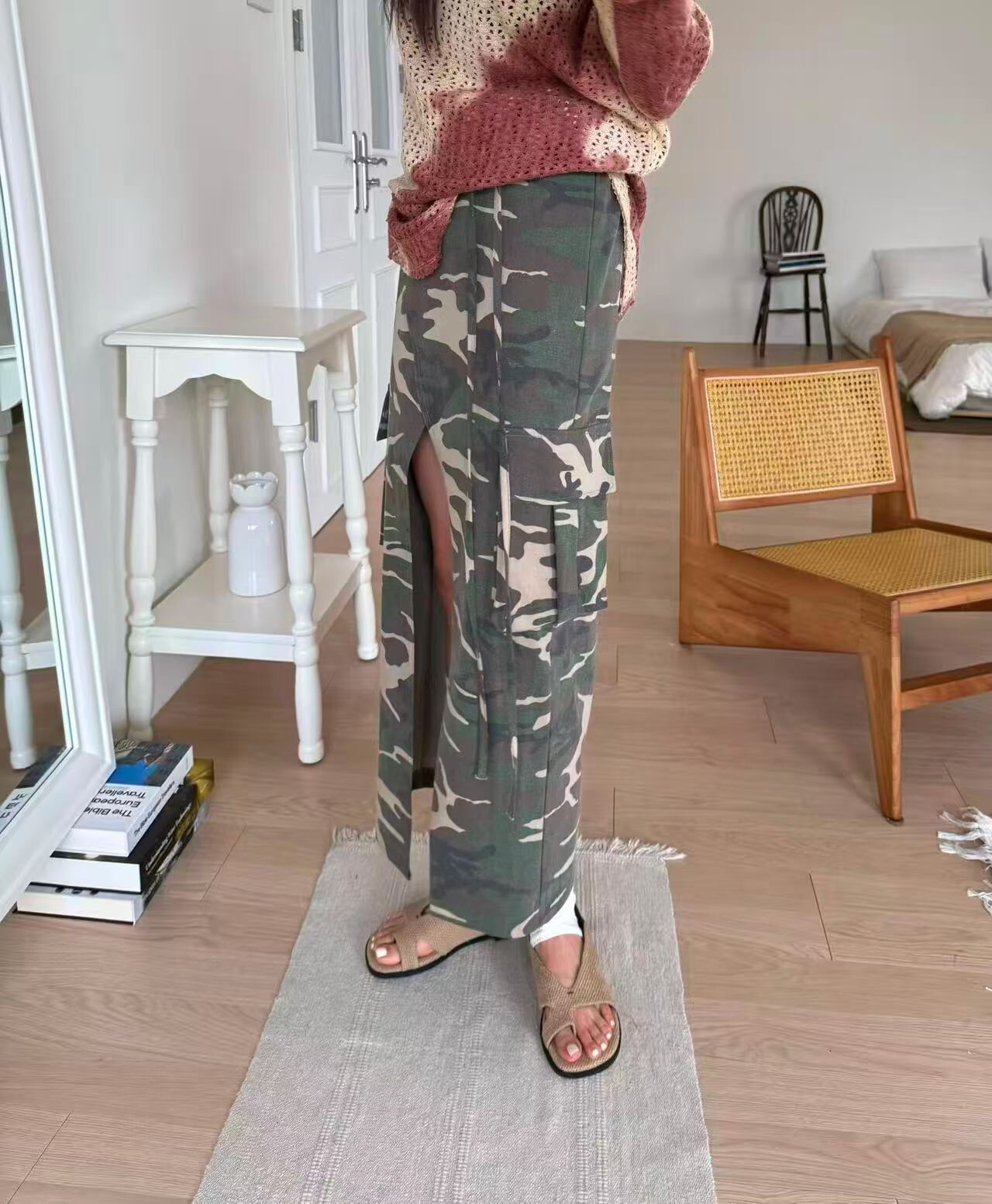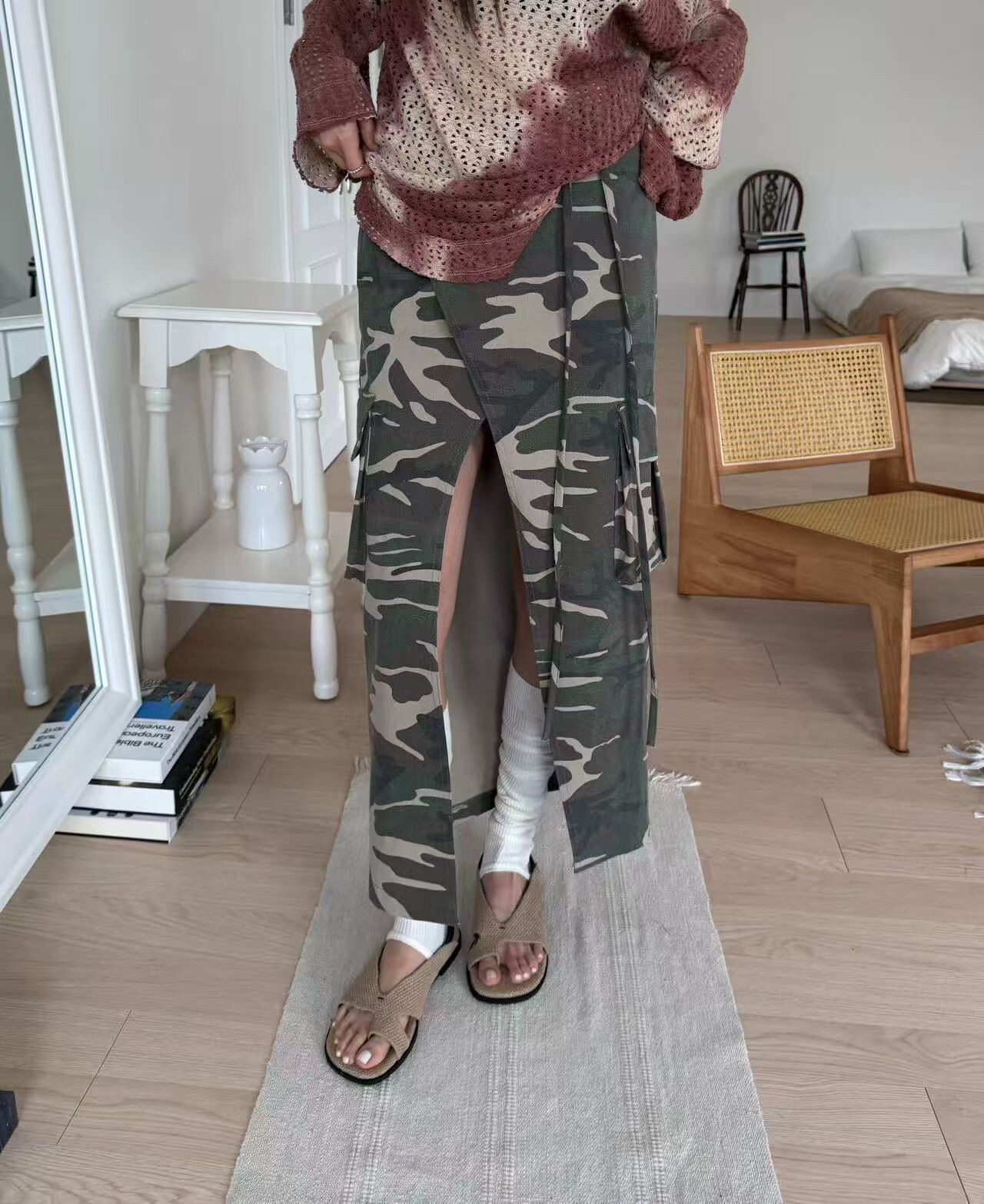 前開岔工裝口袋迷彩裙