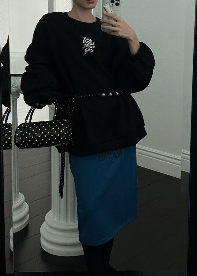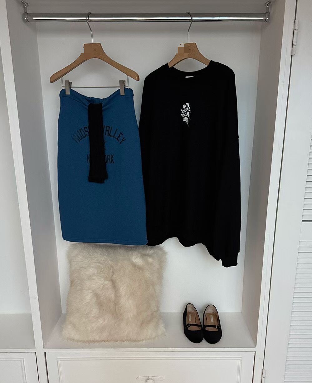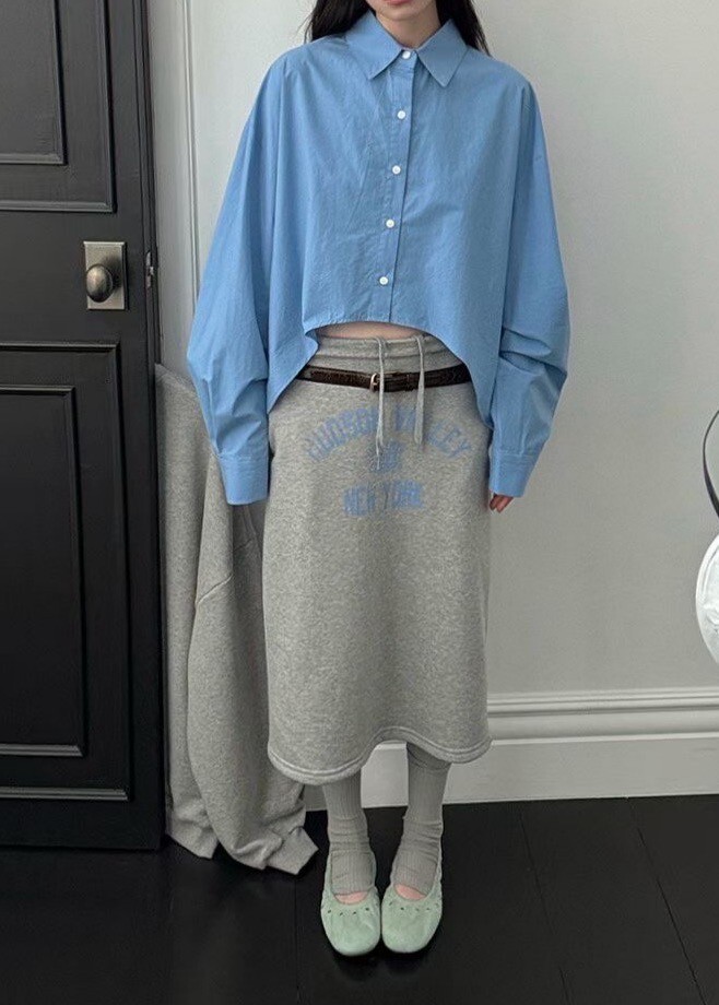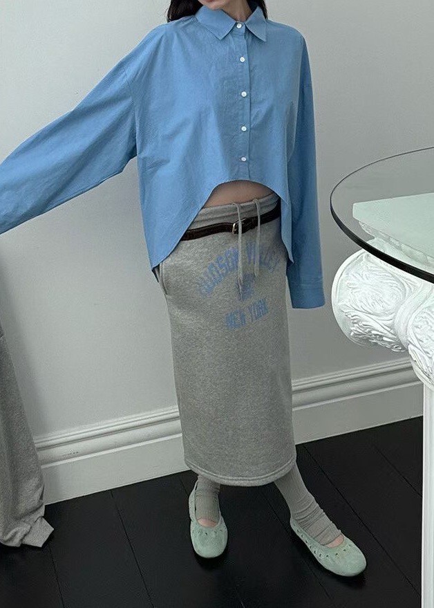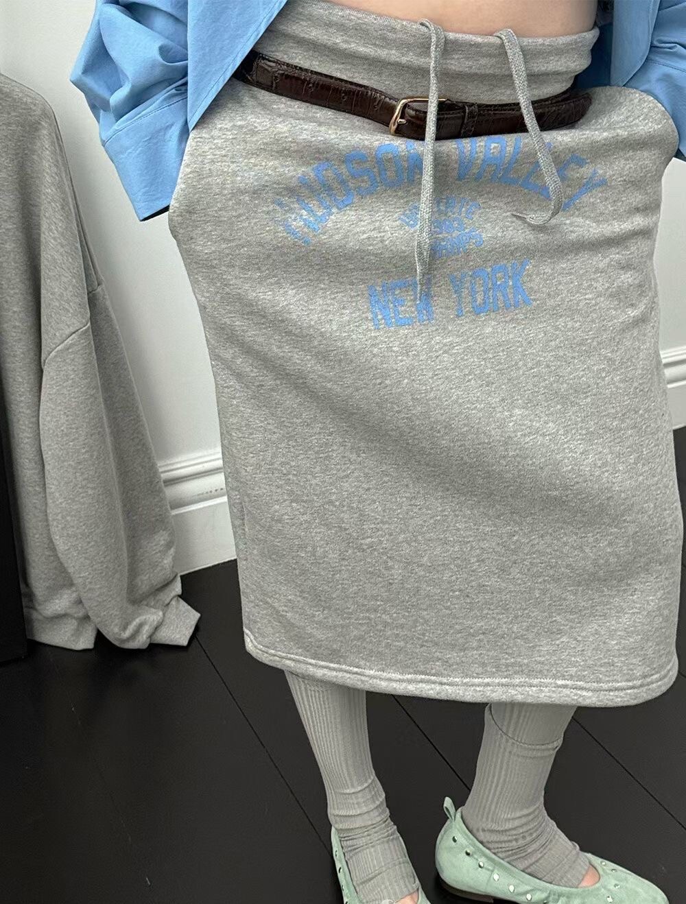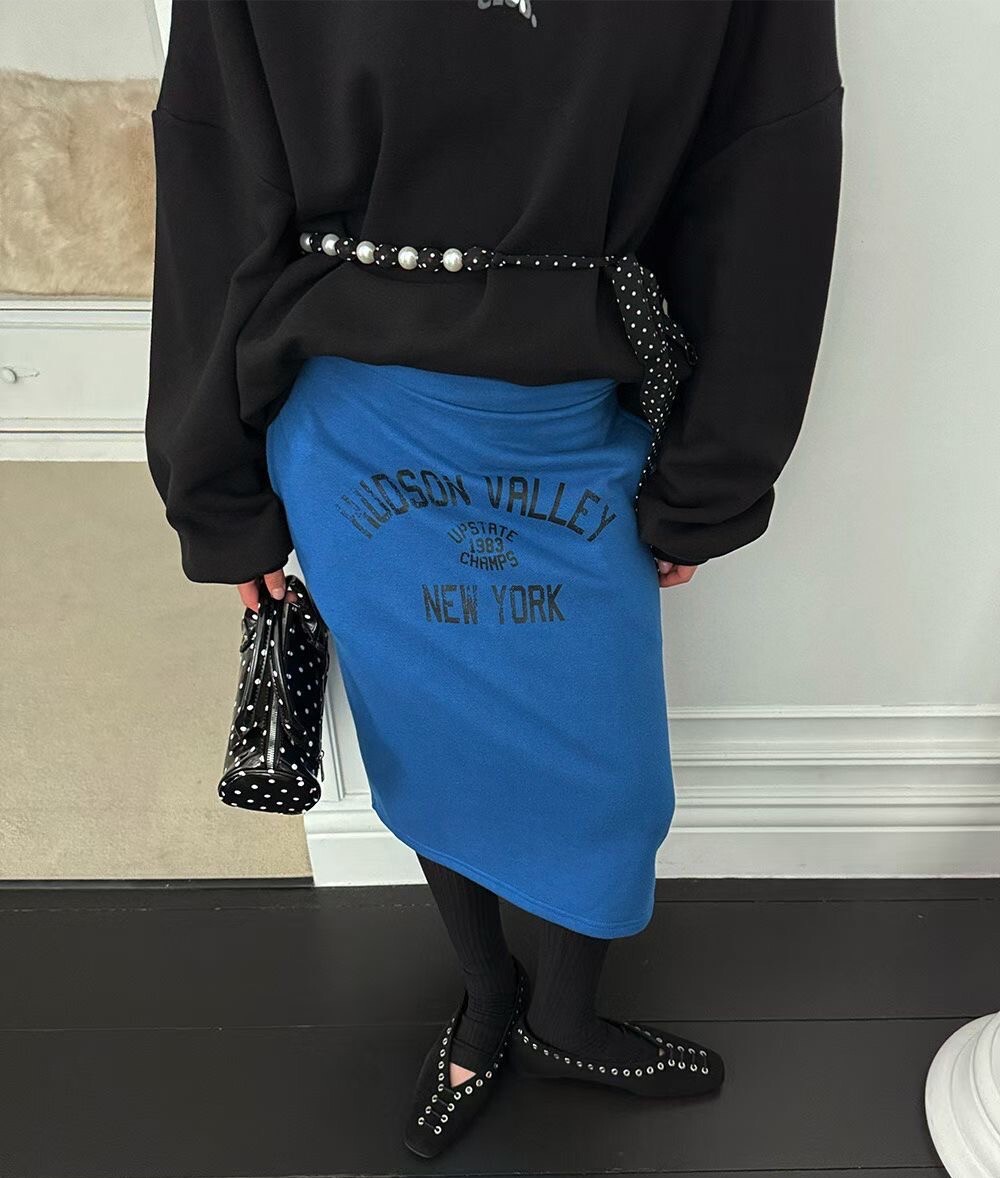 印字過膝抽繩棉裙