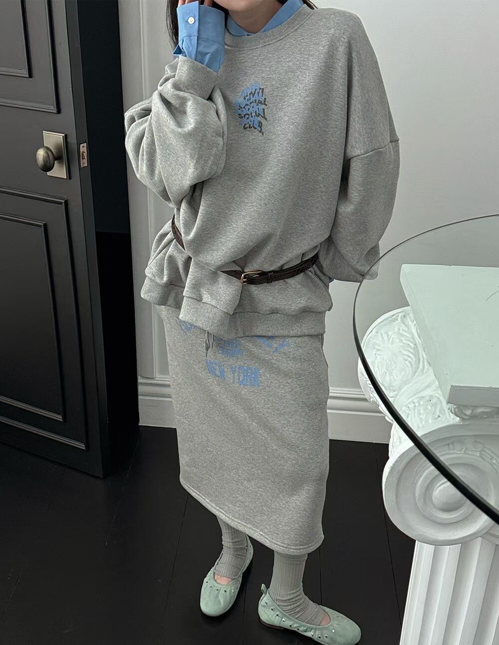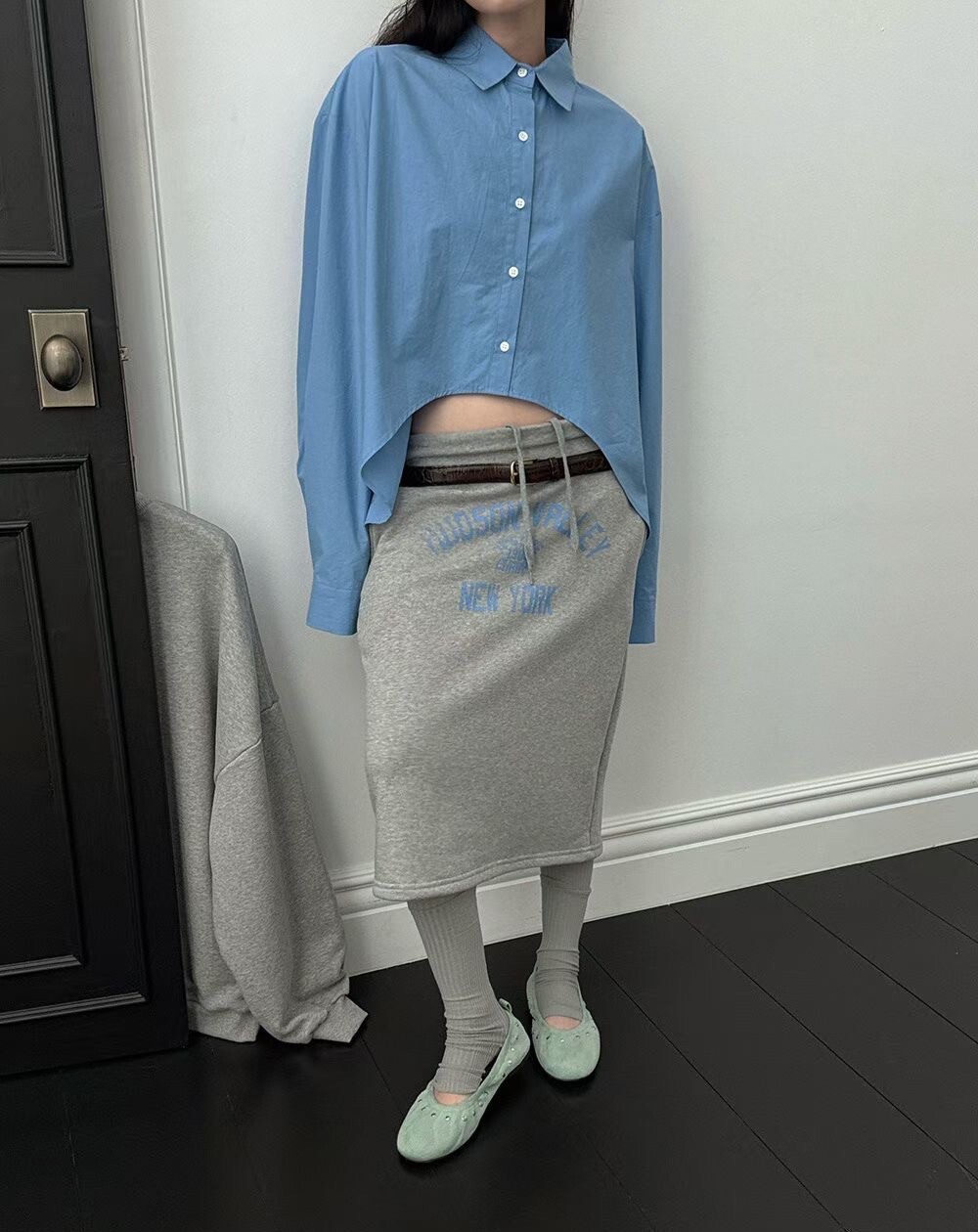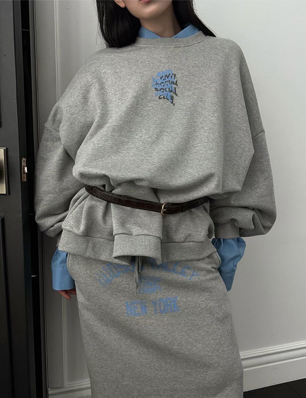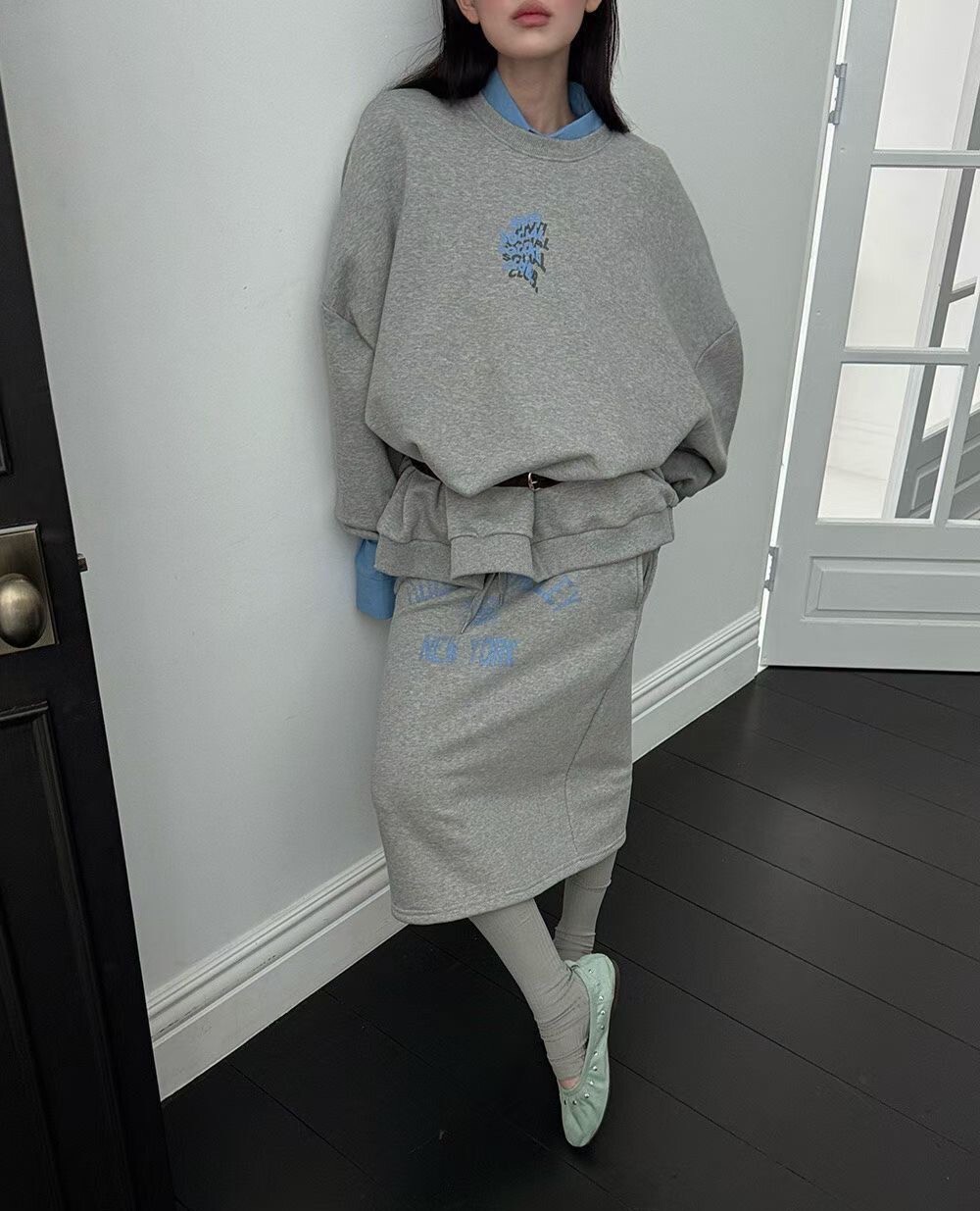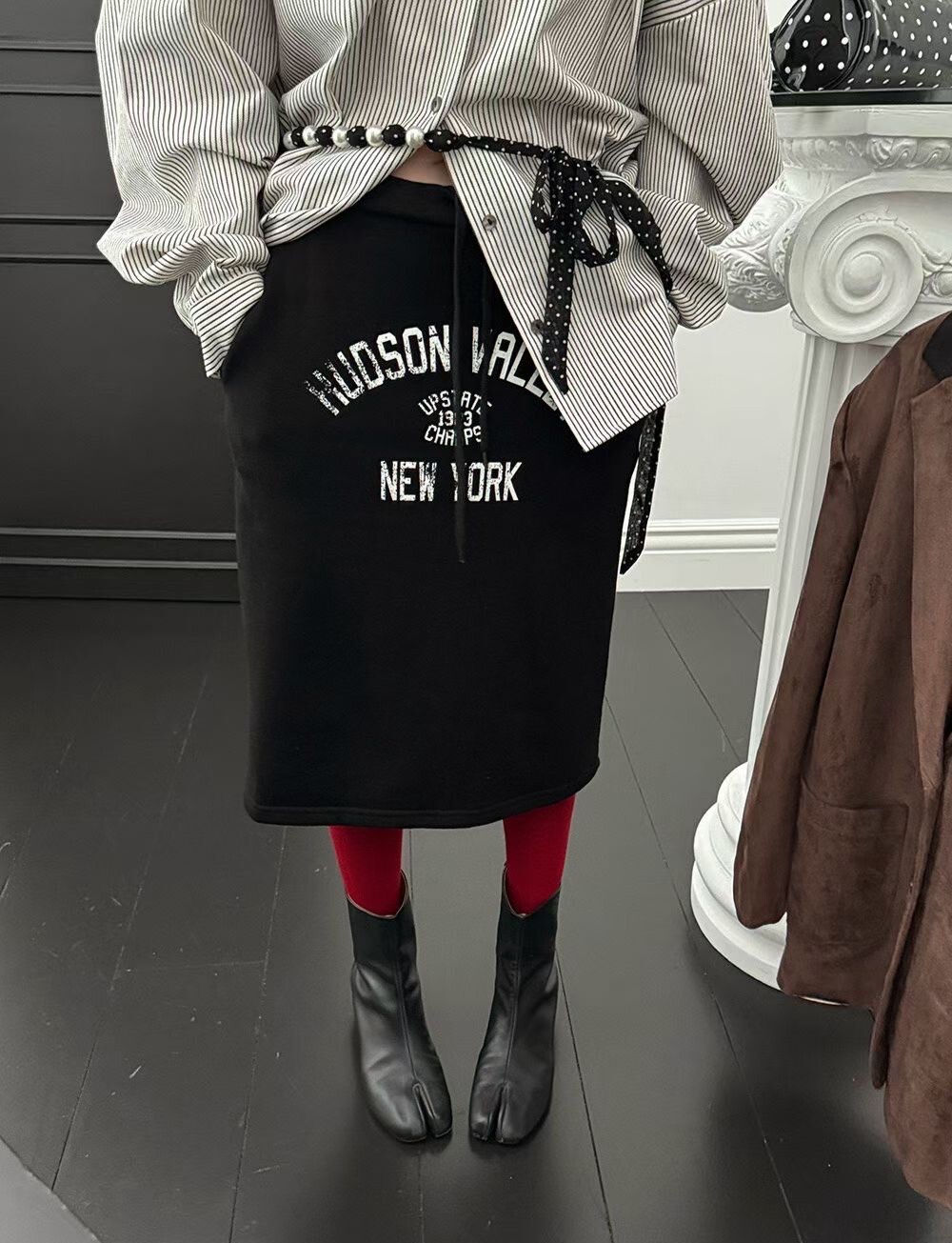 印字過膝抽繩棉裙