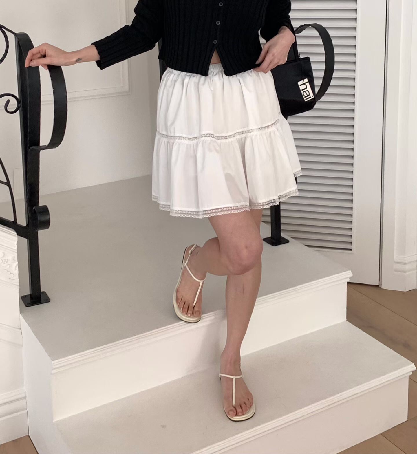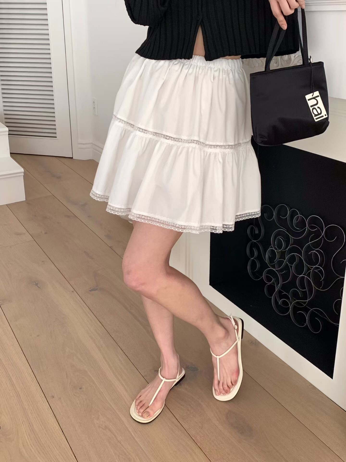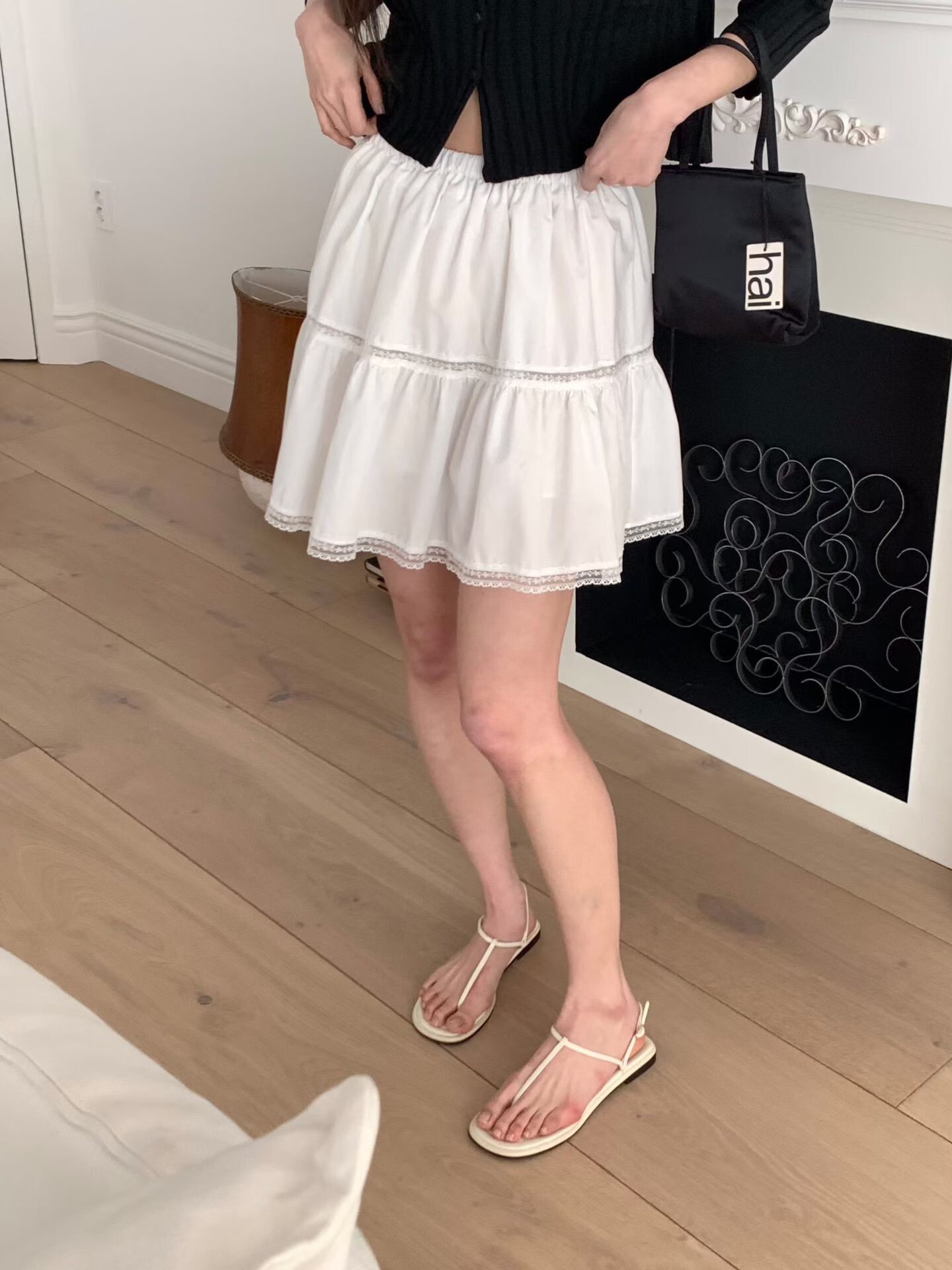 下擺蕾絲邊短圓裙