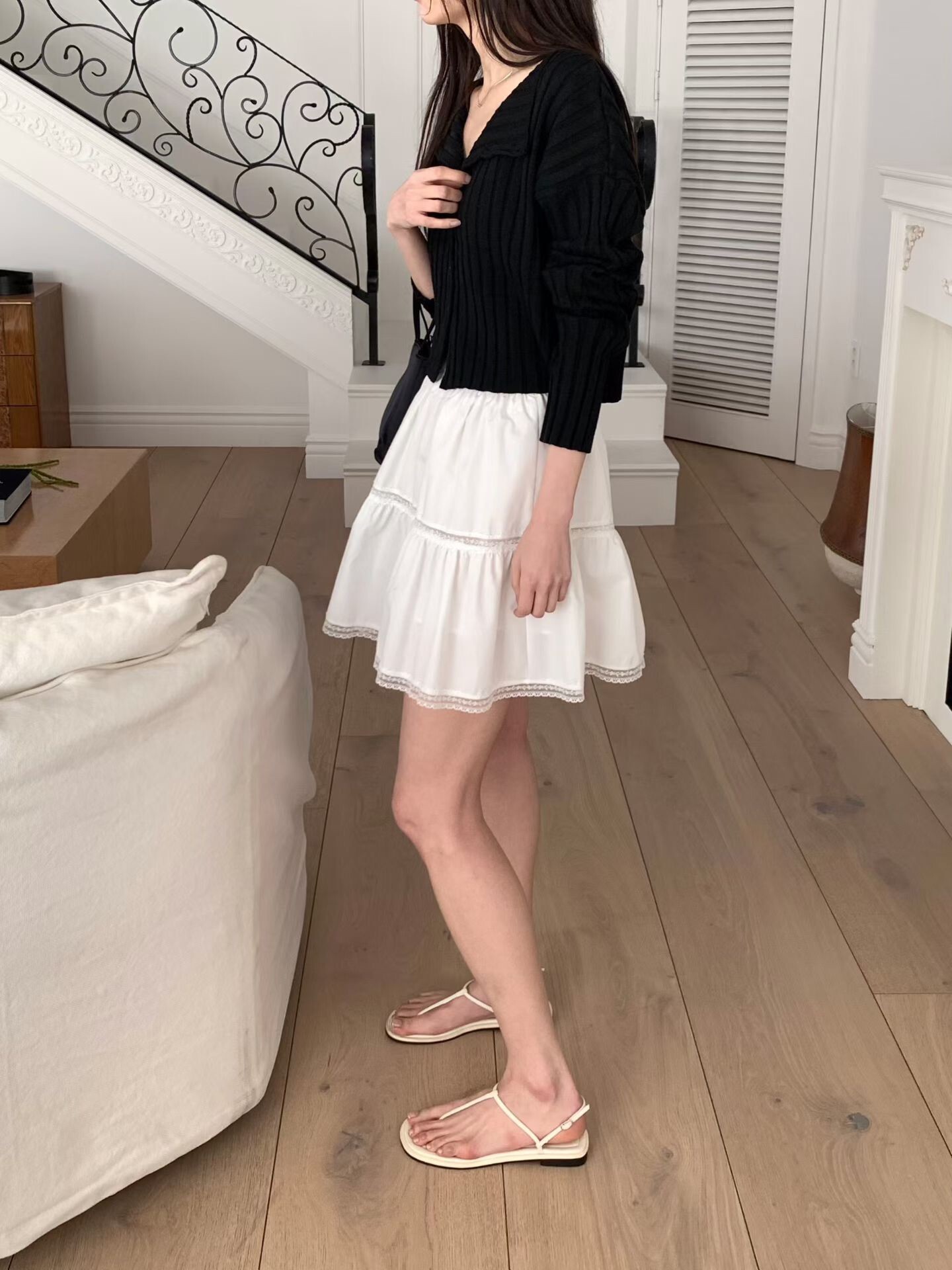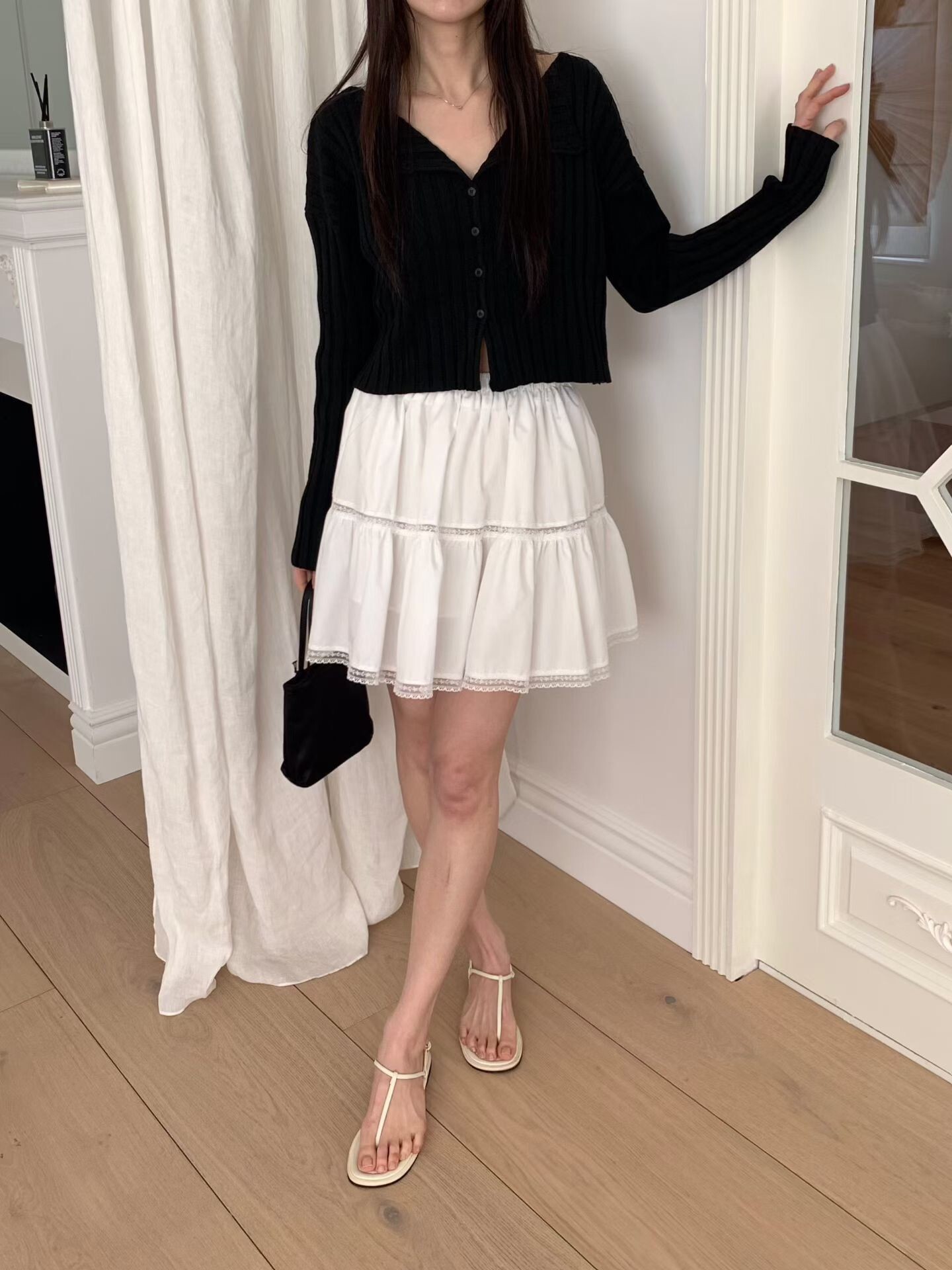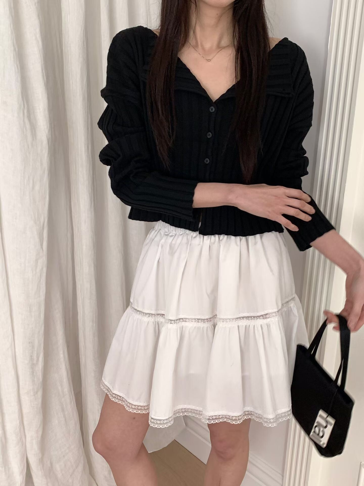 下擺蕾絲邊短圓裙