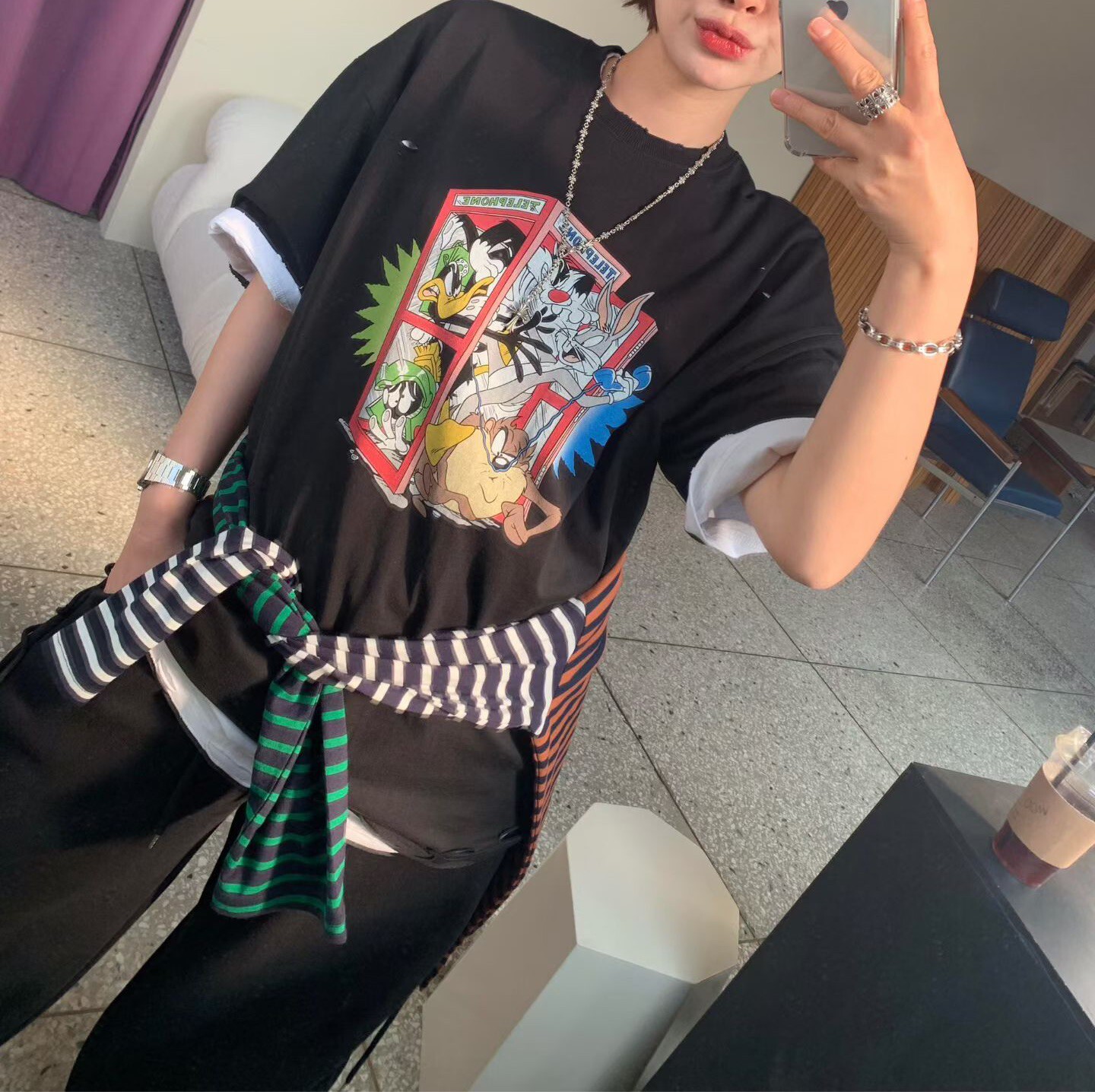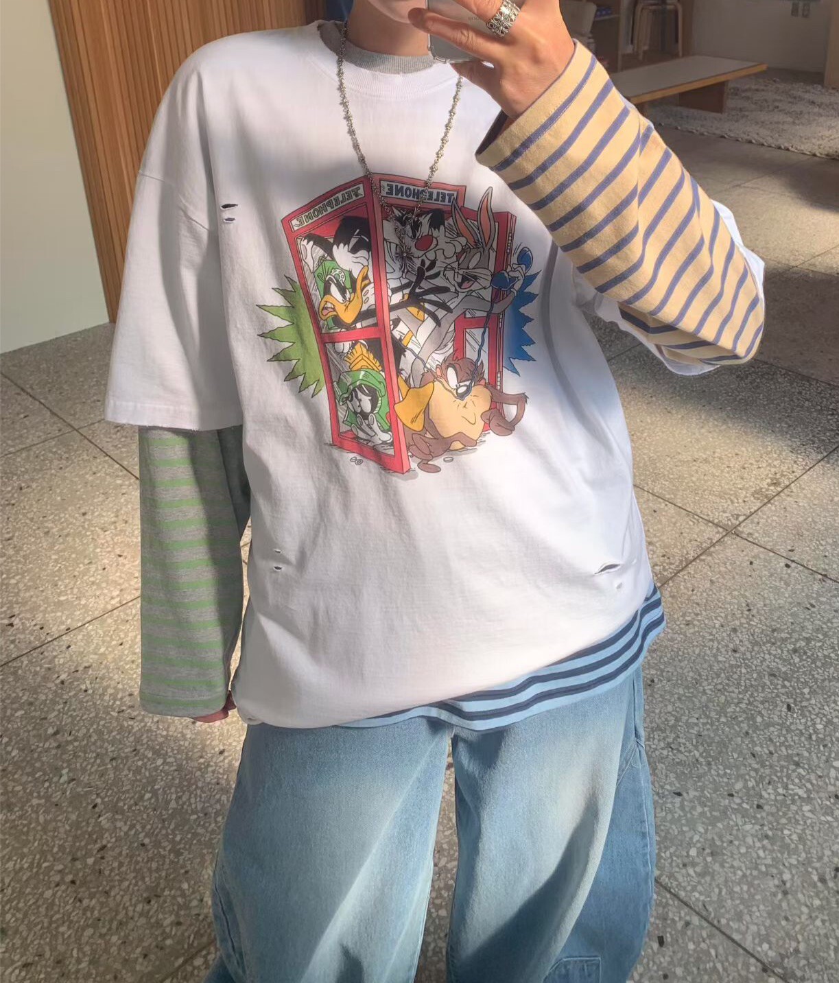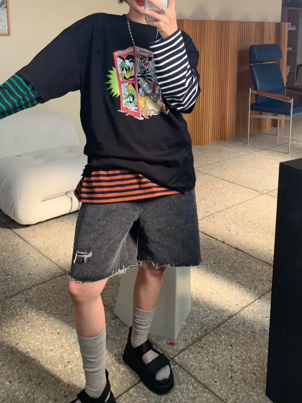 卡通印圖剪破T