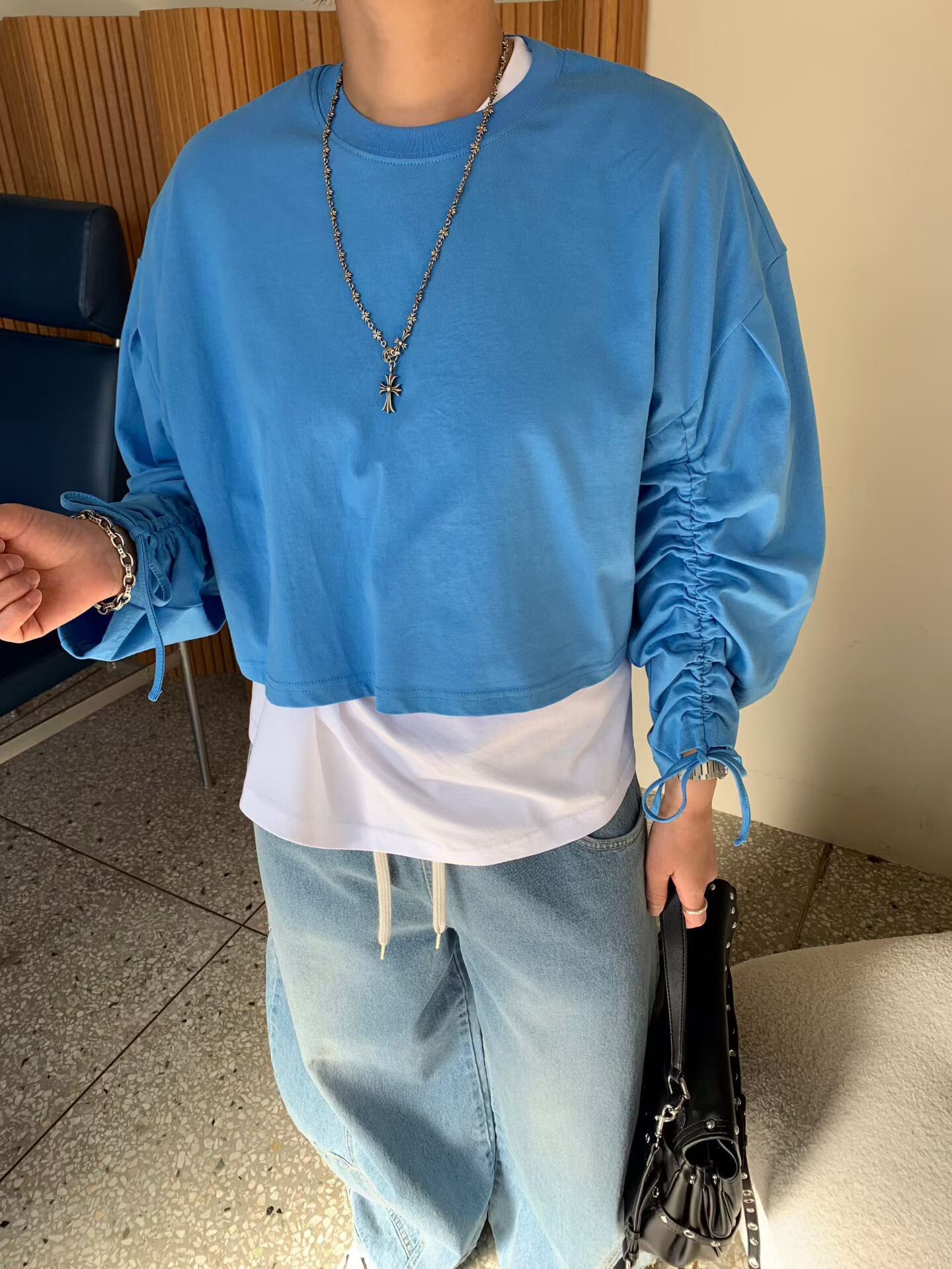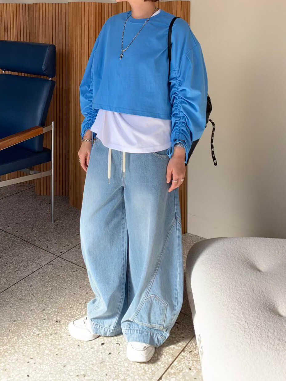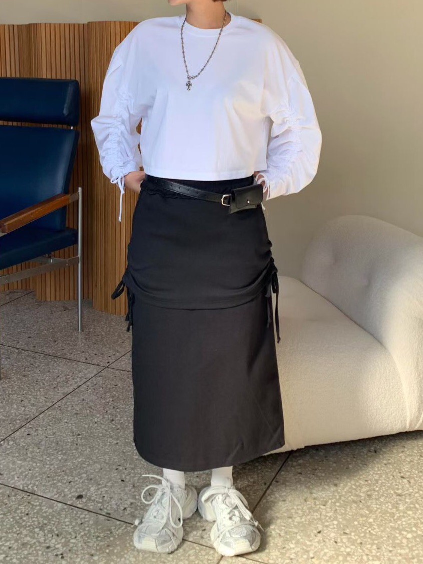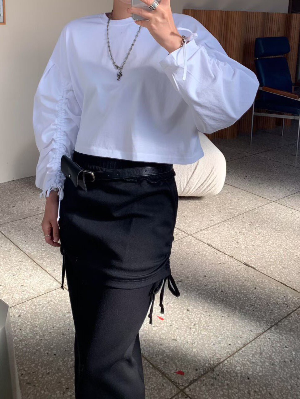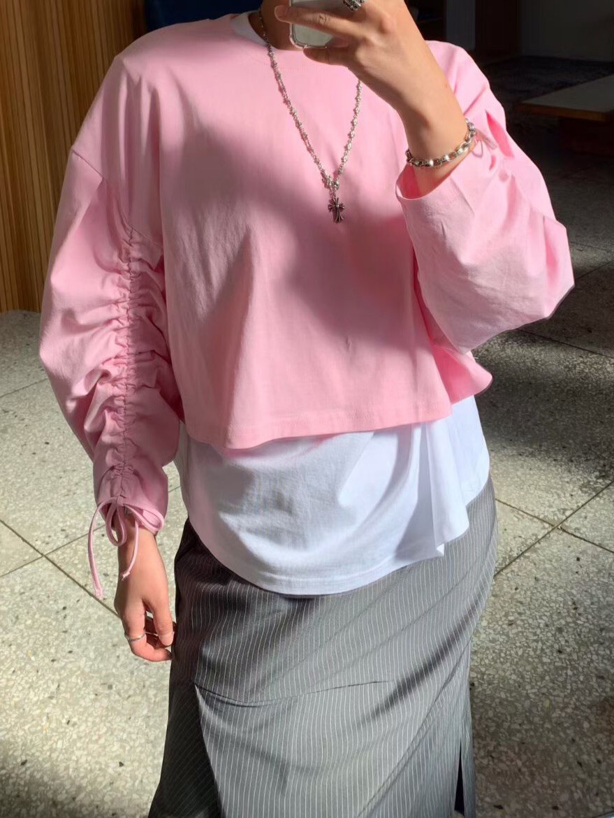 袖抽繩造型薄長T