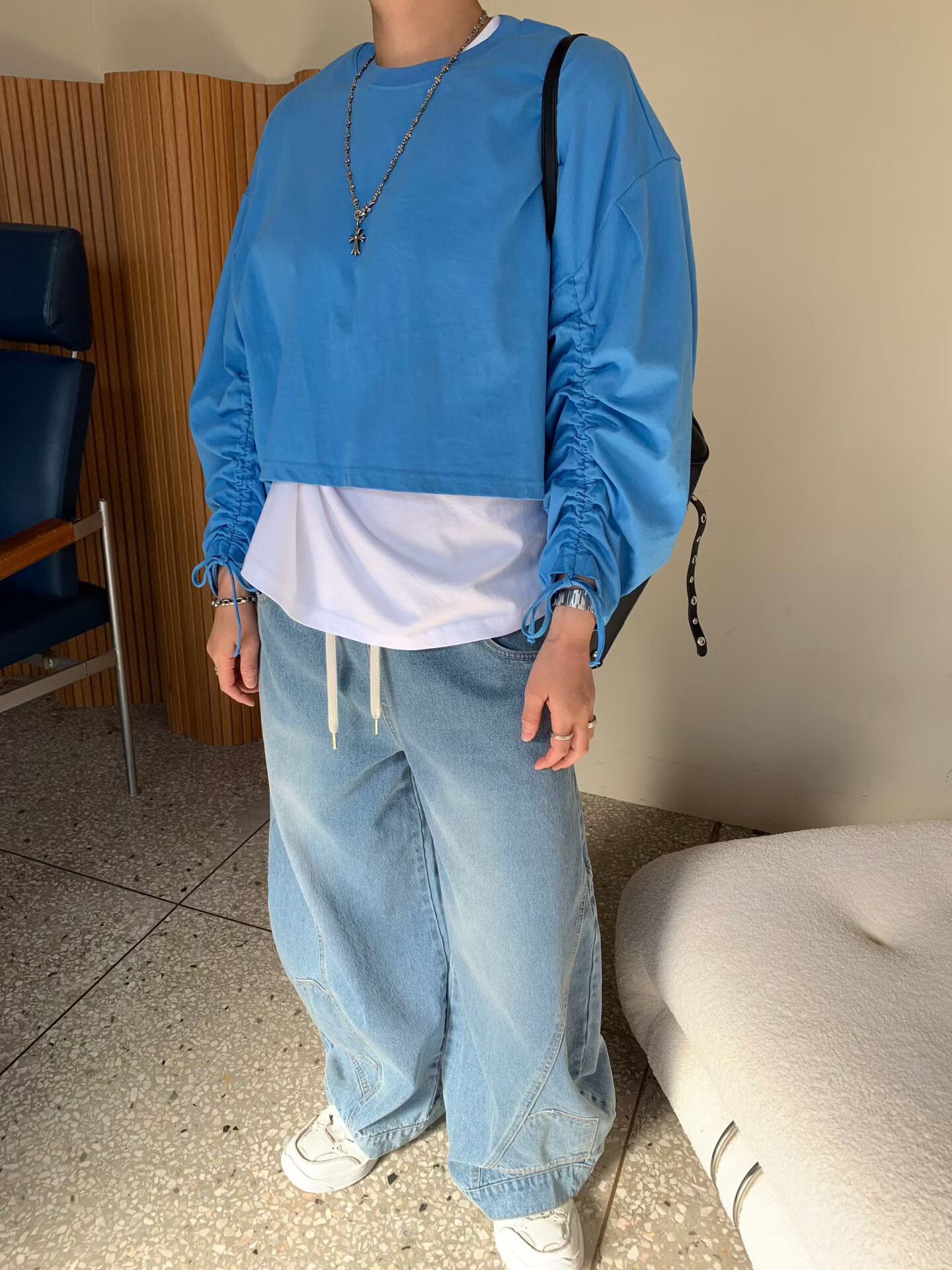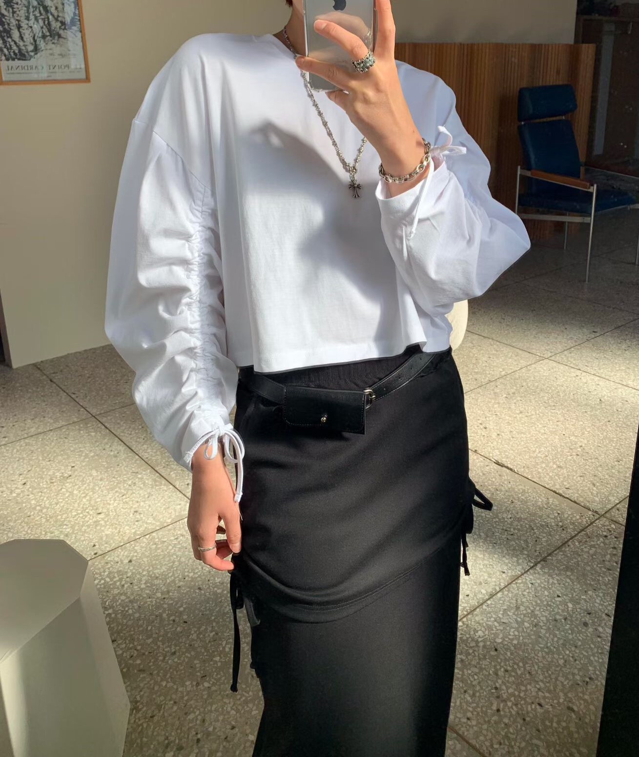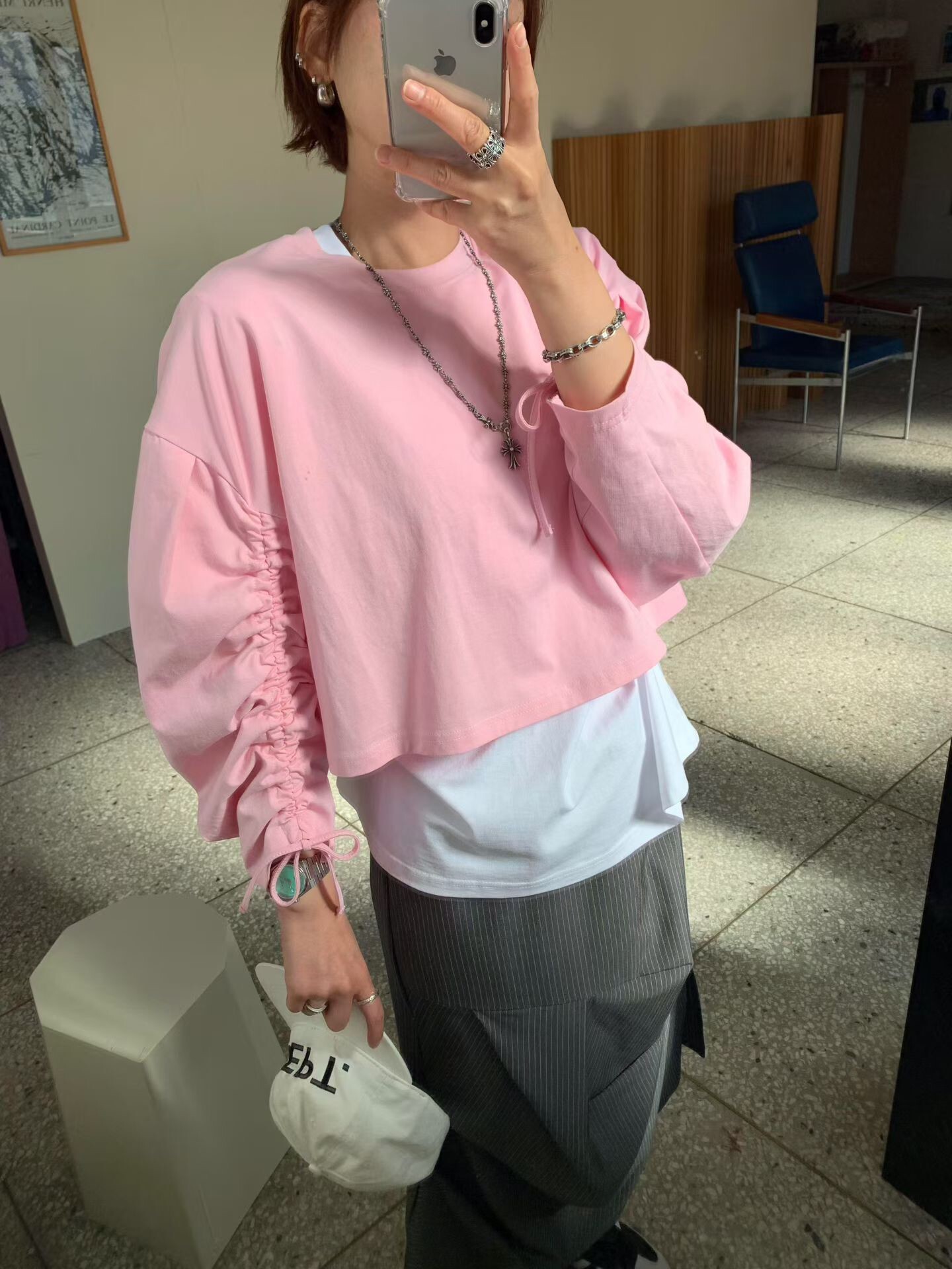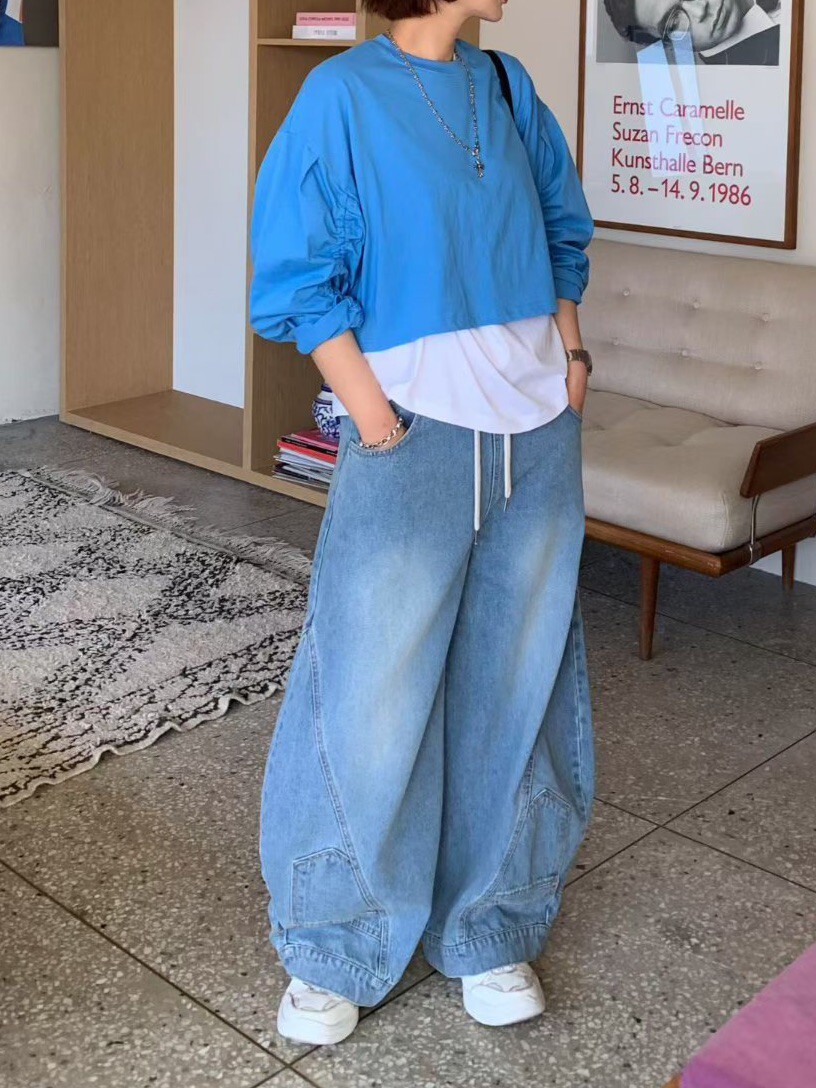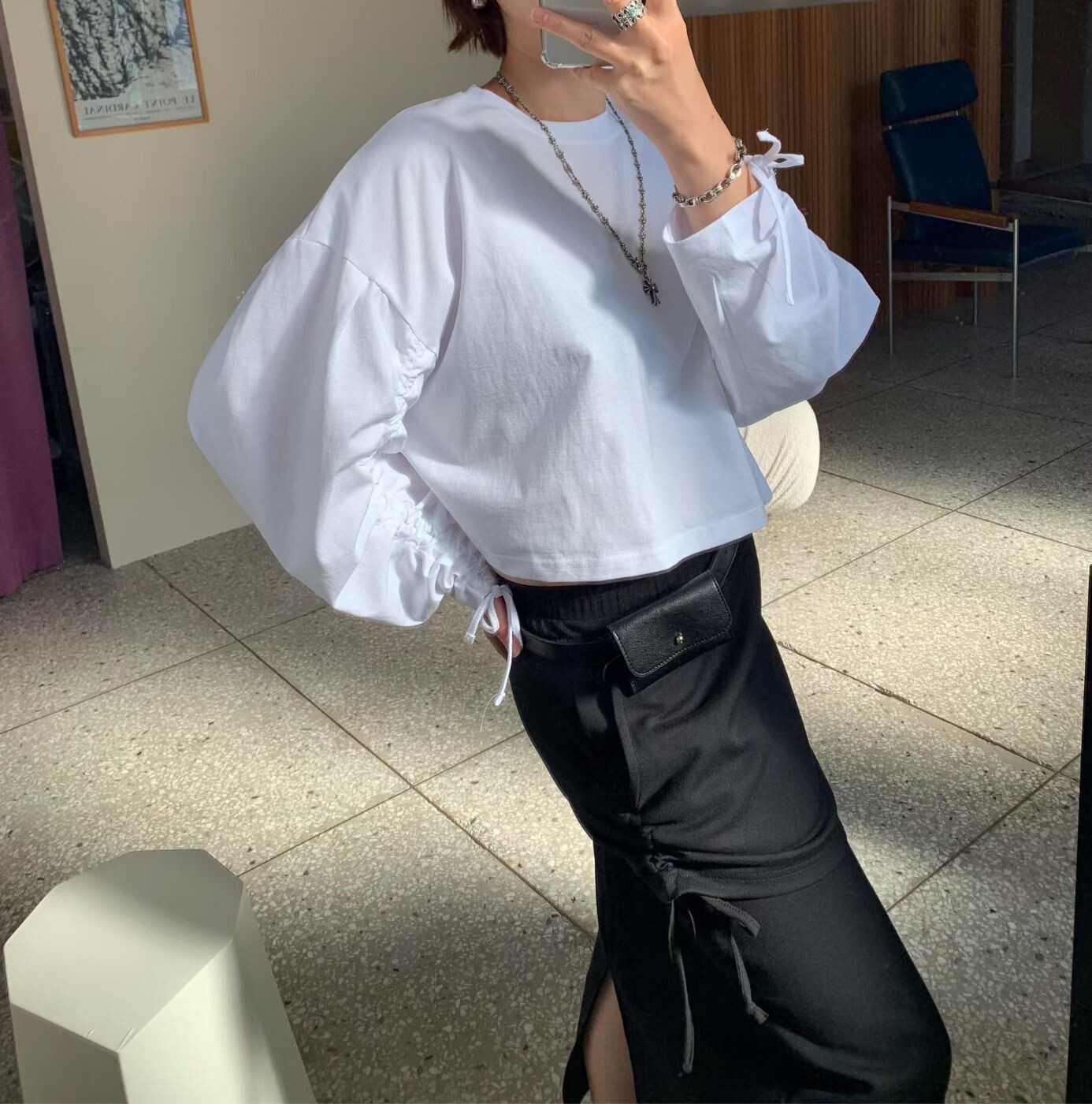 袖抽繩造型薄長T