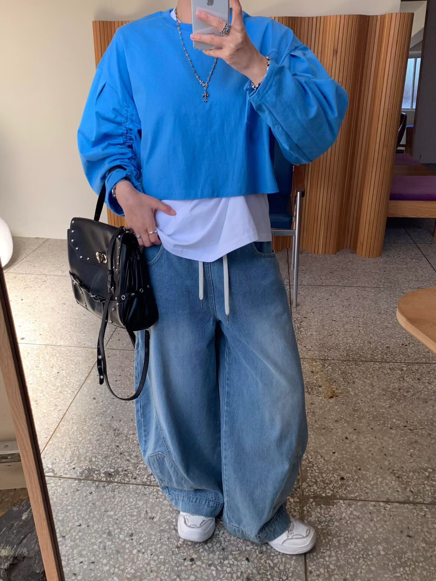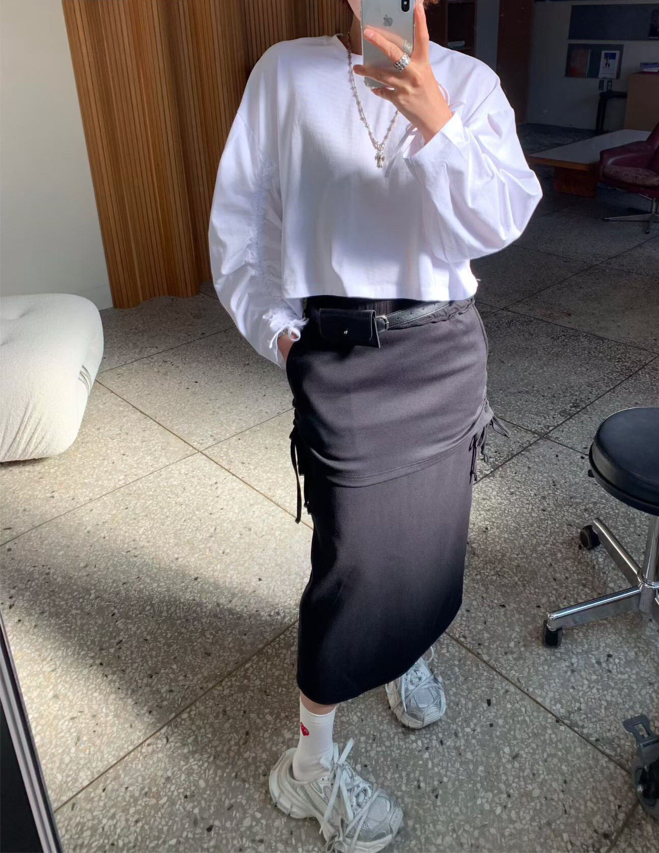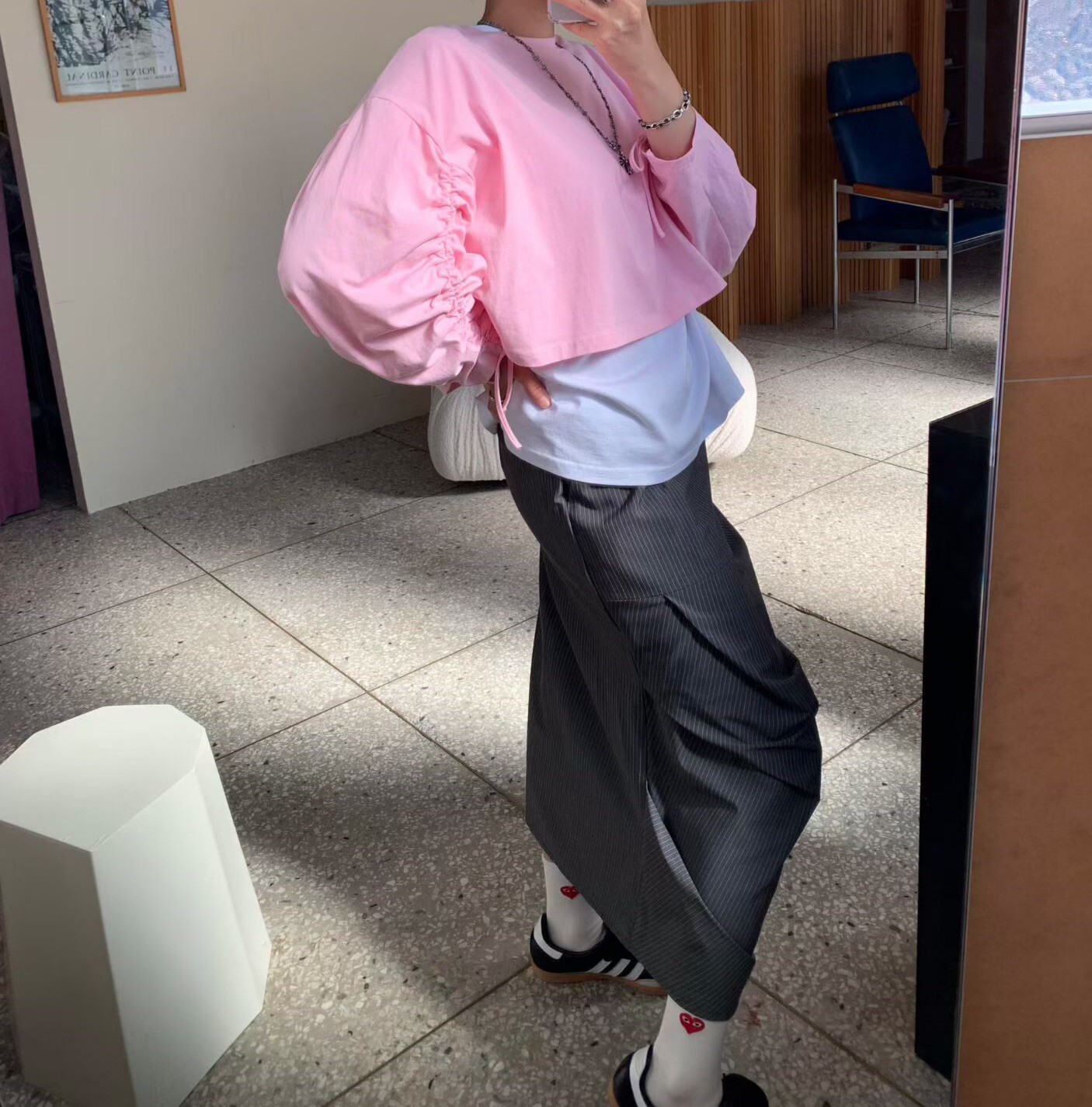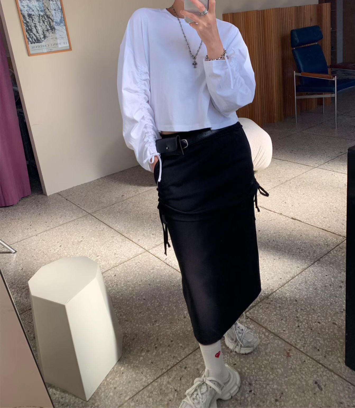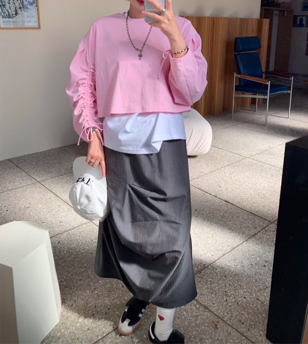 袖抽繩造型薄長T