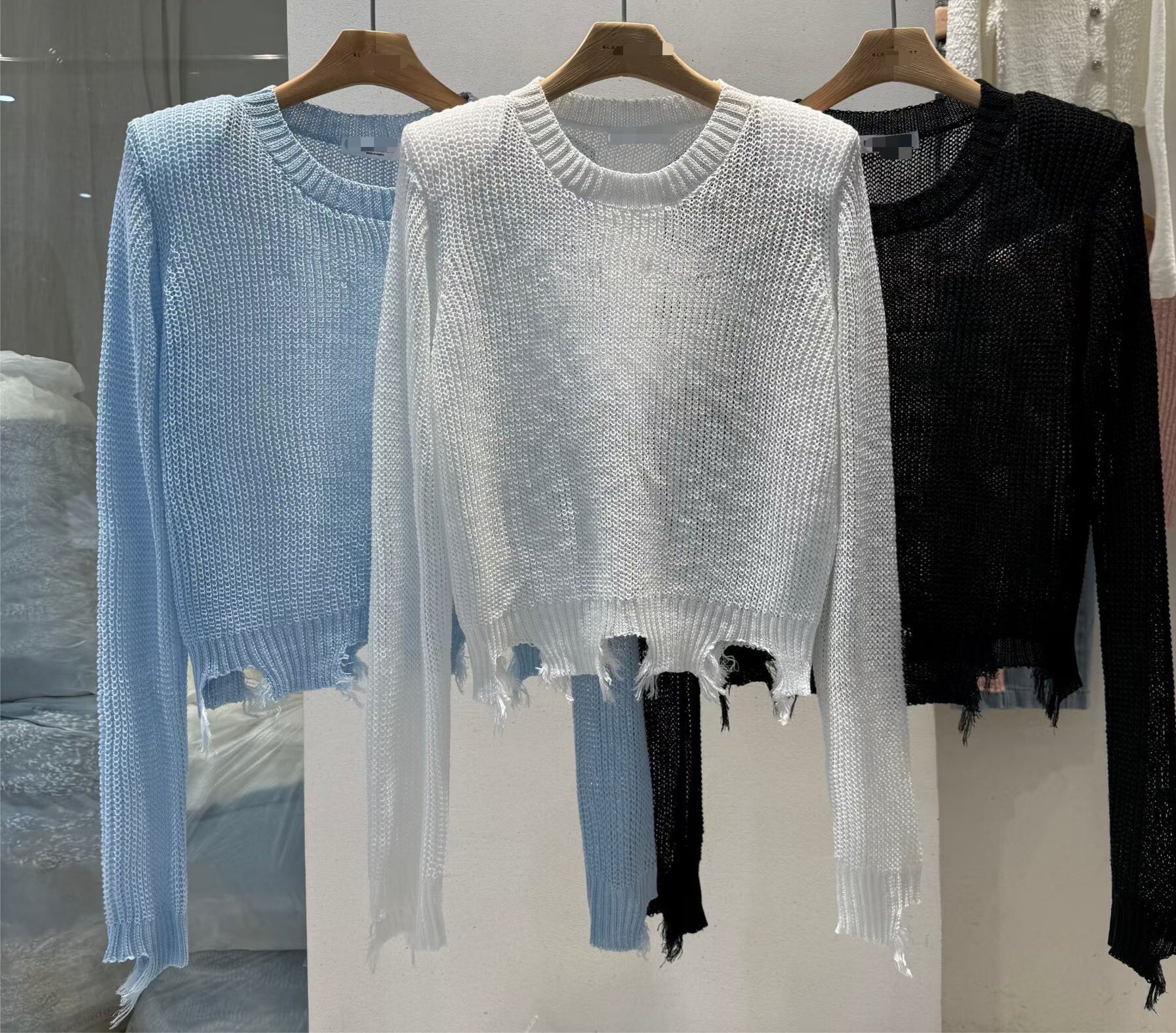 針織墊肩長T