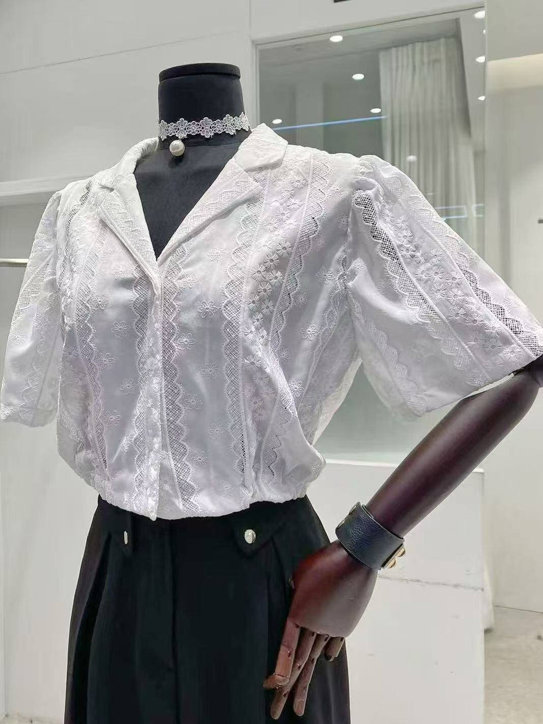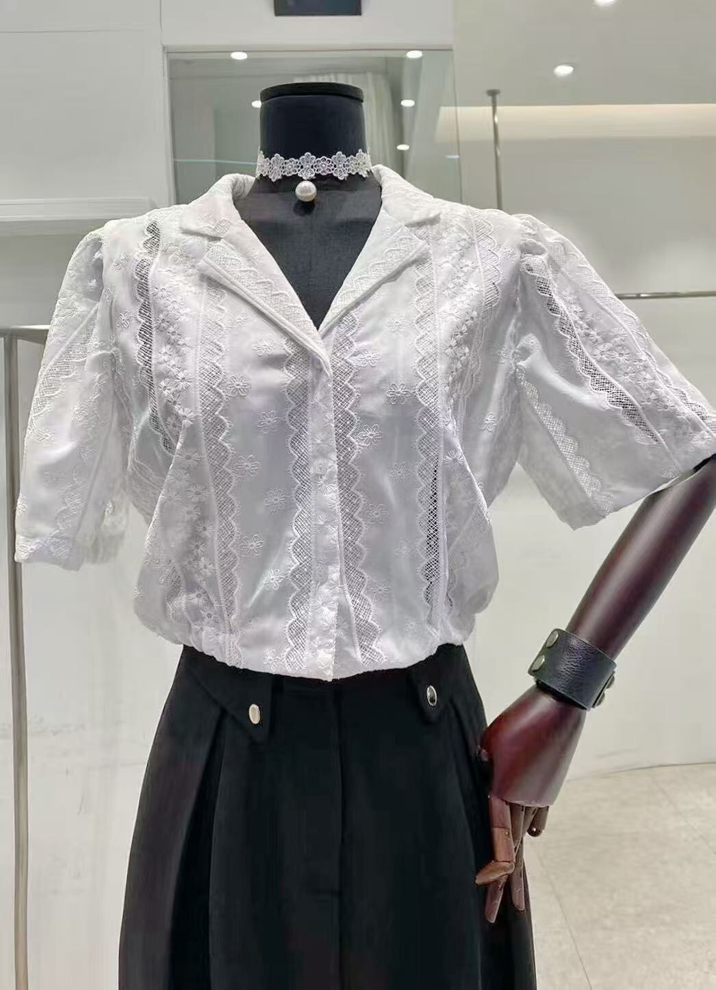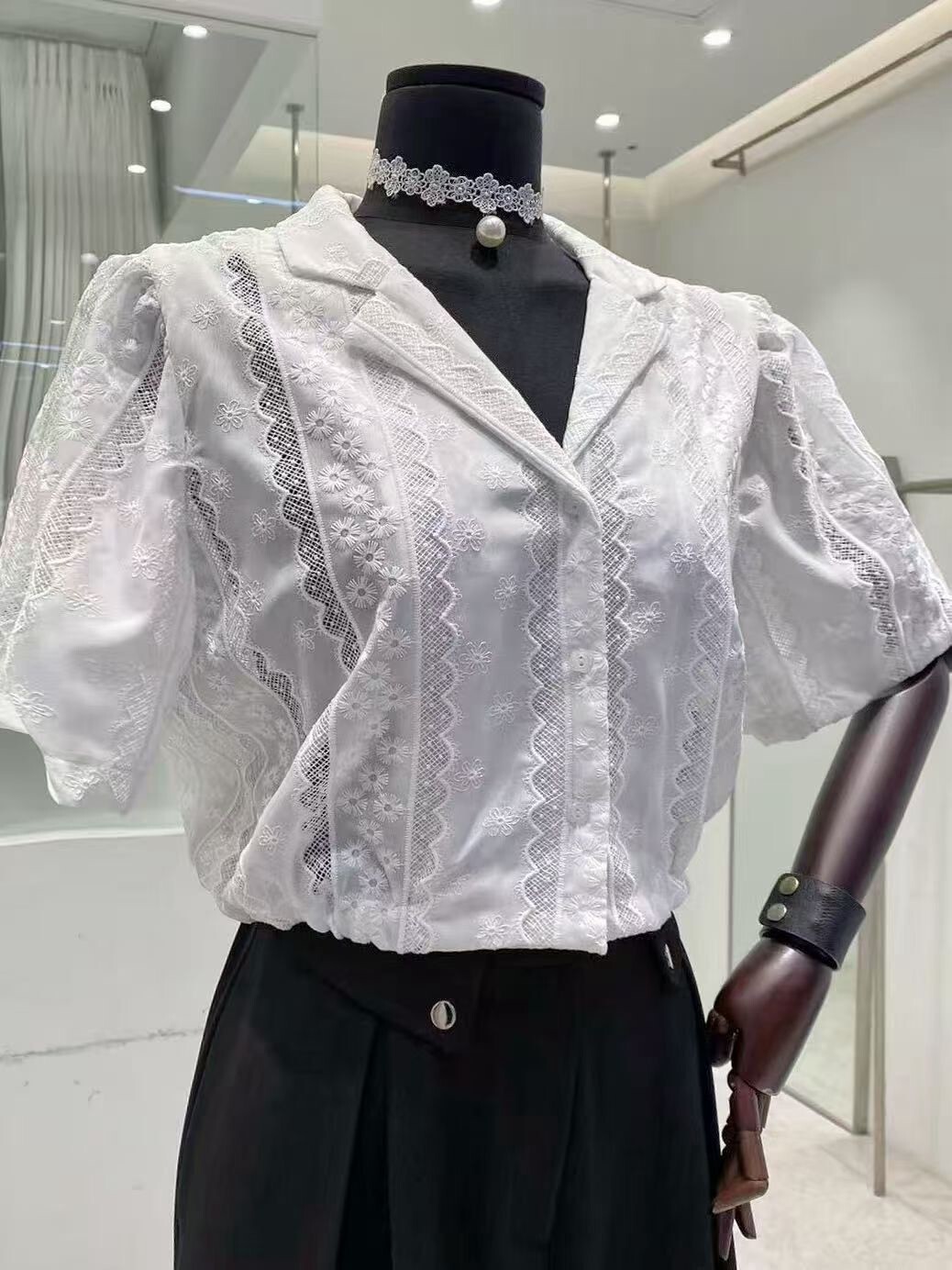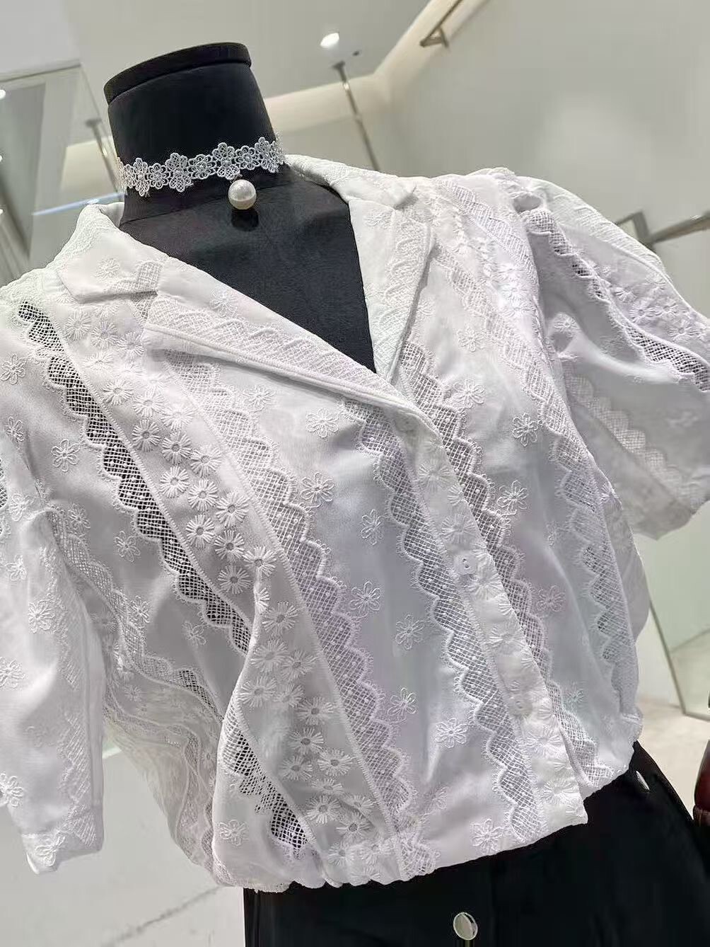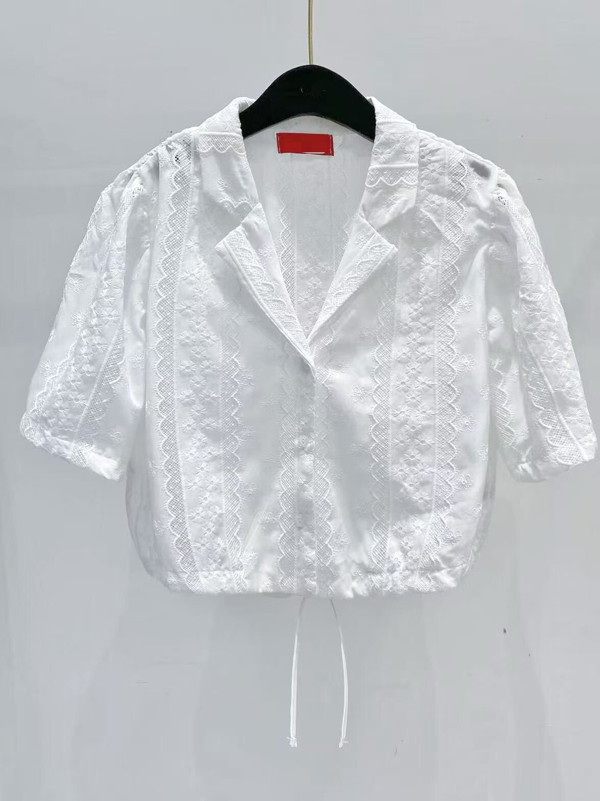 古巴領後抽繩布蕾絲襯