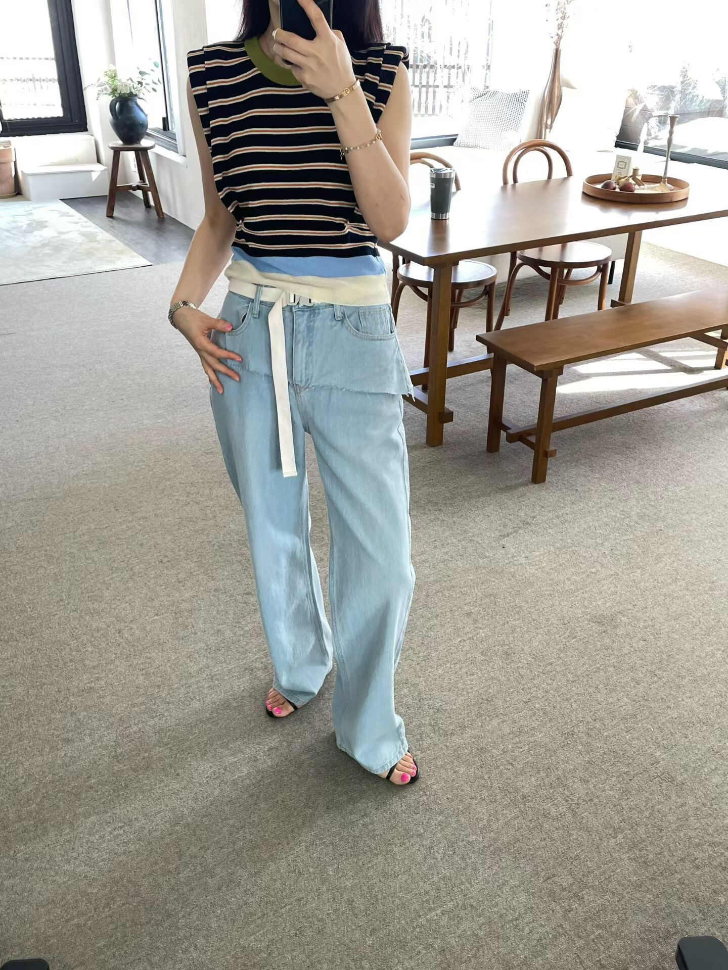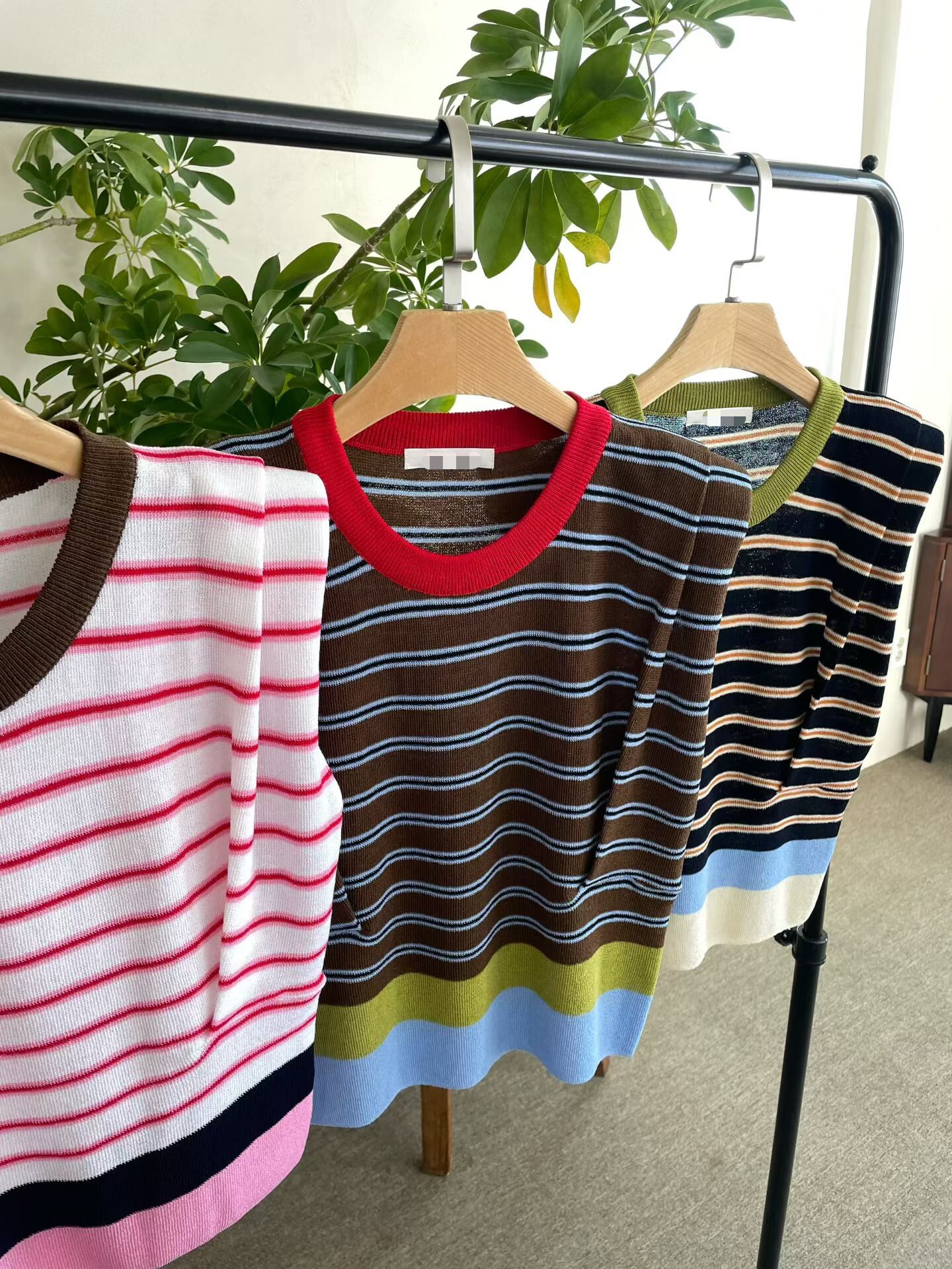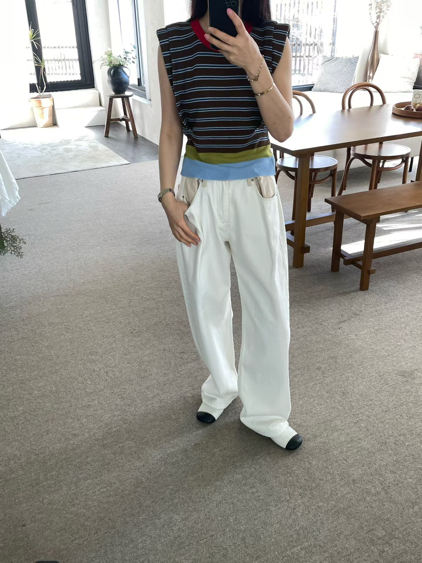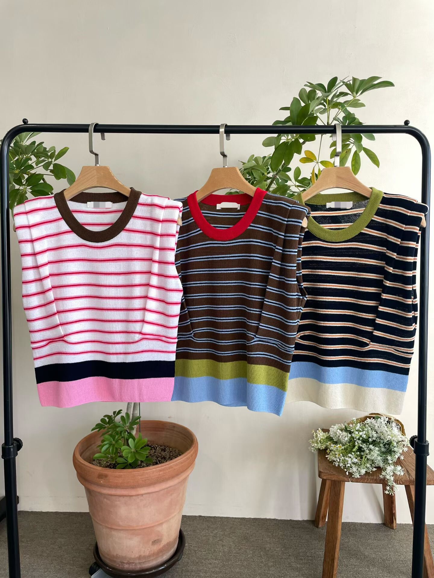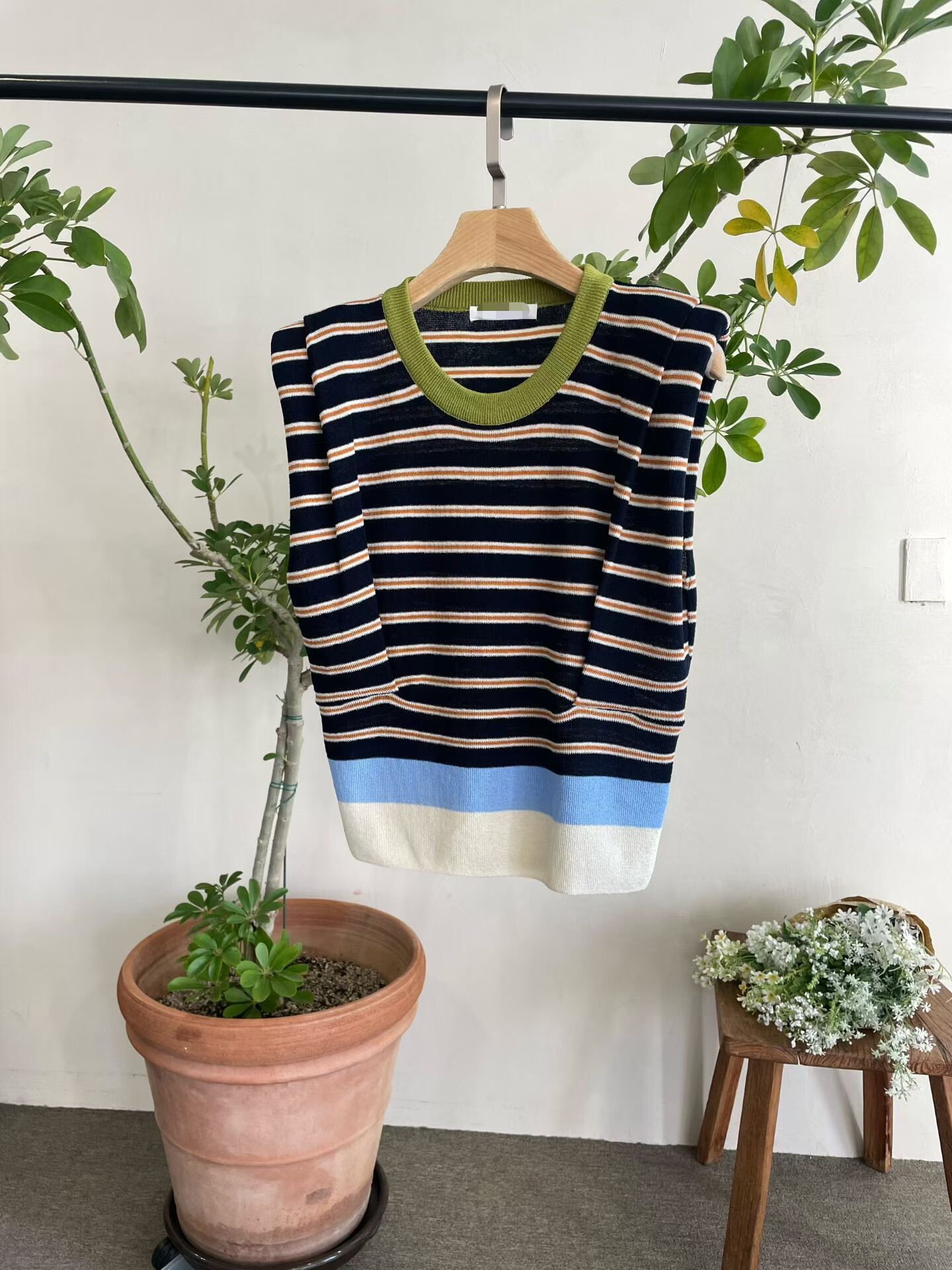 撞色收腰墊肩棉質背心