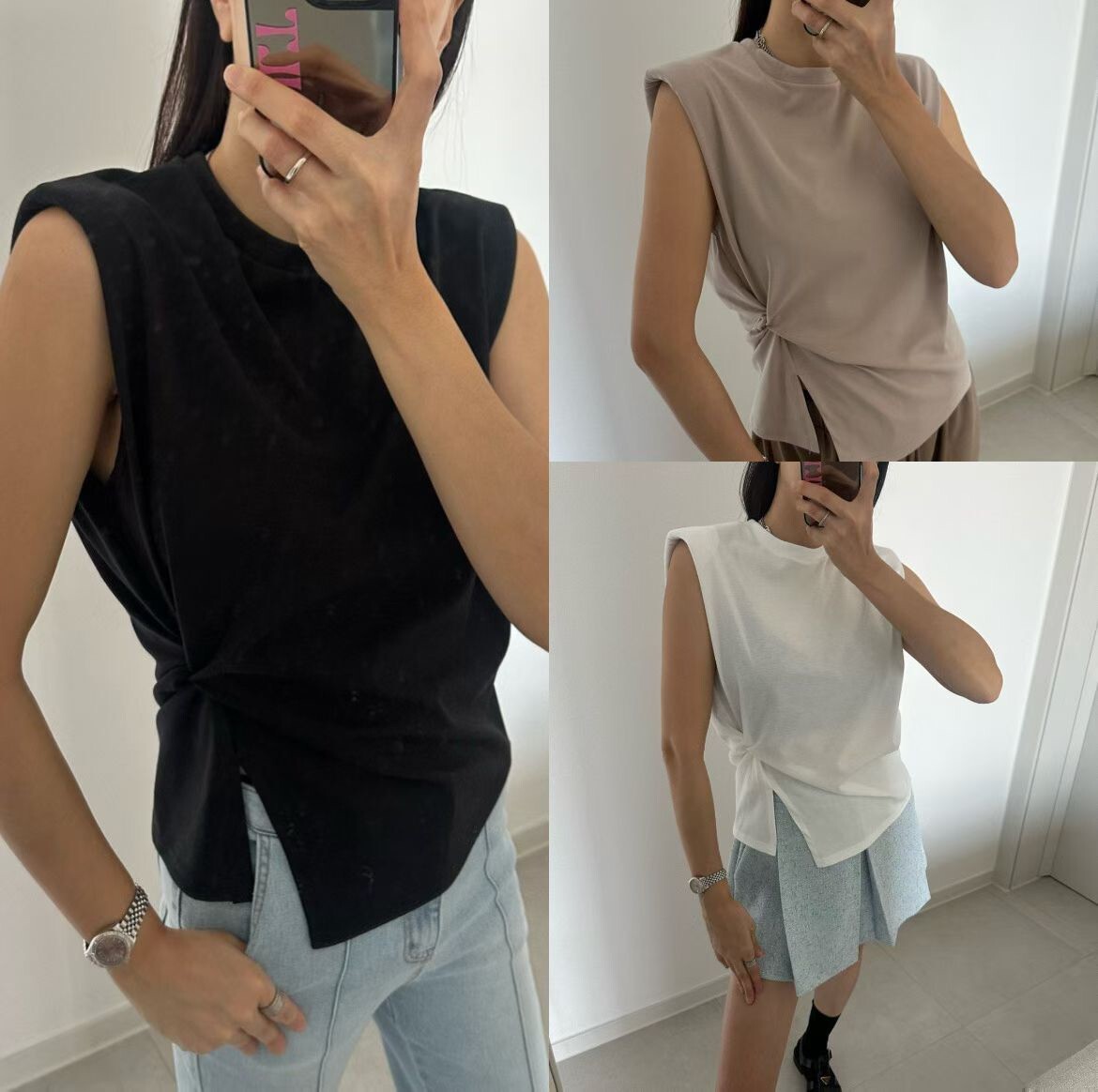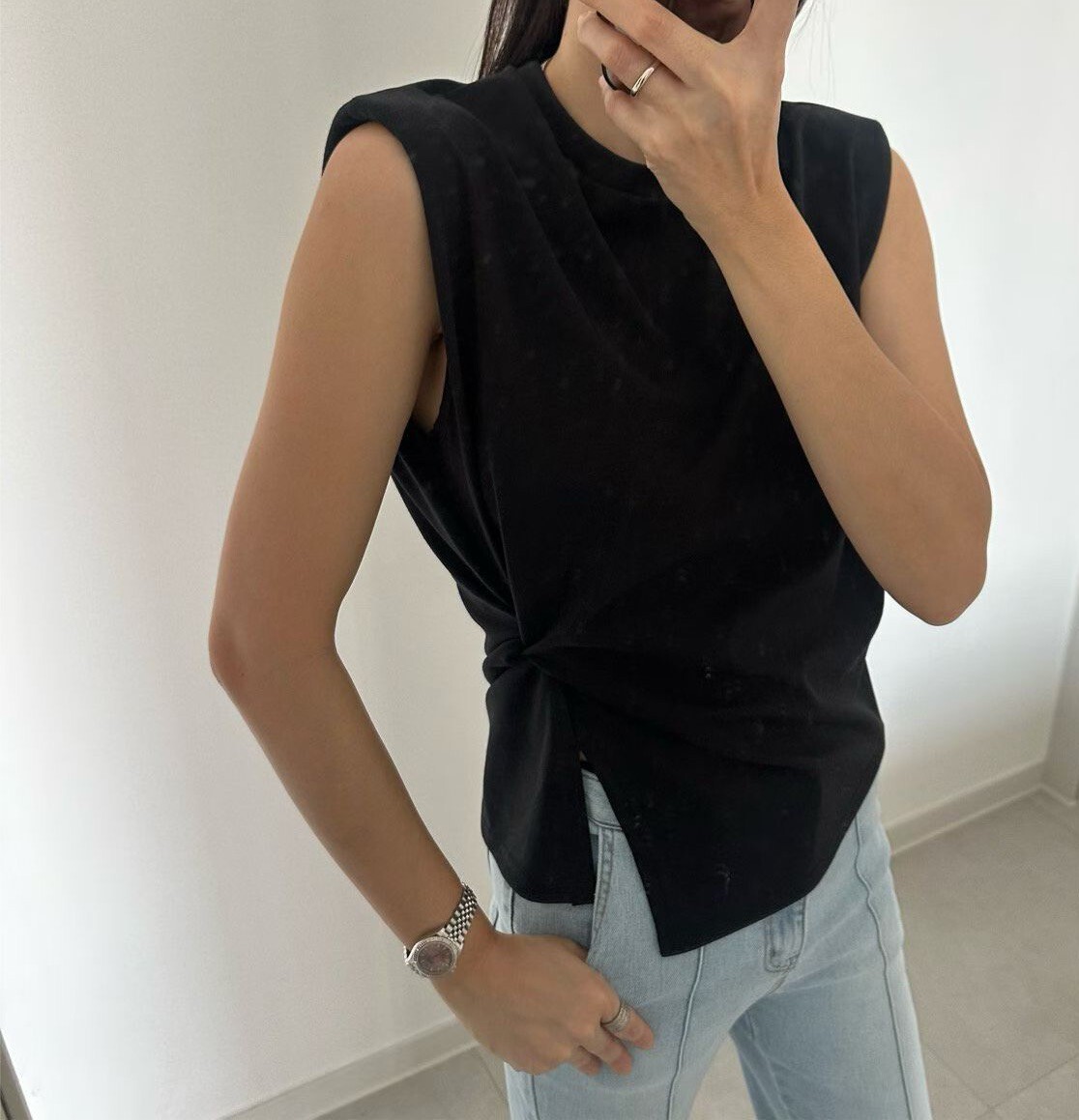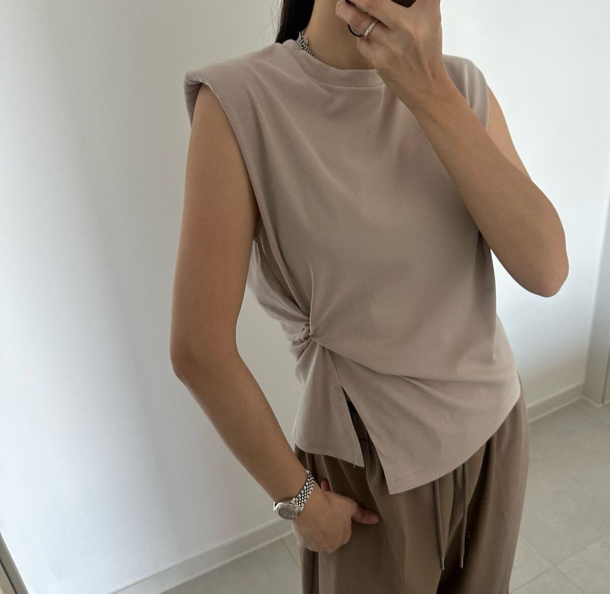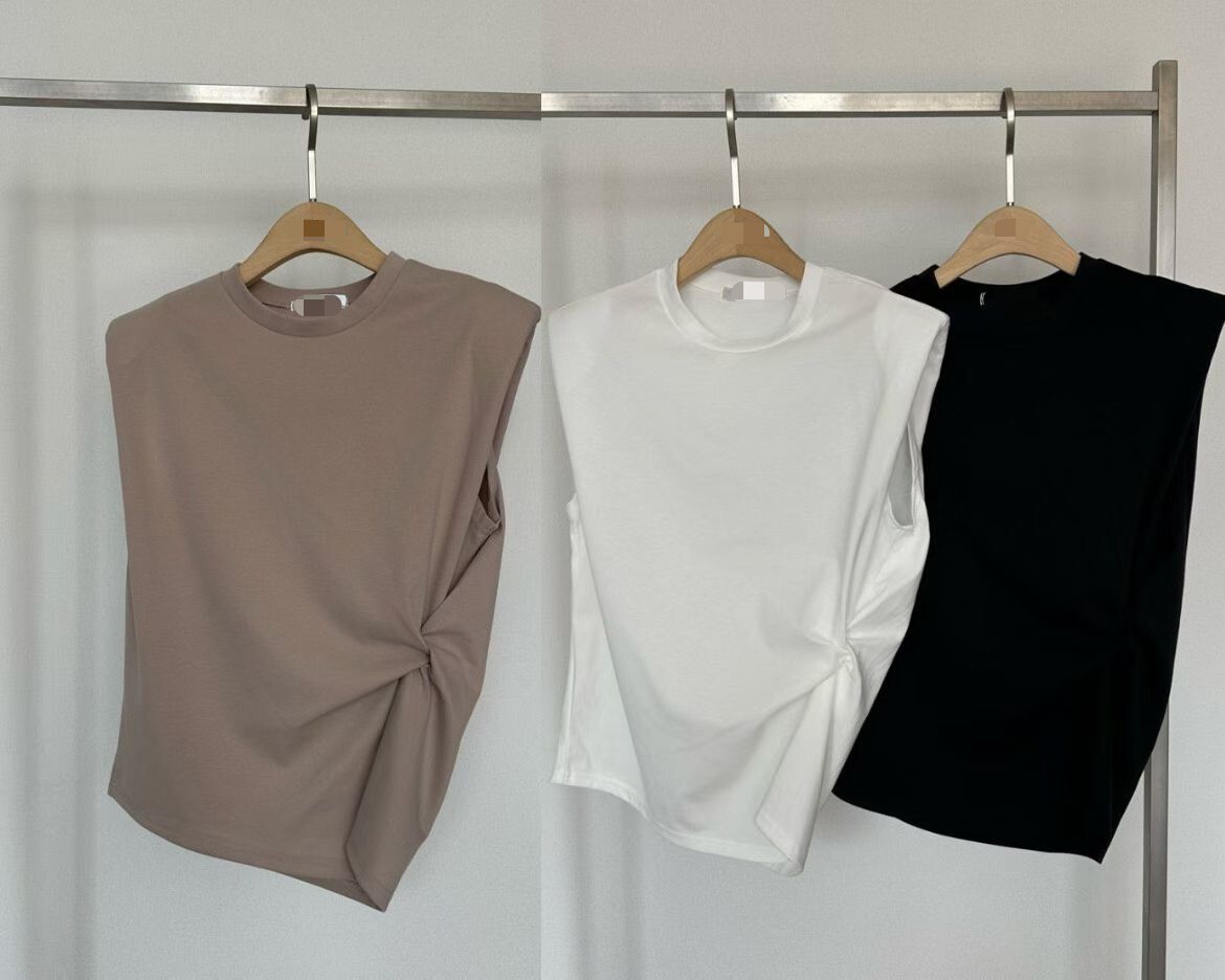 側扭結造型墊肩背心