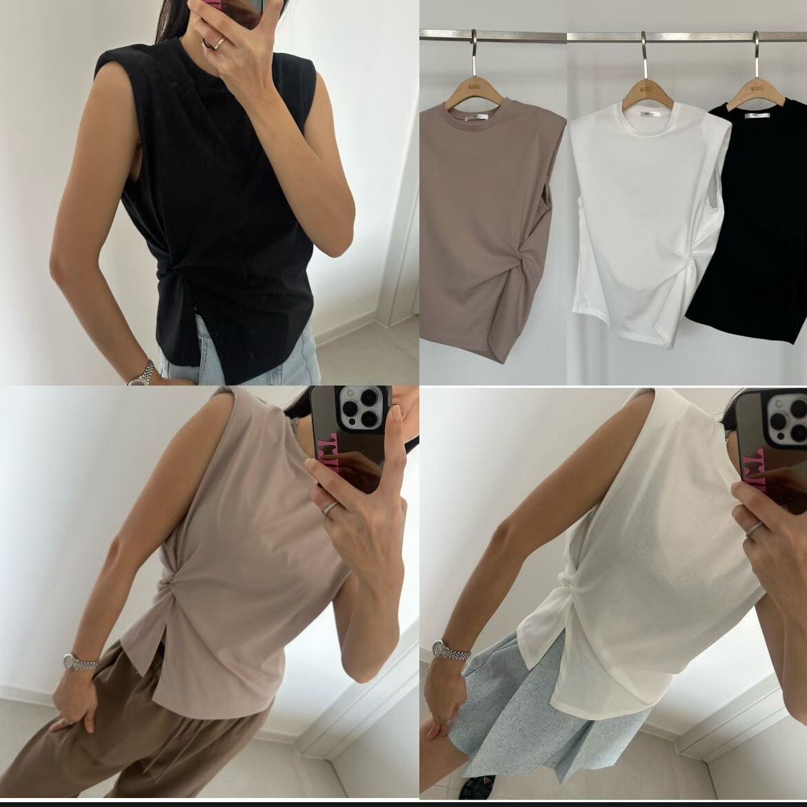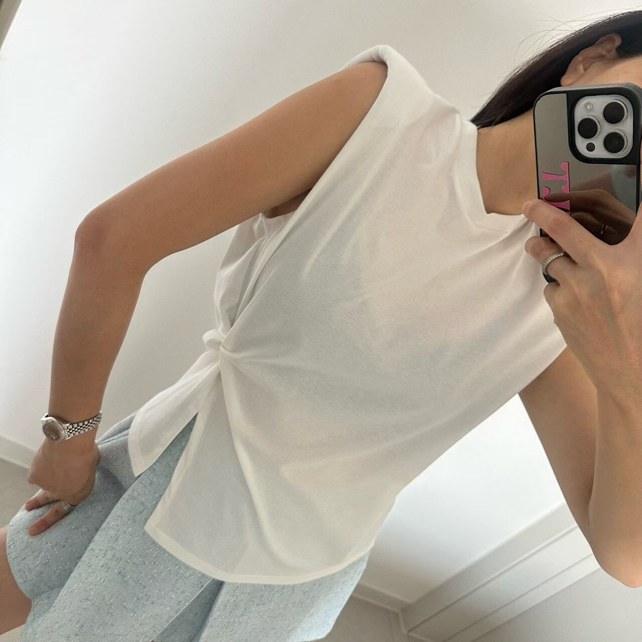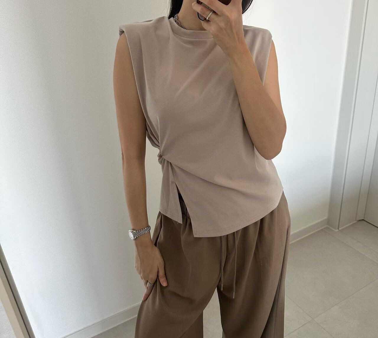 側扭結造型墊肩背心