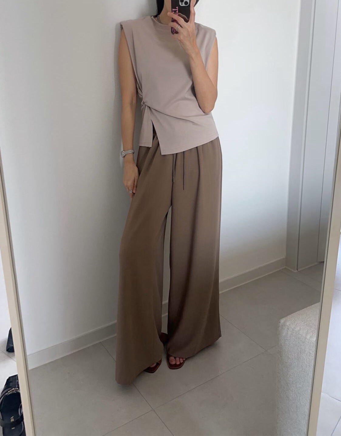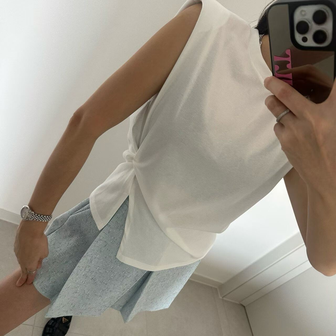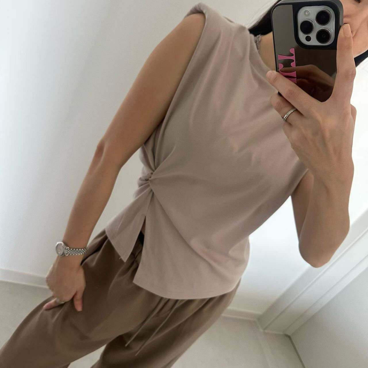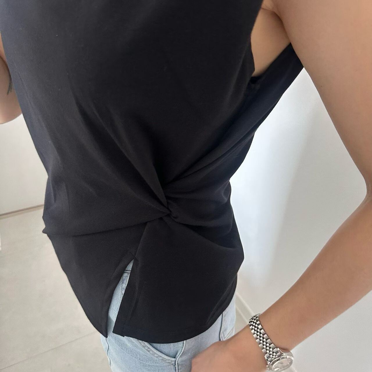 側扭結造型墊肩背心