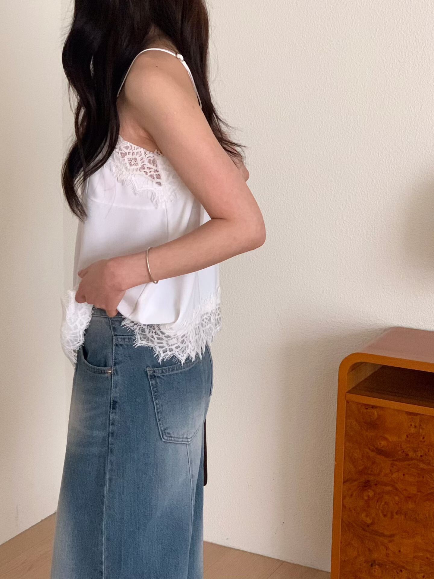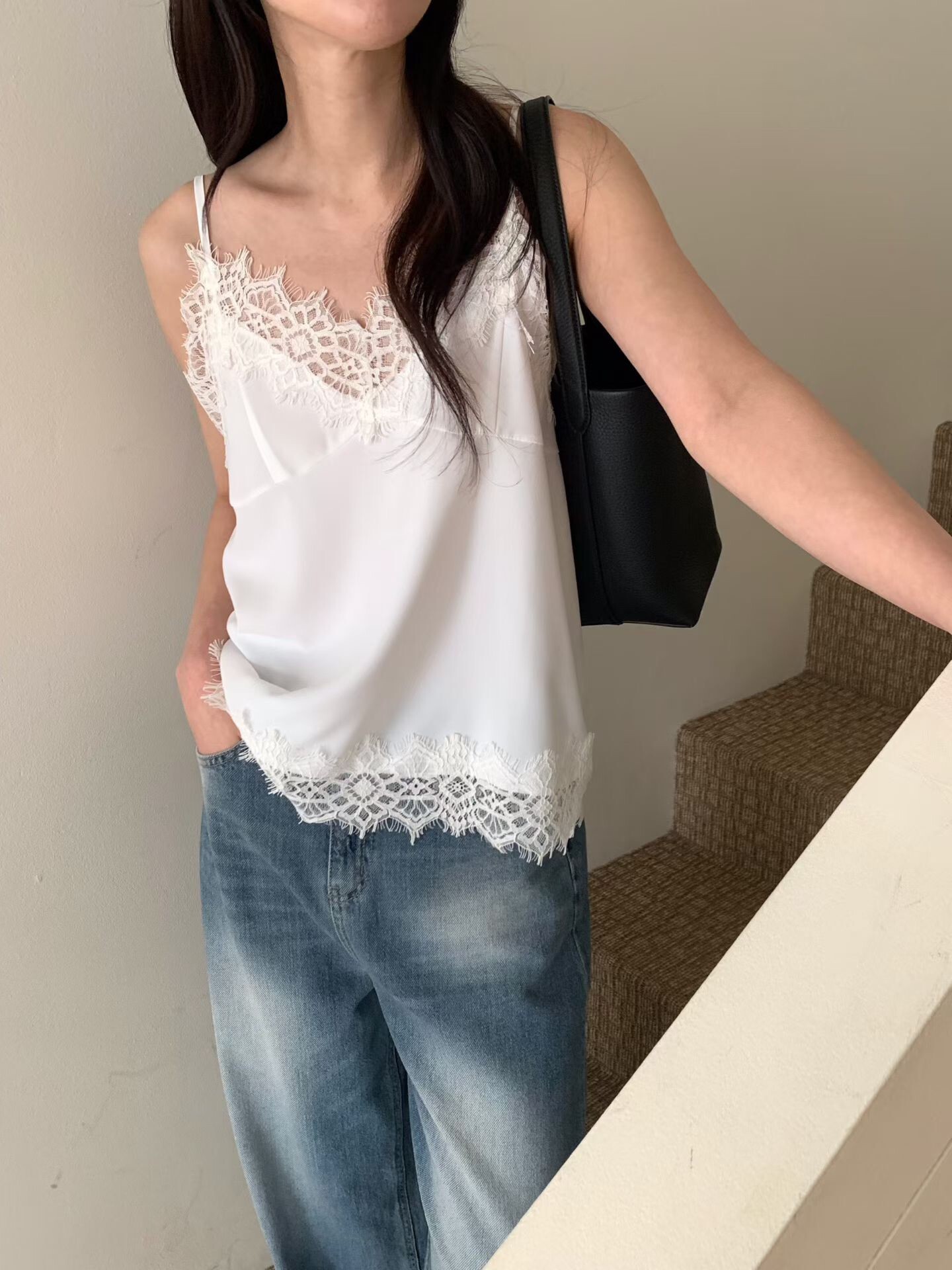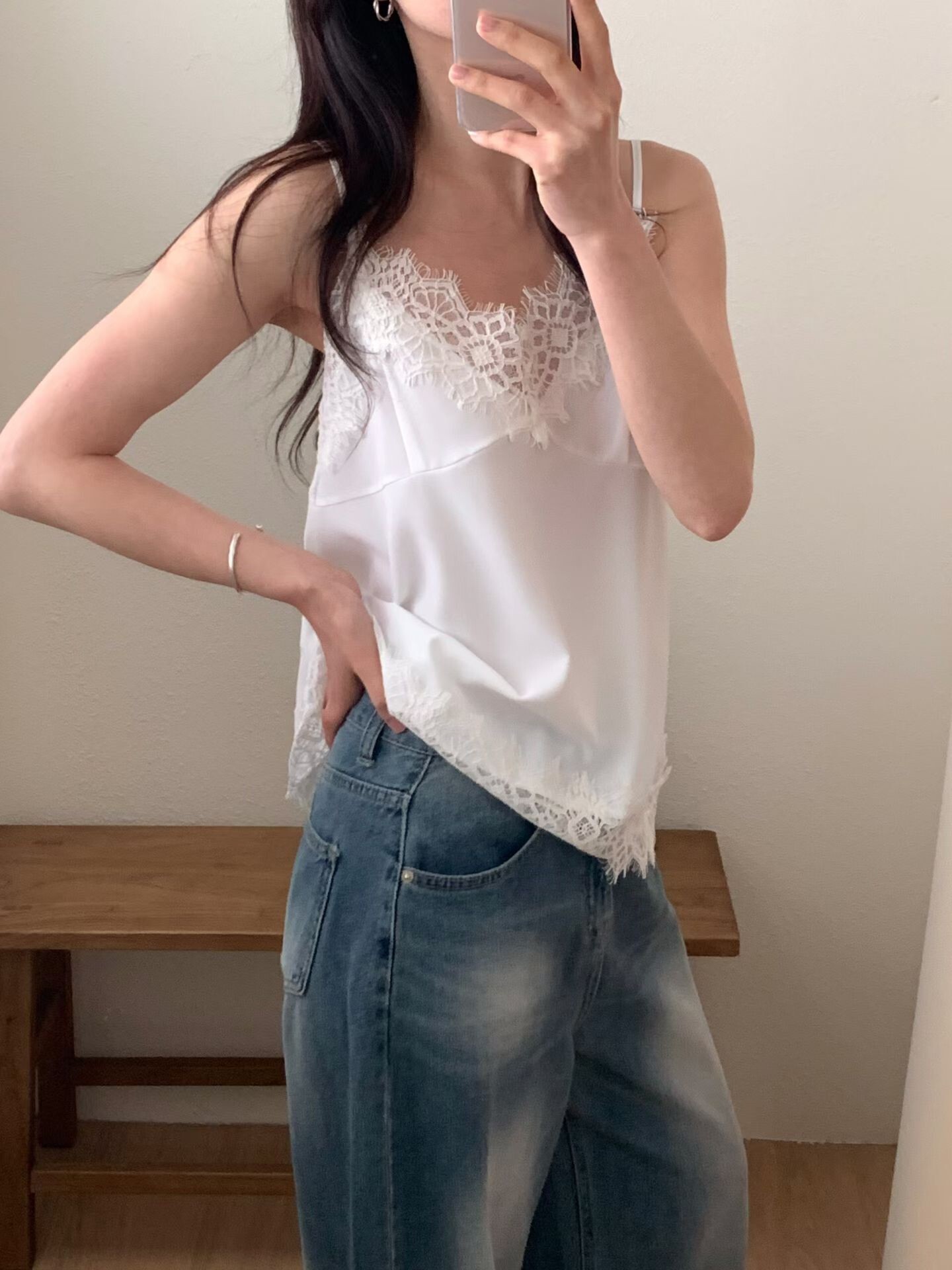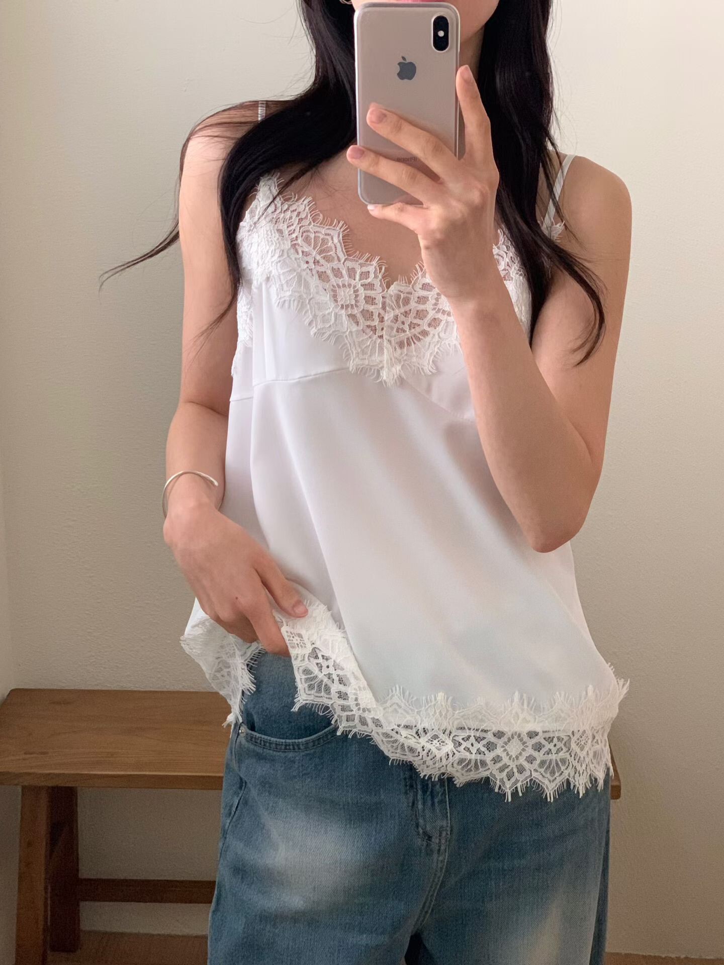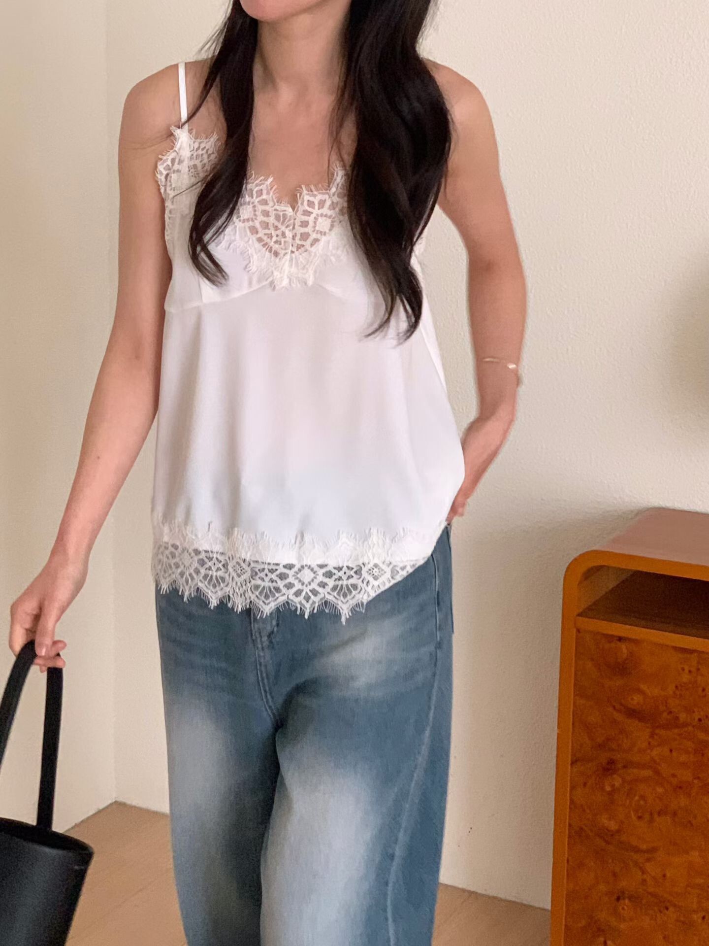 材質:滑料絲質拼接蕾絲