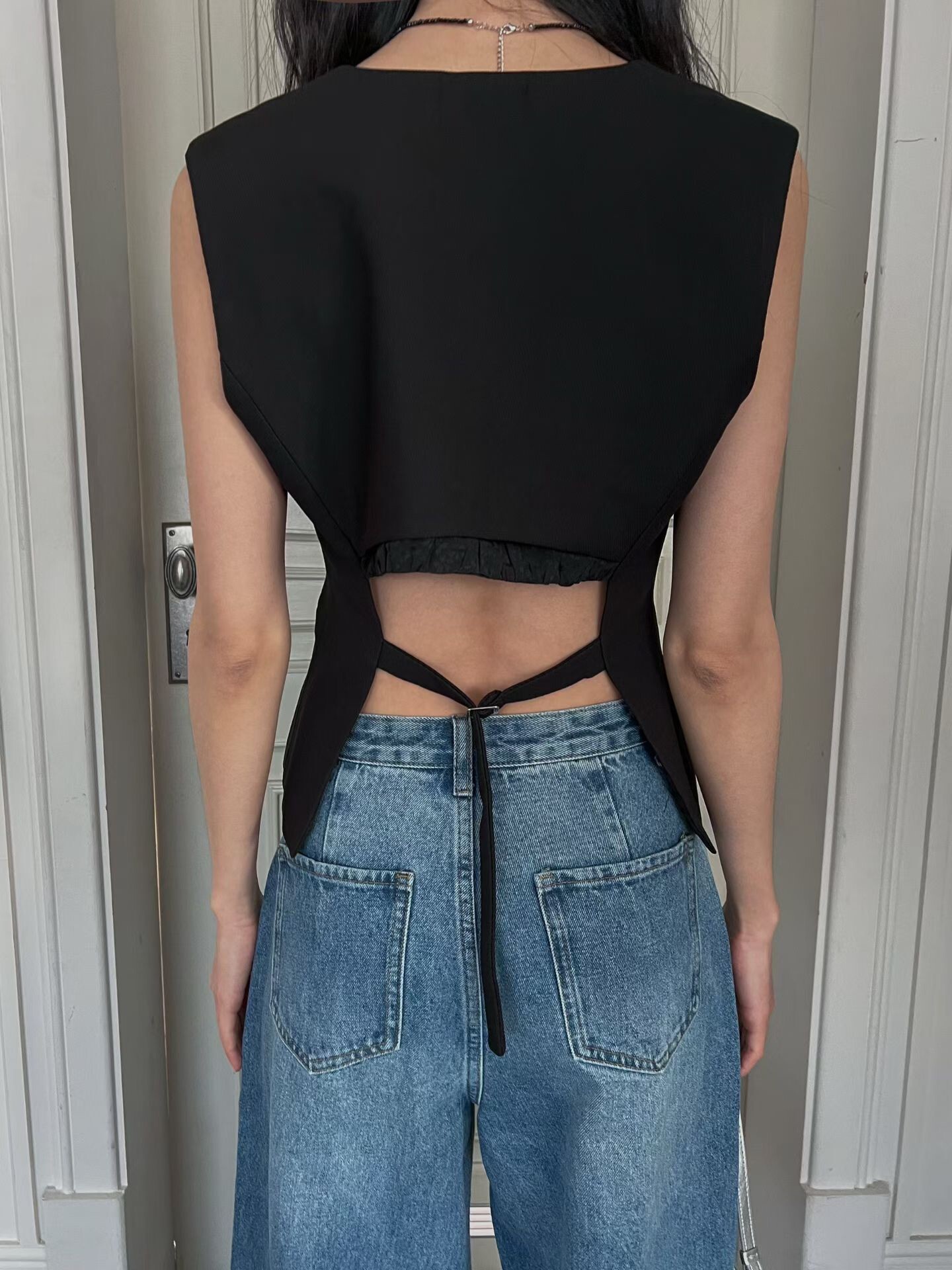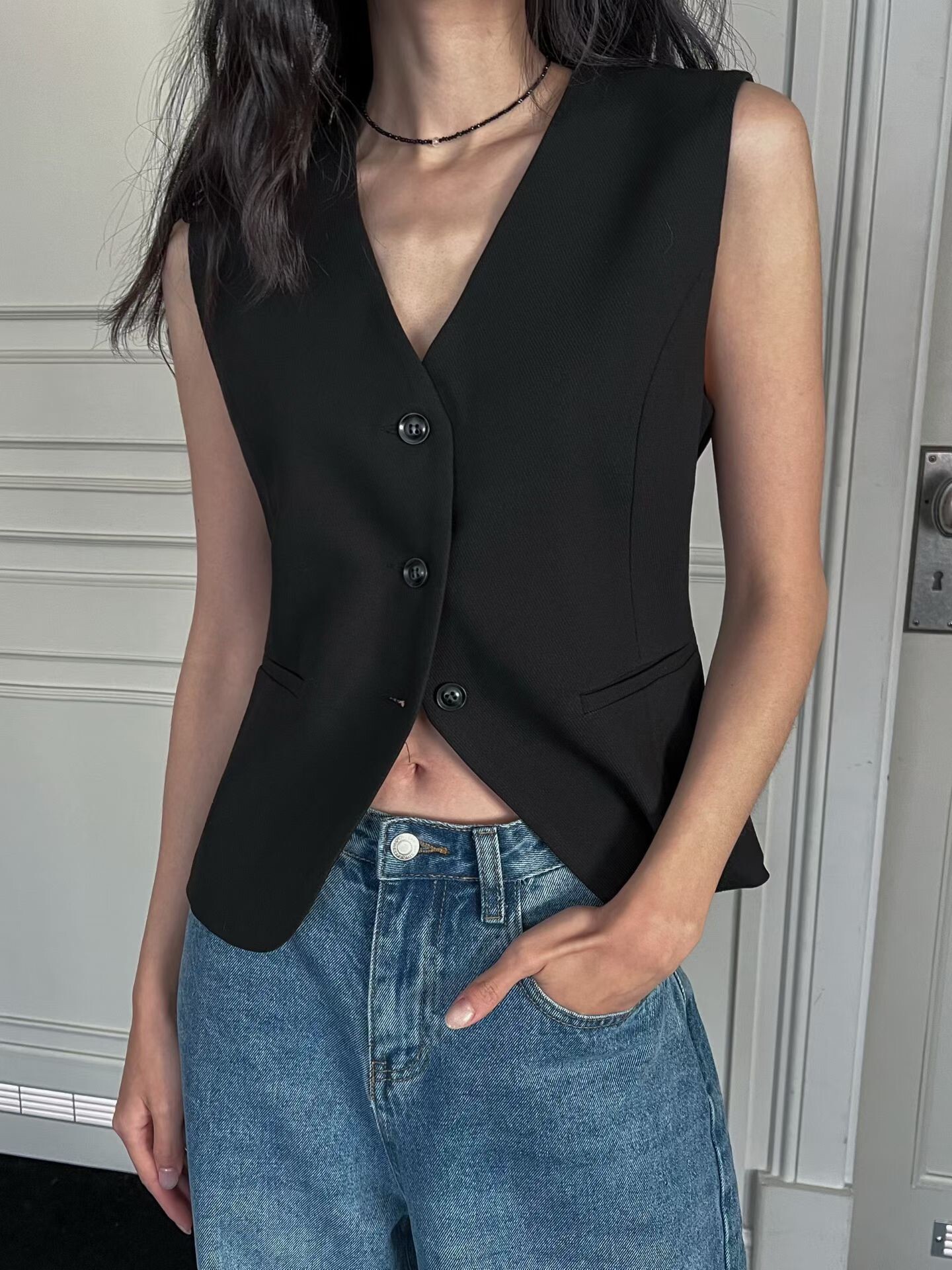 後露腰三釦西裝馬甲